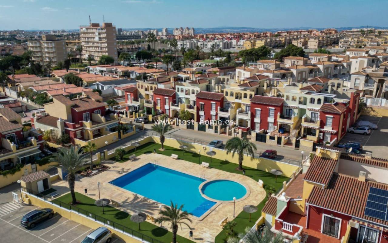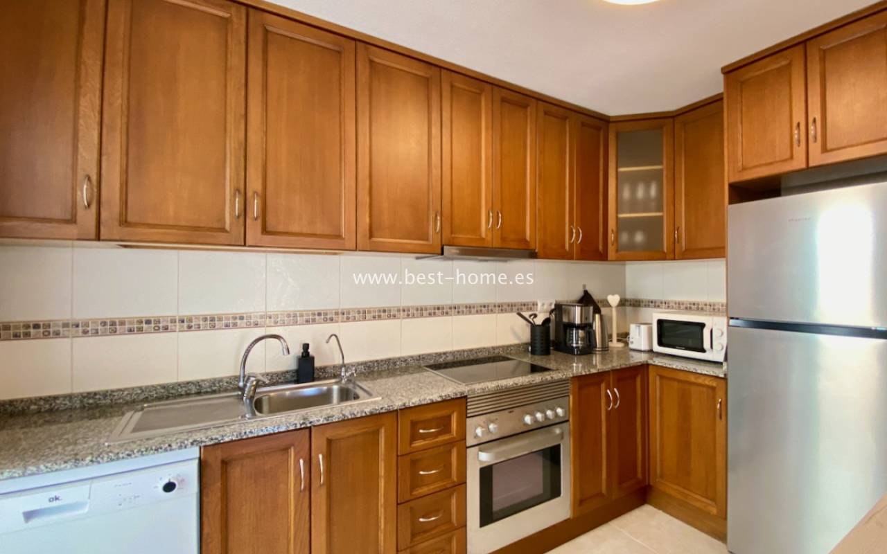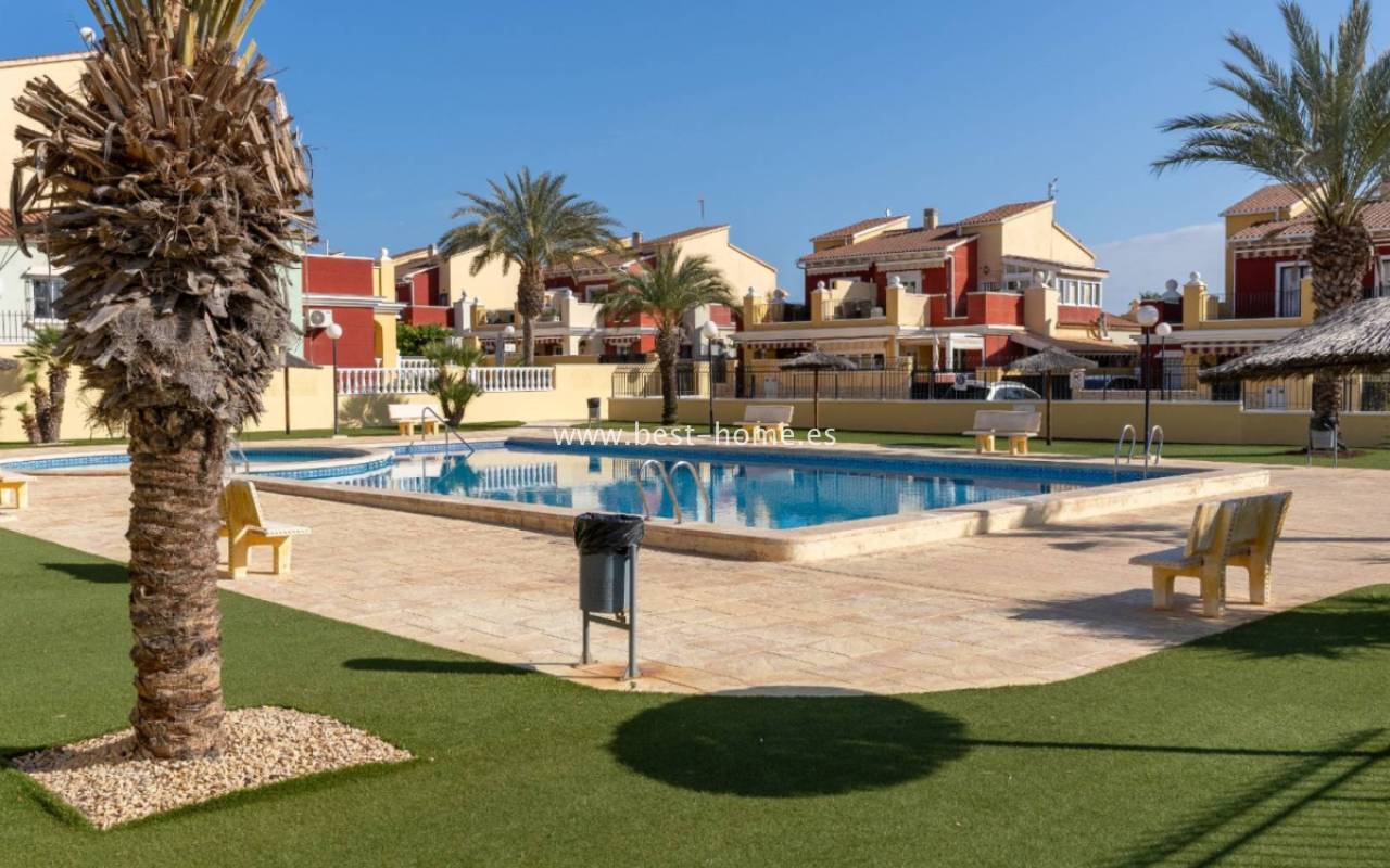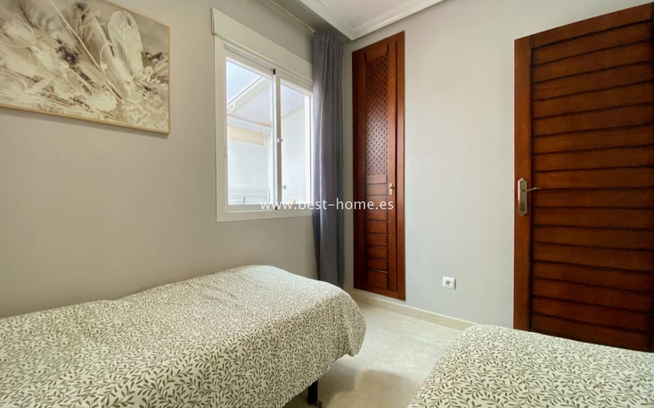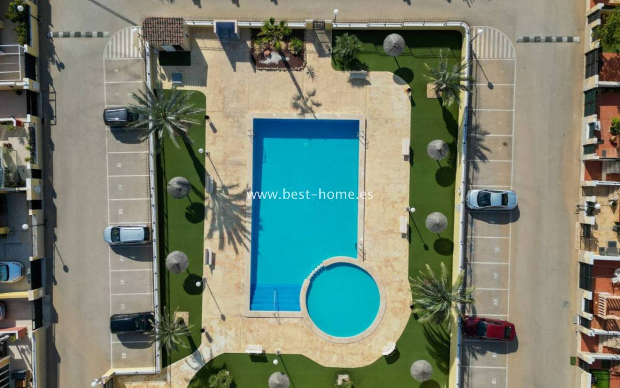 Beautiful ground floor apartment with a picturesque garden, community pool and parking space in the Aguas Nuevas urbanization in Torrevieja. It has a very sunny private garden of 24 m2, through which we get to the bright living room in a Scandinavian arrangement, then we find an American-style kitchen equipped with household appliances, 2 double bedrooms with built-in wardrobes, a bathroom. The apartment is furnished and equipped with air conditioning. In the price of the property we will receive a parking space. Additionally, we will find a large swimming pool, which can be used by residents of the estate.