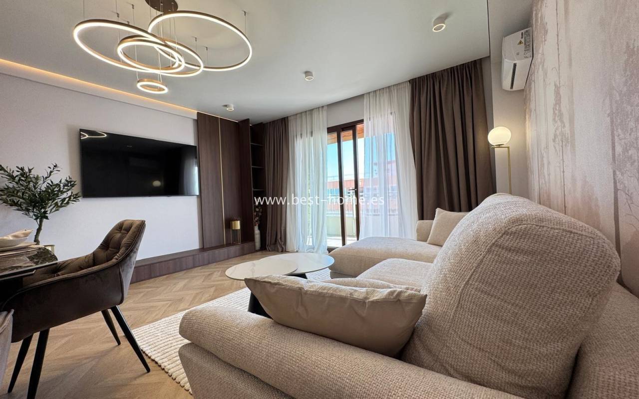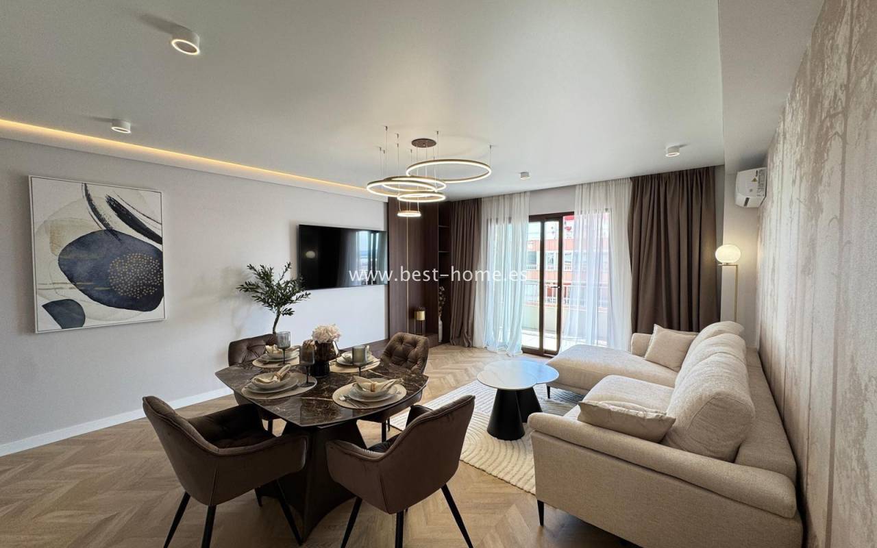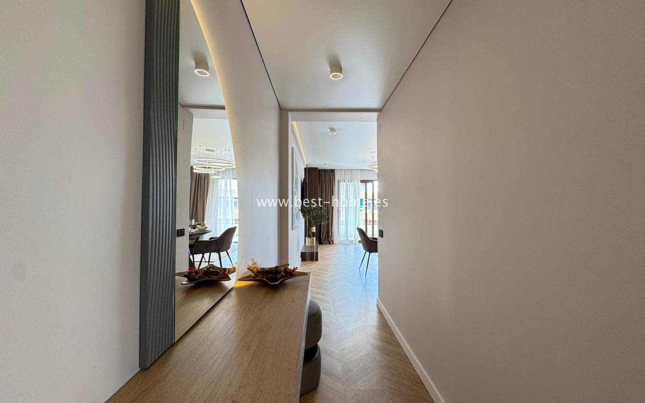 Fantastic apartment on the first line of the coast, right by the beach, with a sea view. It has a nicely arranged living room with access to a huge sunny terrace with a relaxation area and a beautiful sea view, 3 double bedrooms, 2 bathrooms, a renovated open kitchen equipped with good quality household appliances. The apartment has been completely renovated, is equipped with air conditioning and is sold with furniture. There is a swimming pool for residents on the estate. Ideal property for holiday rental or permanent residence. Nearby you will find many restaurants, confectioneries, ice cream parlors and cafes.