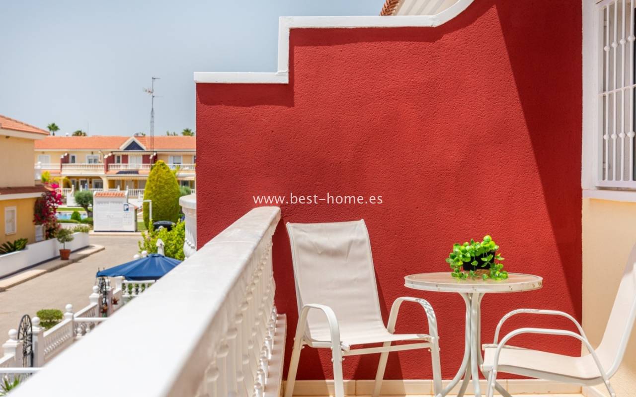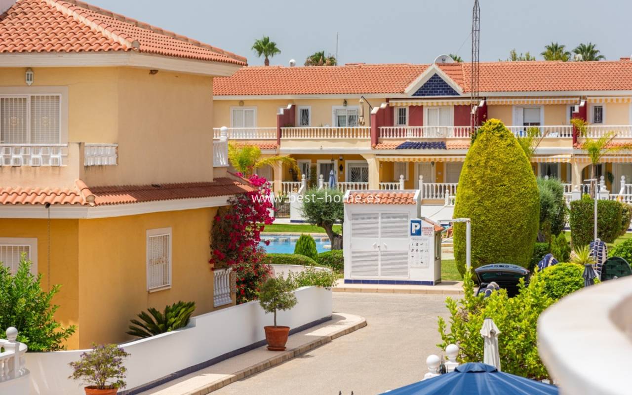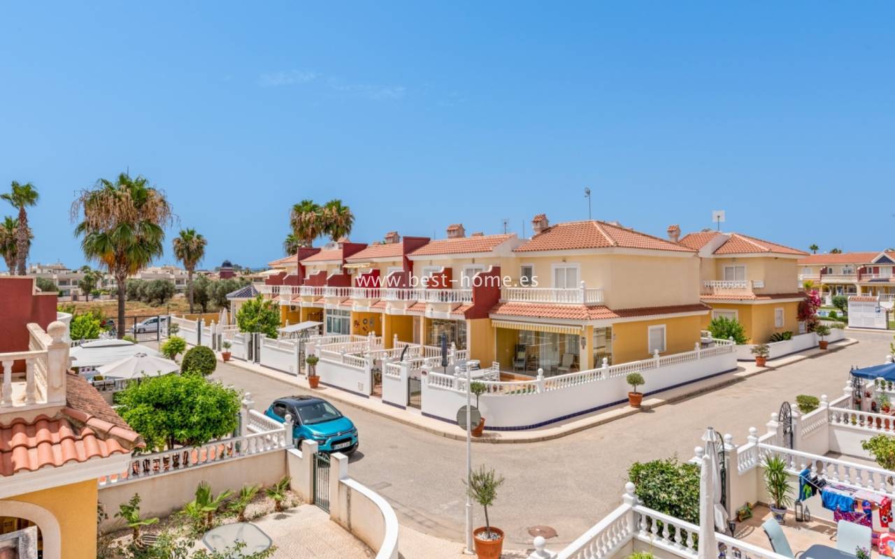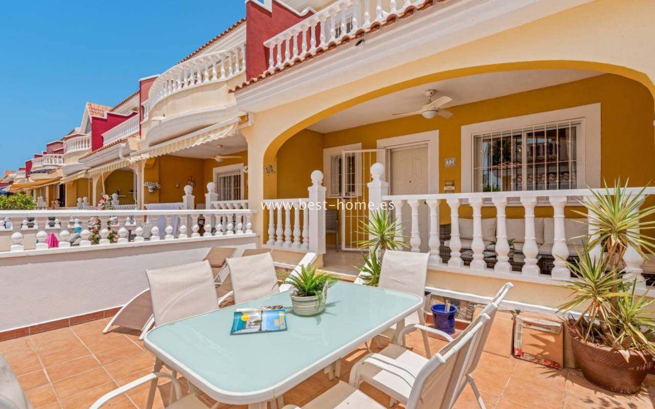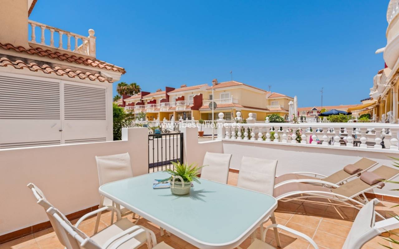 Well-kept terrace is located in a gated, beautiful, estate in a quiet area near the town of Ciudad Quesada. The property on the ground floor has a front, sunny garden, entrance terrace, then we find a spacious living room with dining room, one bedroom, bathroom and kitchen with access to the rear terrace. On the first floor there are two bedrooms with terraces and a bathroom. The price includes furniture, household appliances and new air conditioning. On the estate there is a nice, communal swimming pool. The property has a tourist license. It is only 650 m to supermarkets, bars and restaurants.