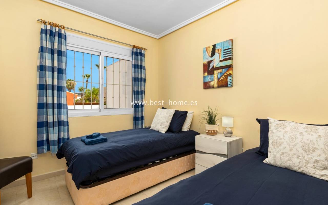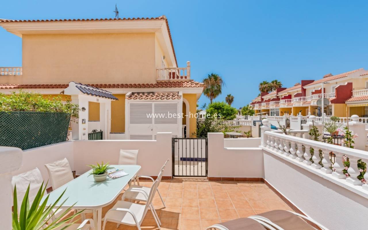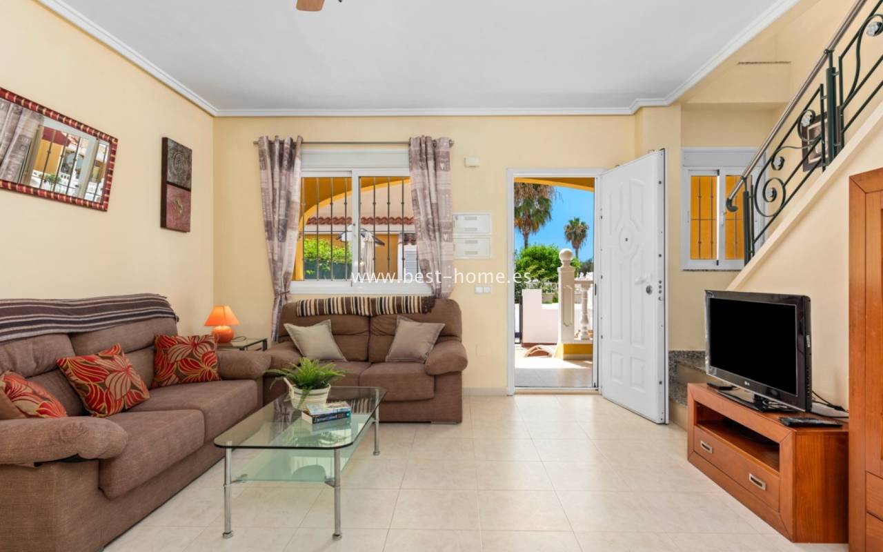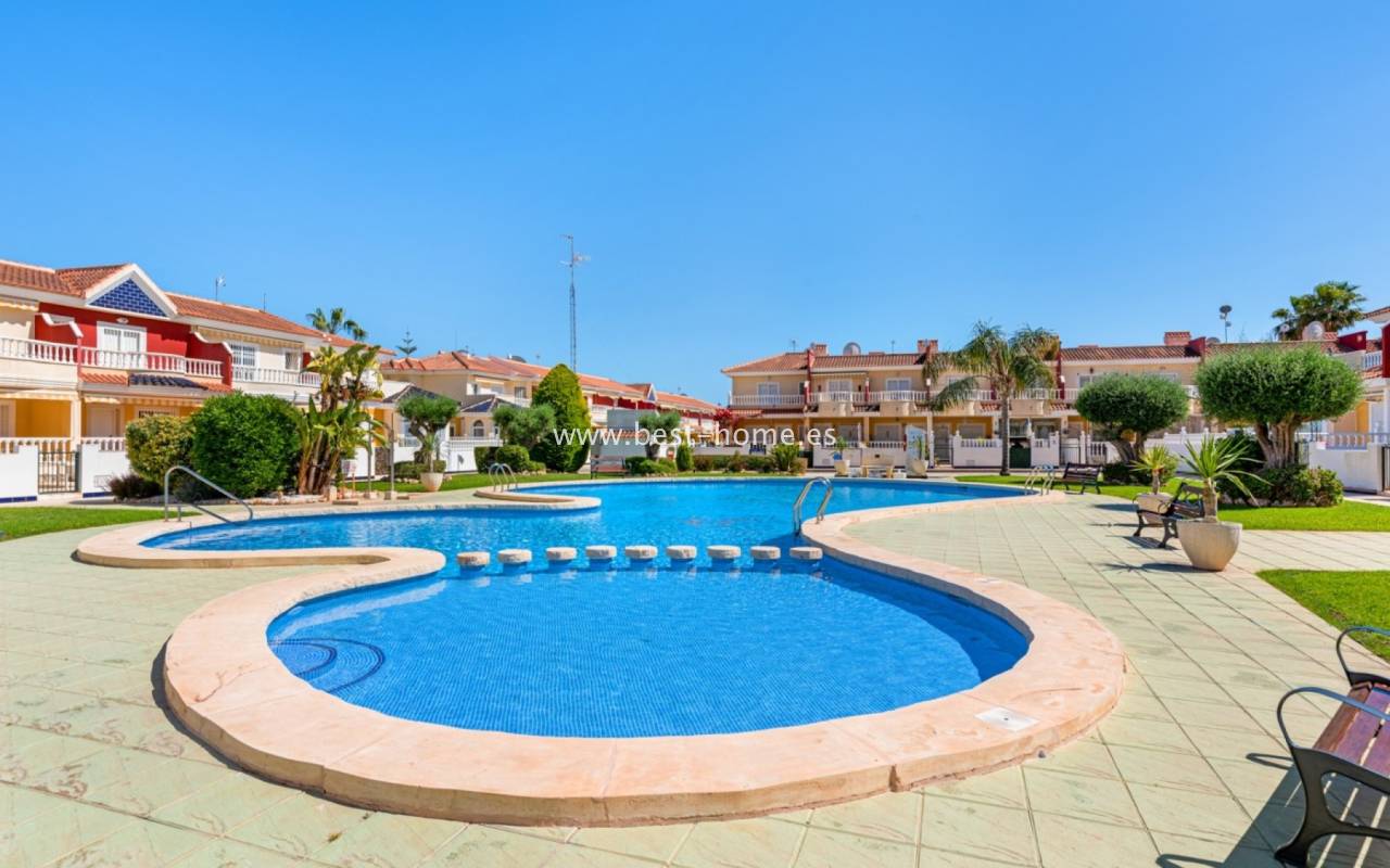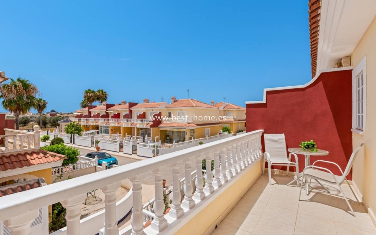 Well-kept terrace is located in a gated, beautiful, estate in a quiet area near the town of Ciudad Quesada. The property on the ground floor has a front, sunny garden, entrance terrace, then we find a spacious living room with dining room, one bedroom, bathroom and kitchen with access to the rear terrace. On the first floor there are two bedrooms with terraces and a bathroom. The price includes furniture, household appliances and new air conditioning. On the estate there is a nice, communal swimming pool. The property has a tourist license. It is only 650 m to supermarkets, bars and restaurants.