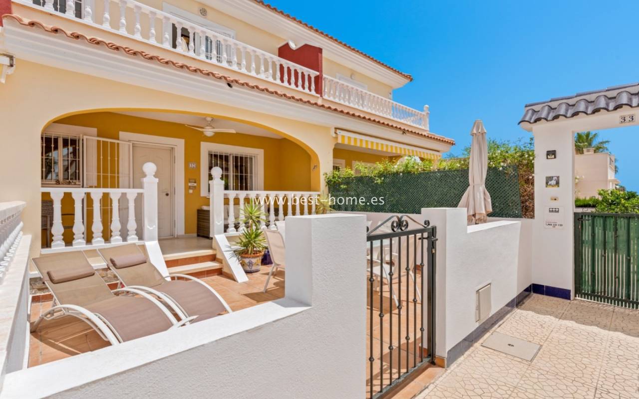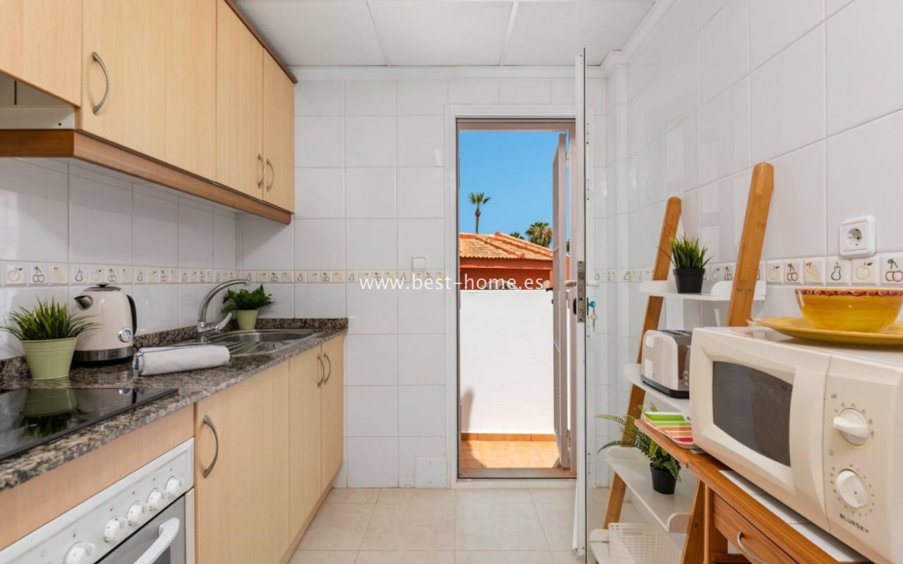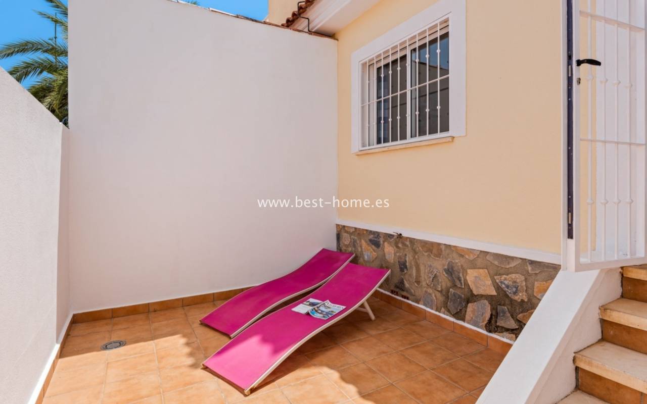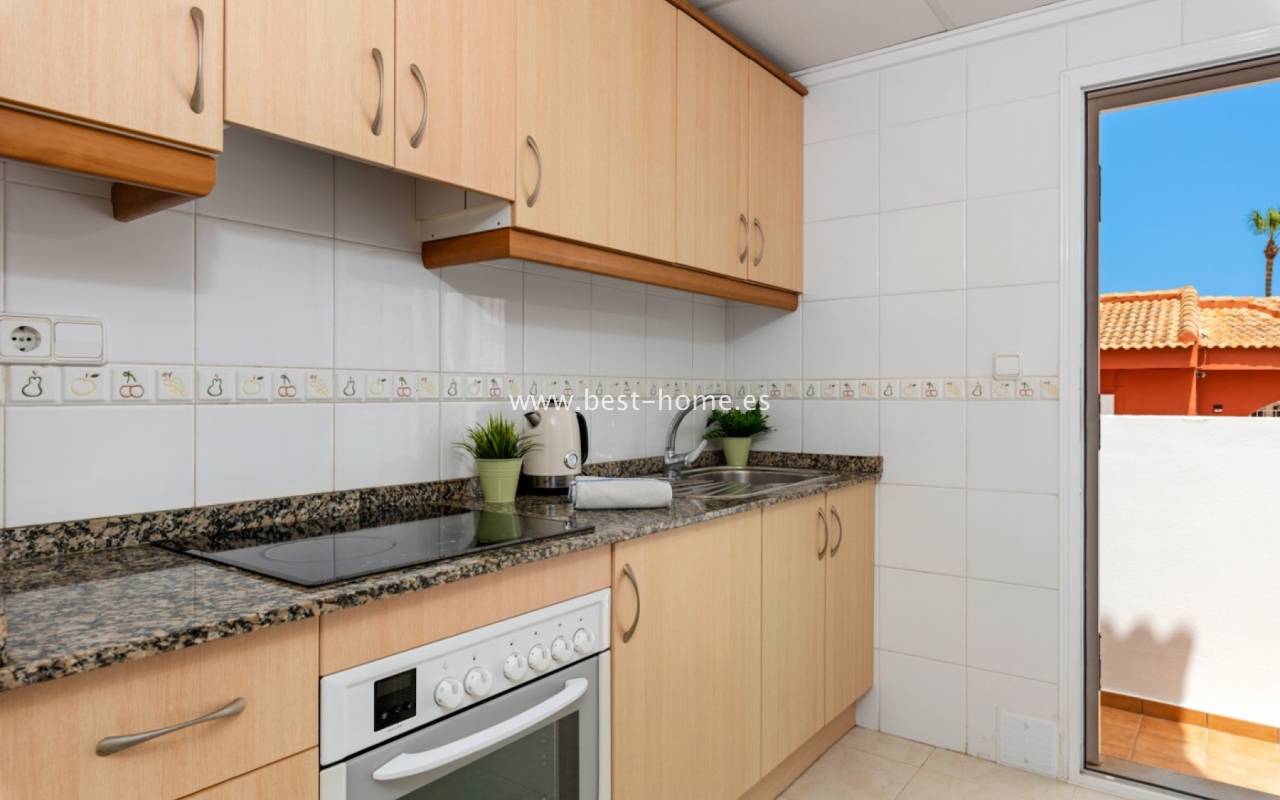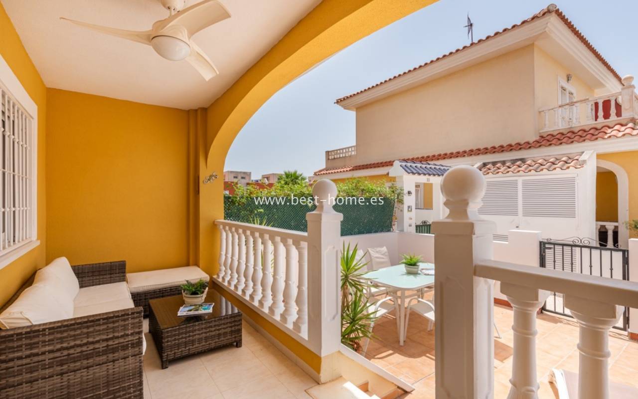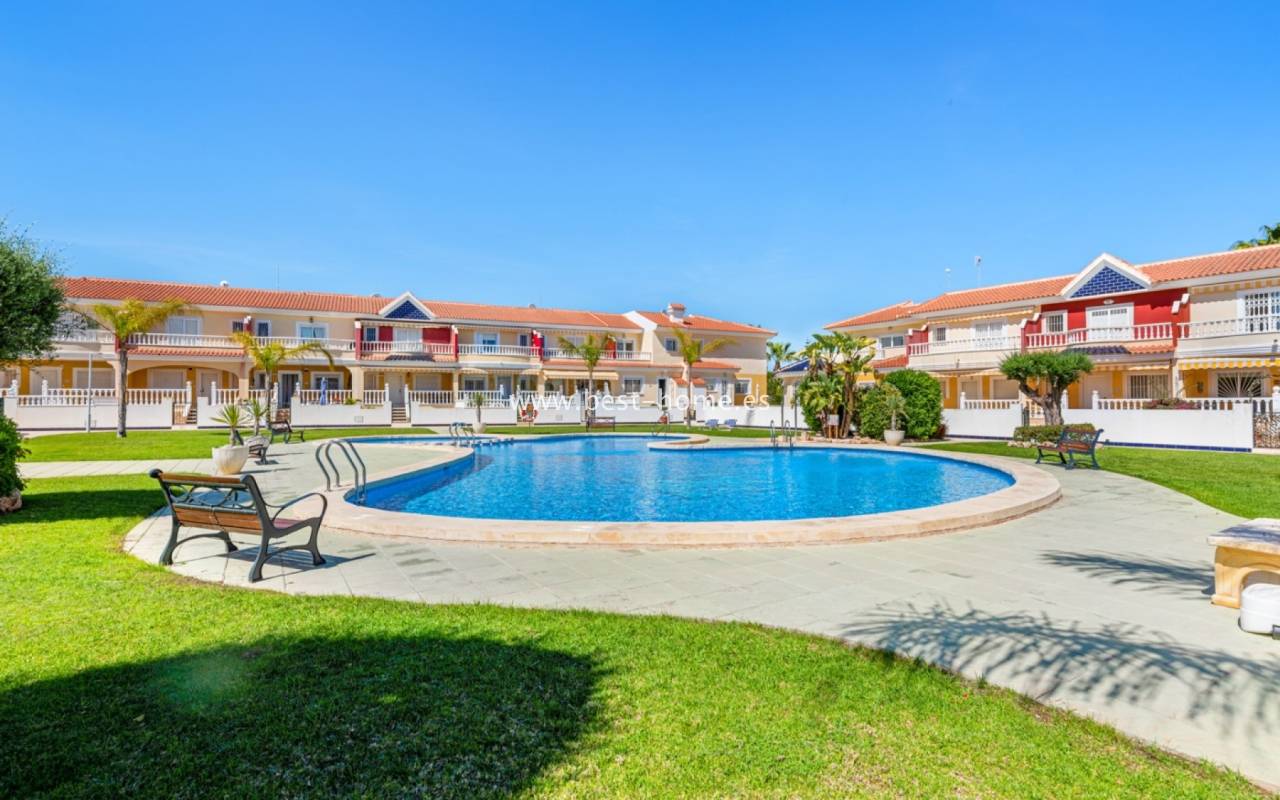 Well-kept terrace is located in a gated, beautiful, estate in a quiet area near the town of Ciudad Quesada. The property on the ground floor has a front, sunny garden, entrance terrace, then we find a spacious living room with dining room, one bedroom, bathroom and kitchen with access to the rear terrace. On the first floor there are two bedrooms with terraces and a bathroom. The price includes furniture, household appliances and new air conditioning. On the estate there is a nice, communal swimming pool. The property has a tourist license. It is only 650 m to supermarkets, bars and restaurants.