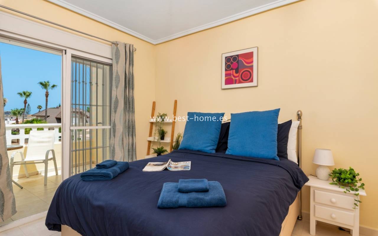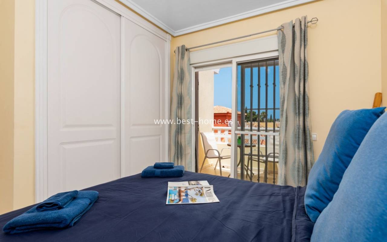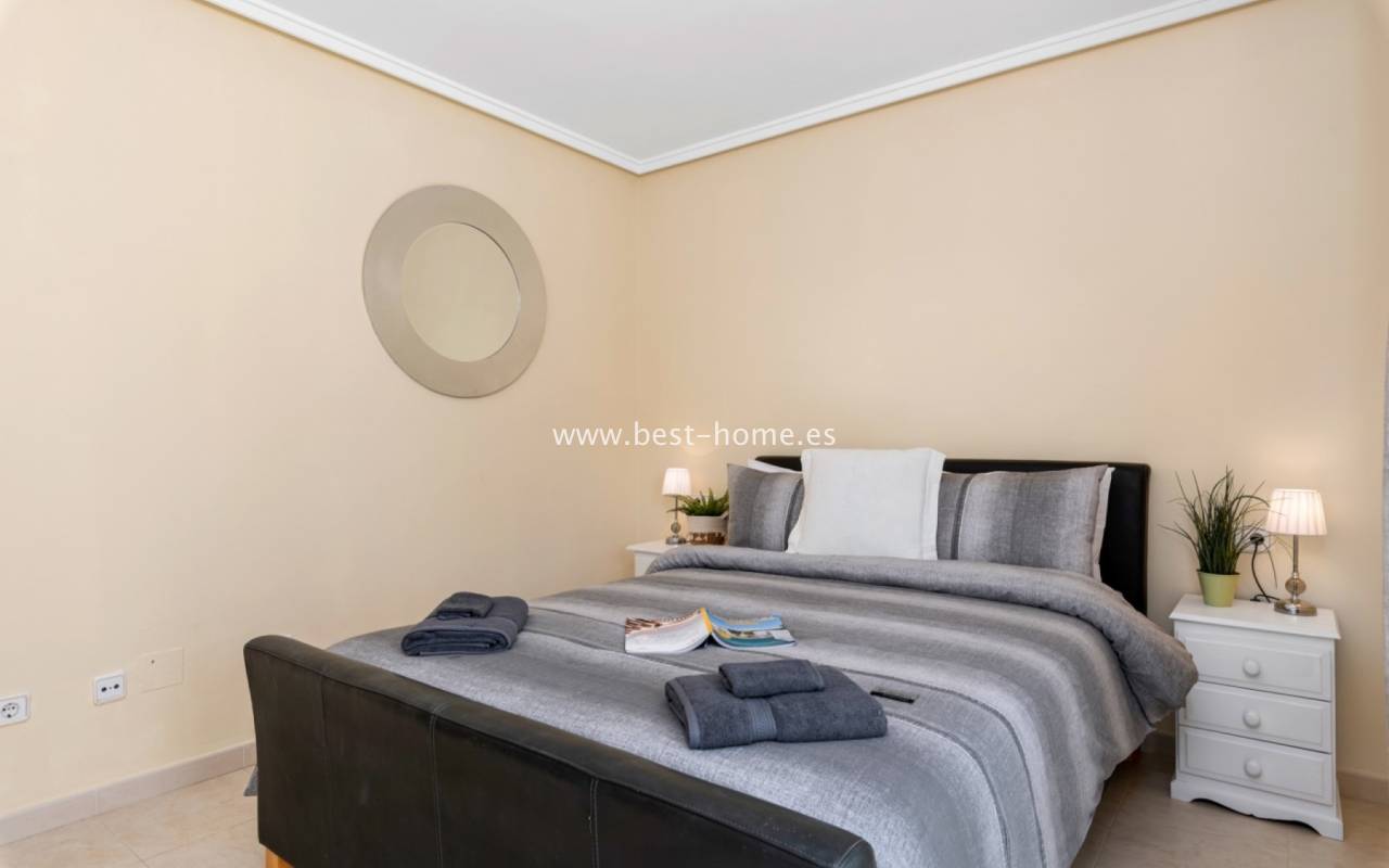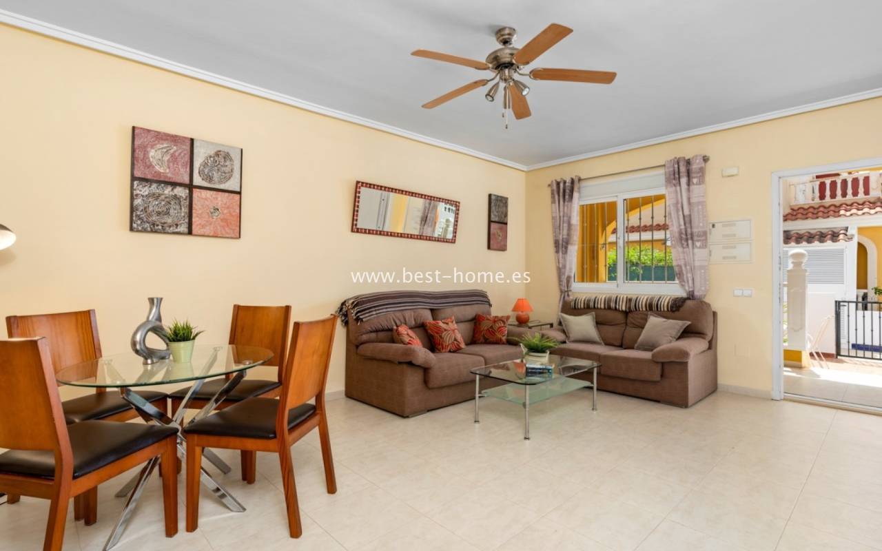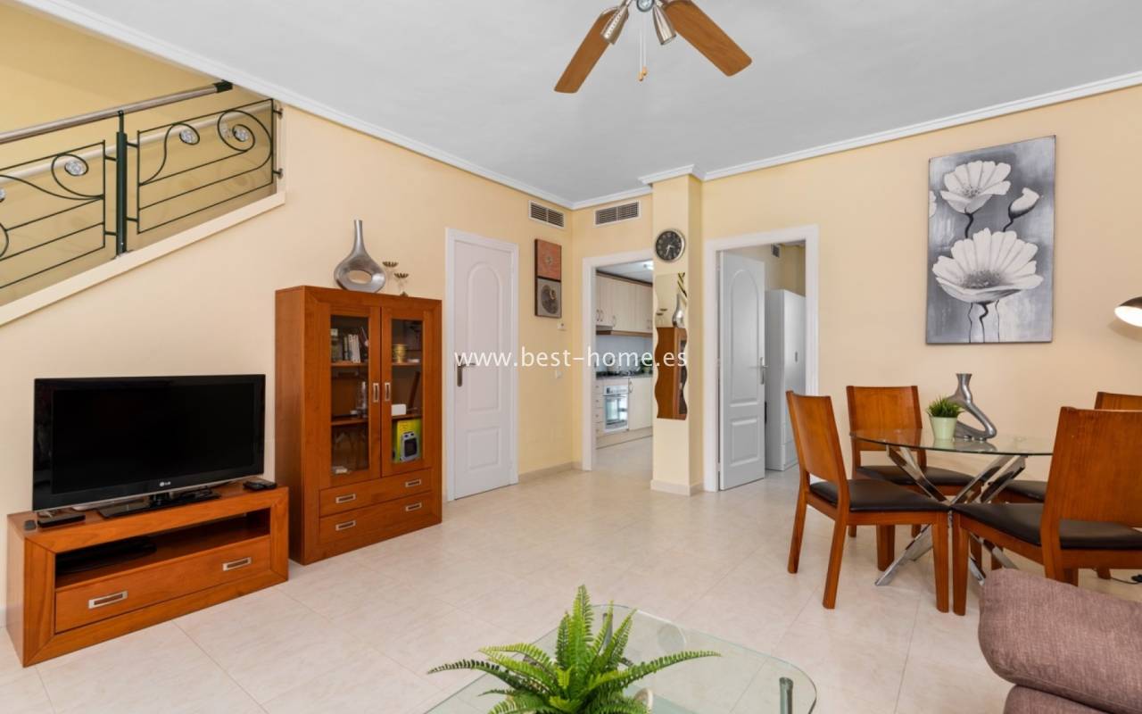 Well-kept terrace is located in a gated, beautiful, estate in a quiet area near the town of Ciudad Quesada. The property on the ground floor has a front, sunny garden, entrance terrace, then we find a spacious living room with dining room, one bedroom, bathroom and kitchen with access to the rear terrace. On the first floor there are two bedrooms with terraces and a bathroom. The price includes furniture, household appliances and new air conditioning. On the estate there is a nice, communal swimming pool. The property has a tourist license. It is only 650 m to supermarkets, bars and restaurants.
