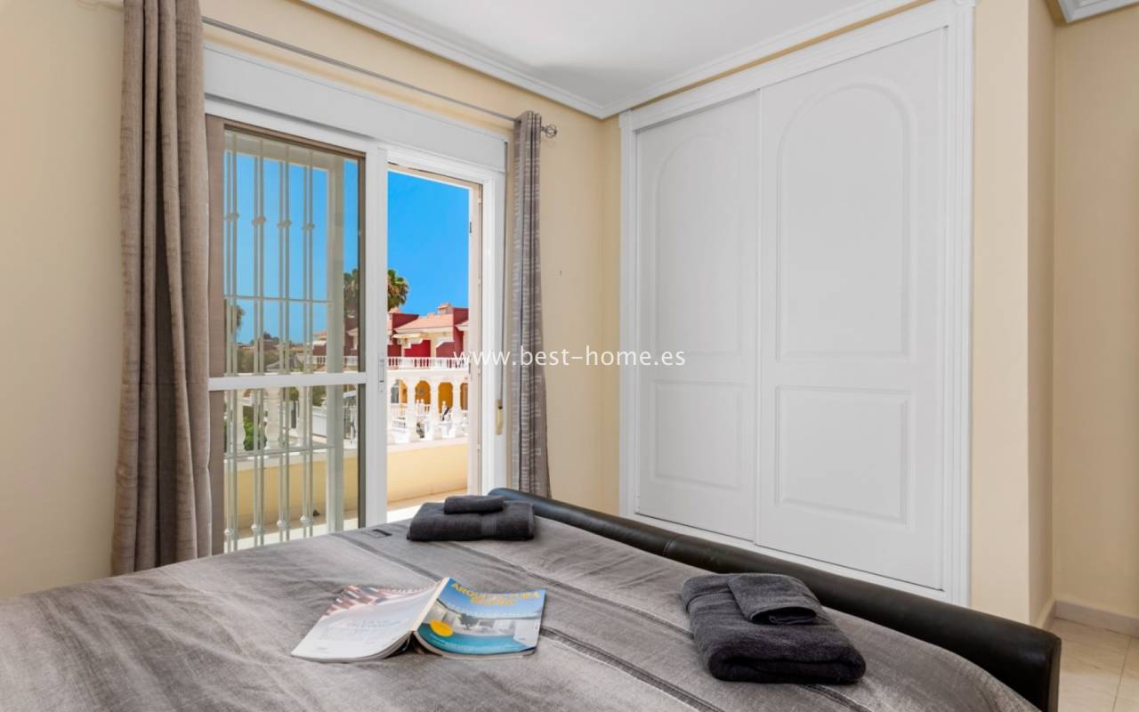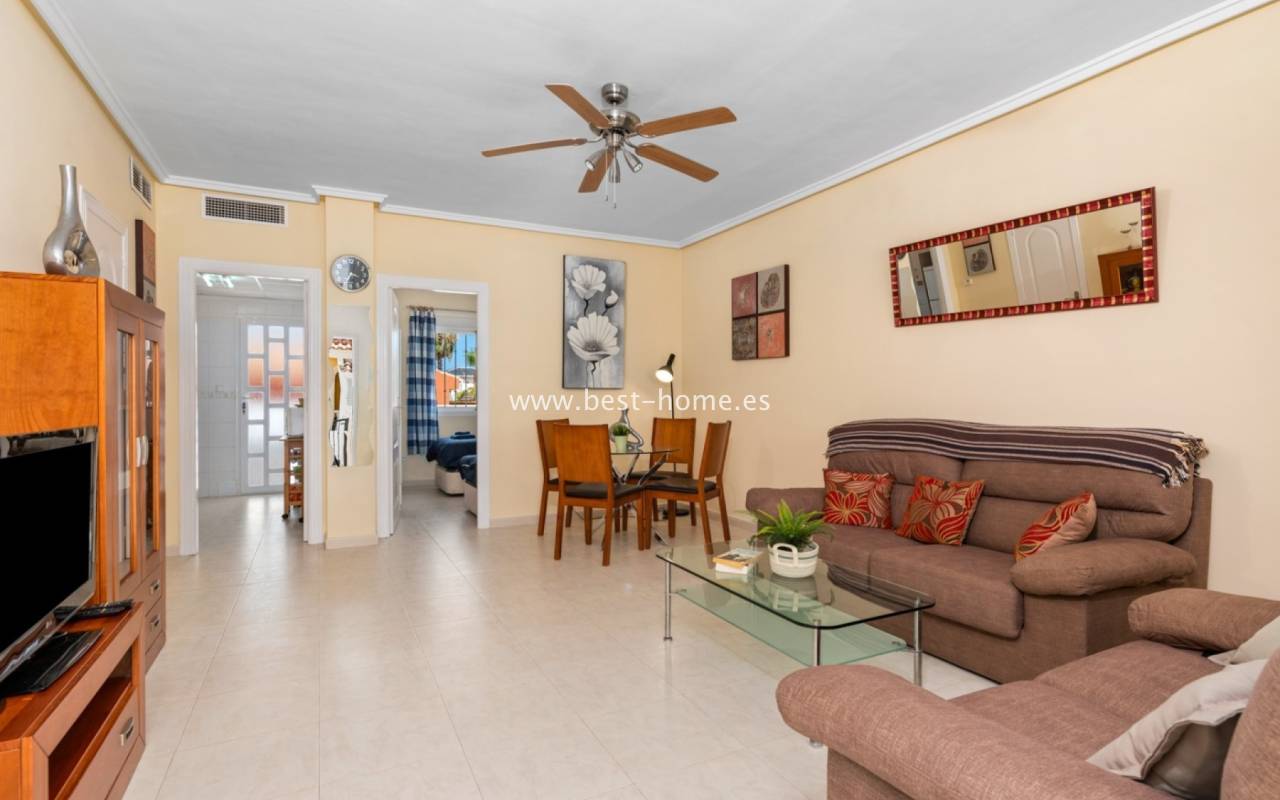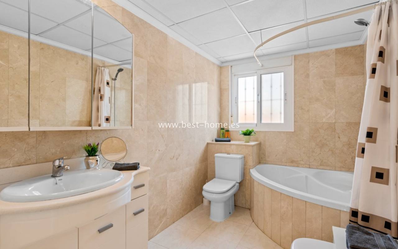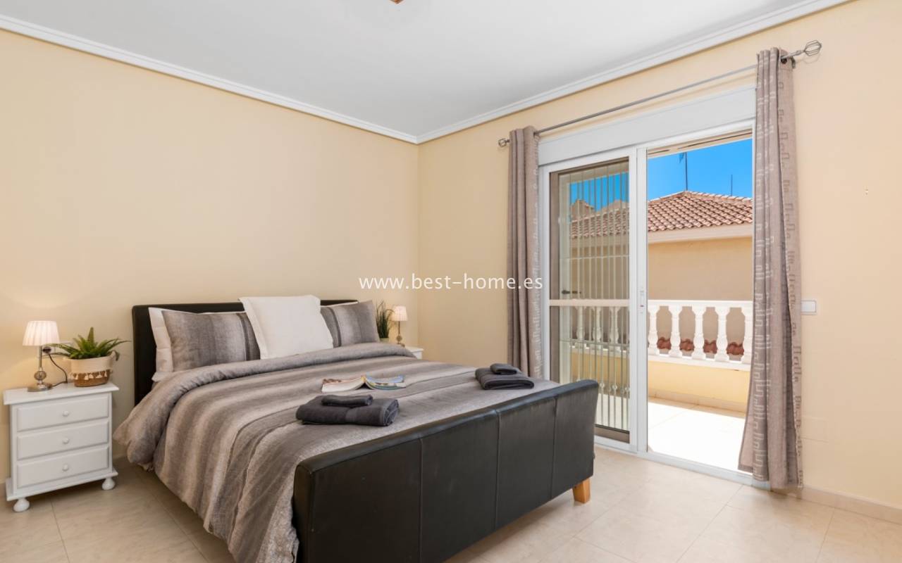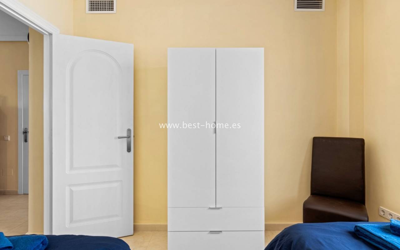 Well-kept terrace is located in a gated, beautiful, estate in a quiet area near the town of Ciudad Quesada. The property on the ground floor has a front, sunny garden, entrance terrace, then we find a spacious living room with dining room, one bedroom, bathroom and kitchen with access to the rear terrace. On the first floor there are two bedrooms with terraces and a bathroom. The price includes furniture, household appliances and new air conditioning. On the estate there is a nice, communal swimming pool. The property has a tourist license. It is only 650 m to supermarkets, bars and restaurants.