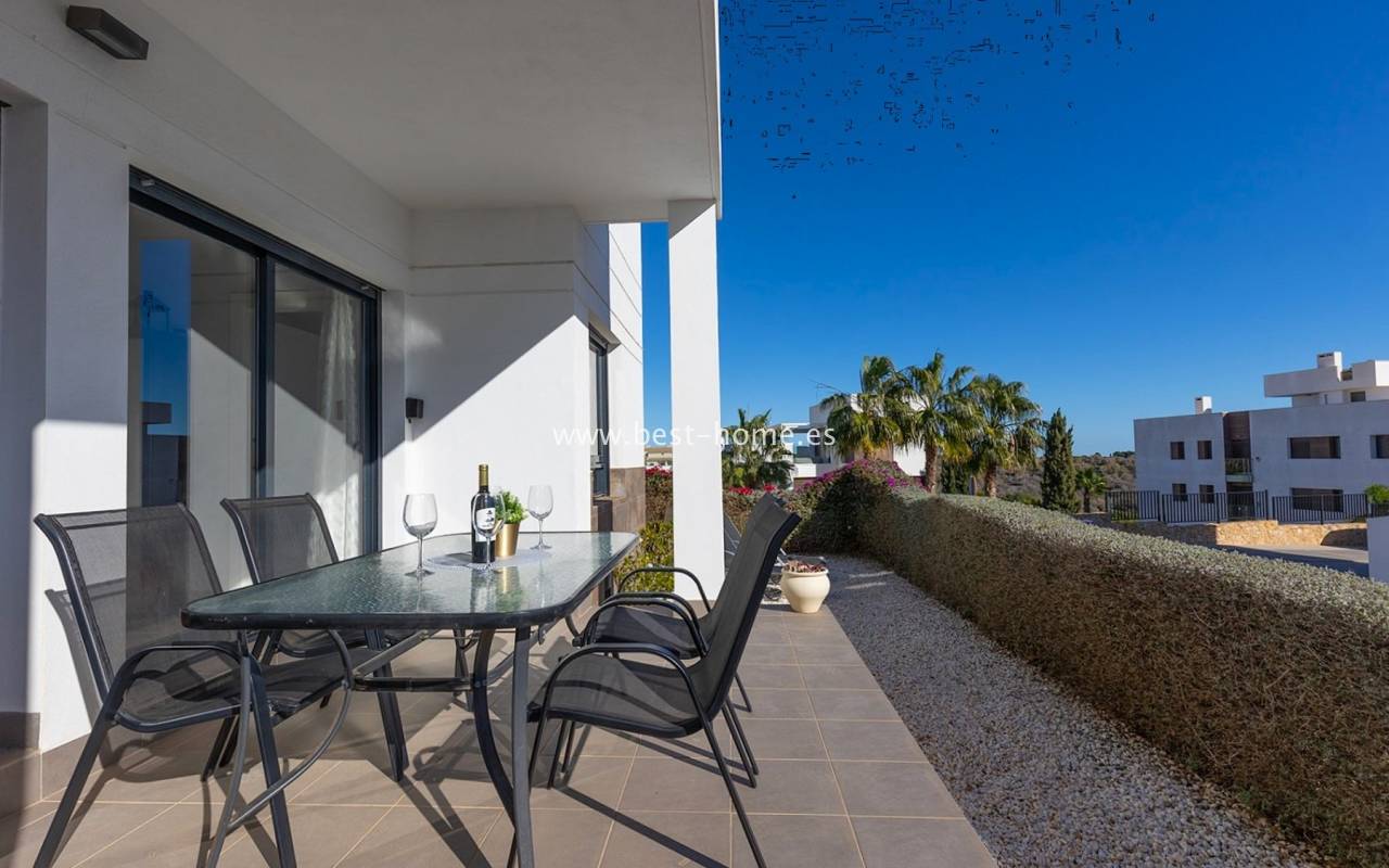 The apartment is located on the golf course in Las Ramblas. The property consists of two bedrooms, two bathrooms, a furnished kitchen and a sunny living room with access to the terrace and garden. The price includes furniture, household appliances, air conditioning, parking space and a storage room.