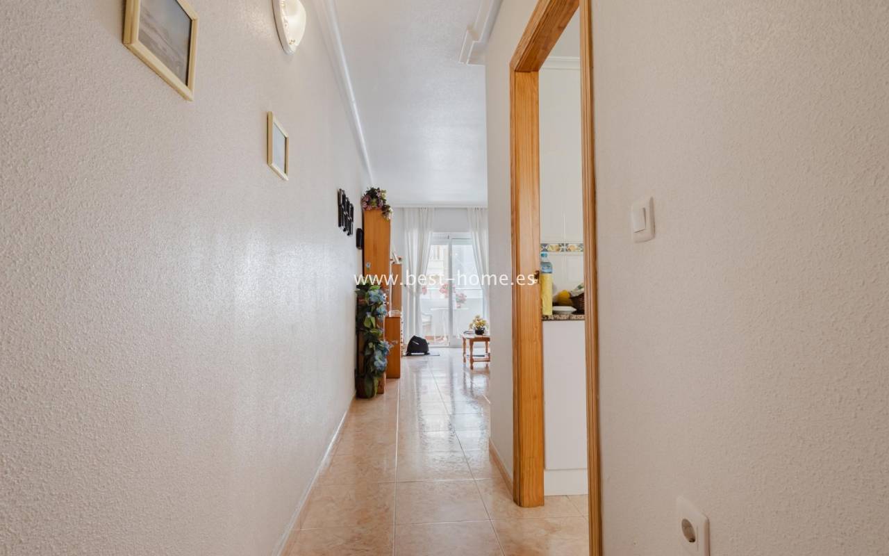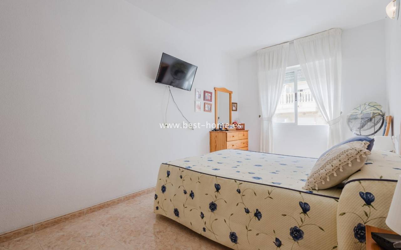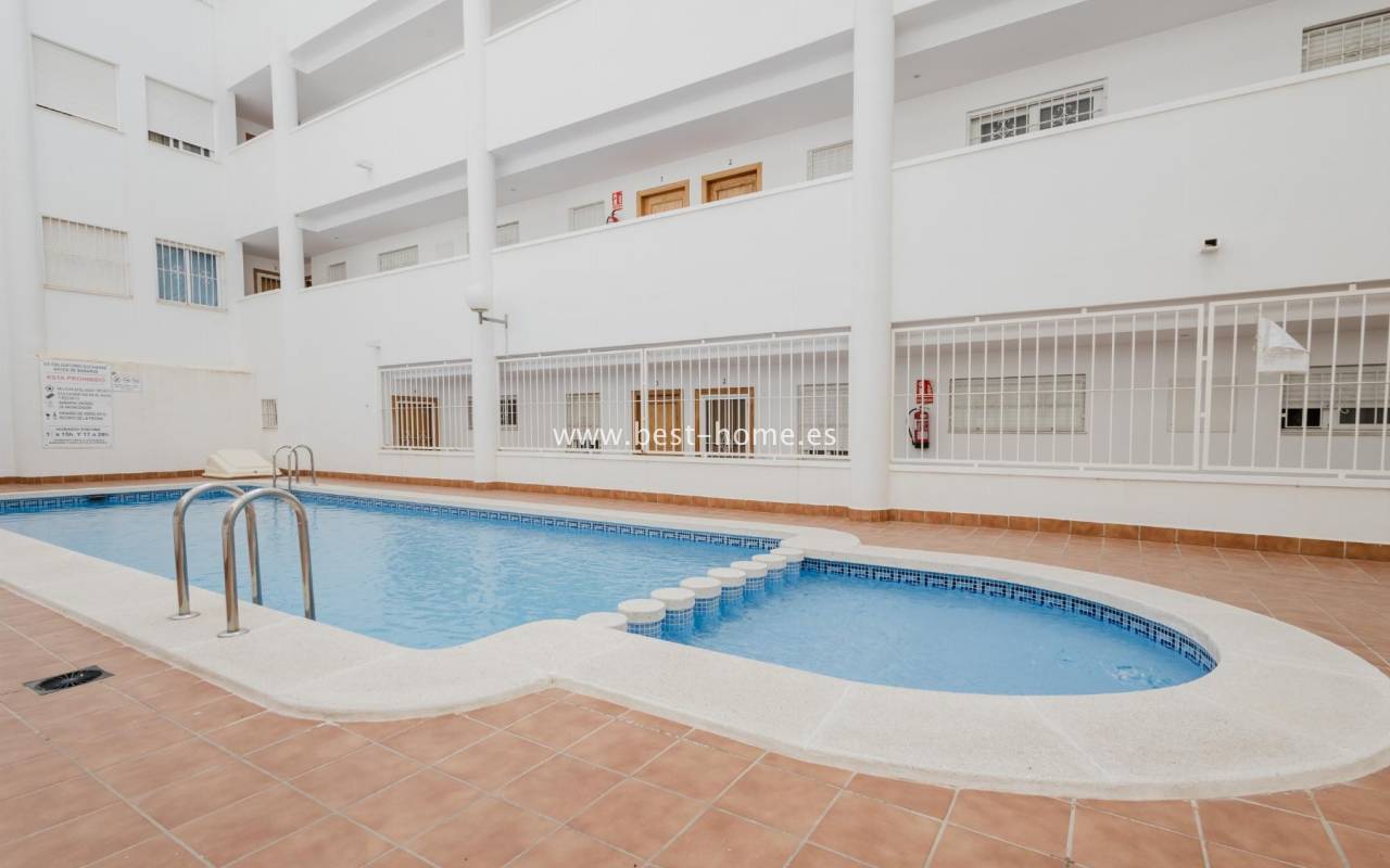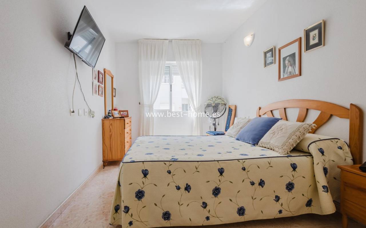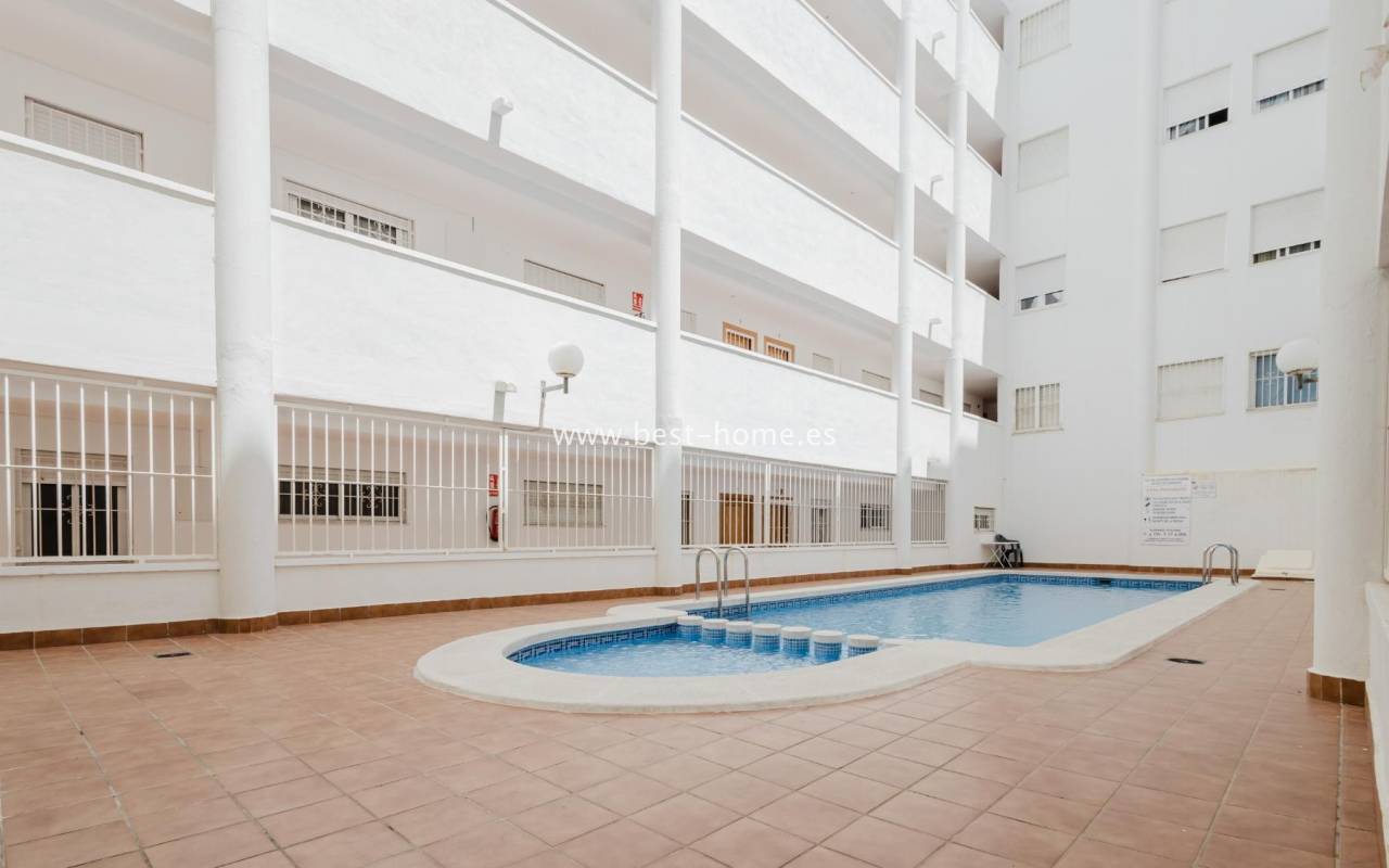 For sale: an apartment located on the third floor of a building with a swimming pool in Torrevieja. The property consists of two bedrooms, one bathroom, a living room with a dining area, and a kitchen. The building is situated in an excellent location, with shops, pharmacies, a school, parks, and other amenities all nearby. An additional advantage is the proximity to the beach – just about 500 meters away on foot. It is an ideal place both for permanent living and as an investment for holiday rentals.