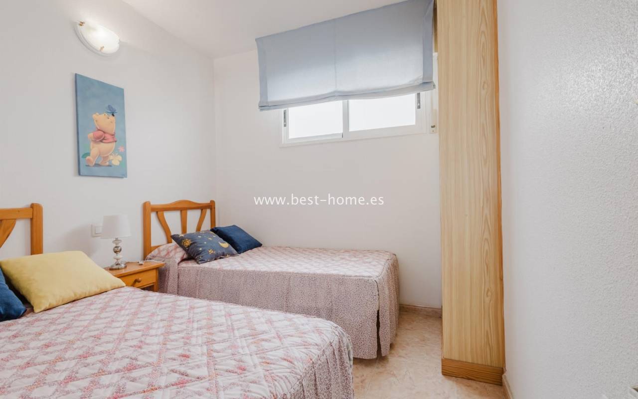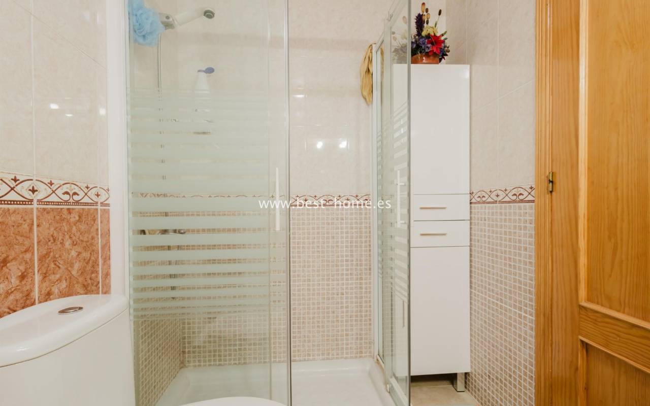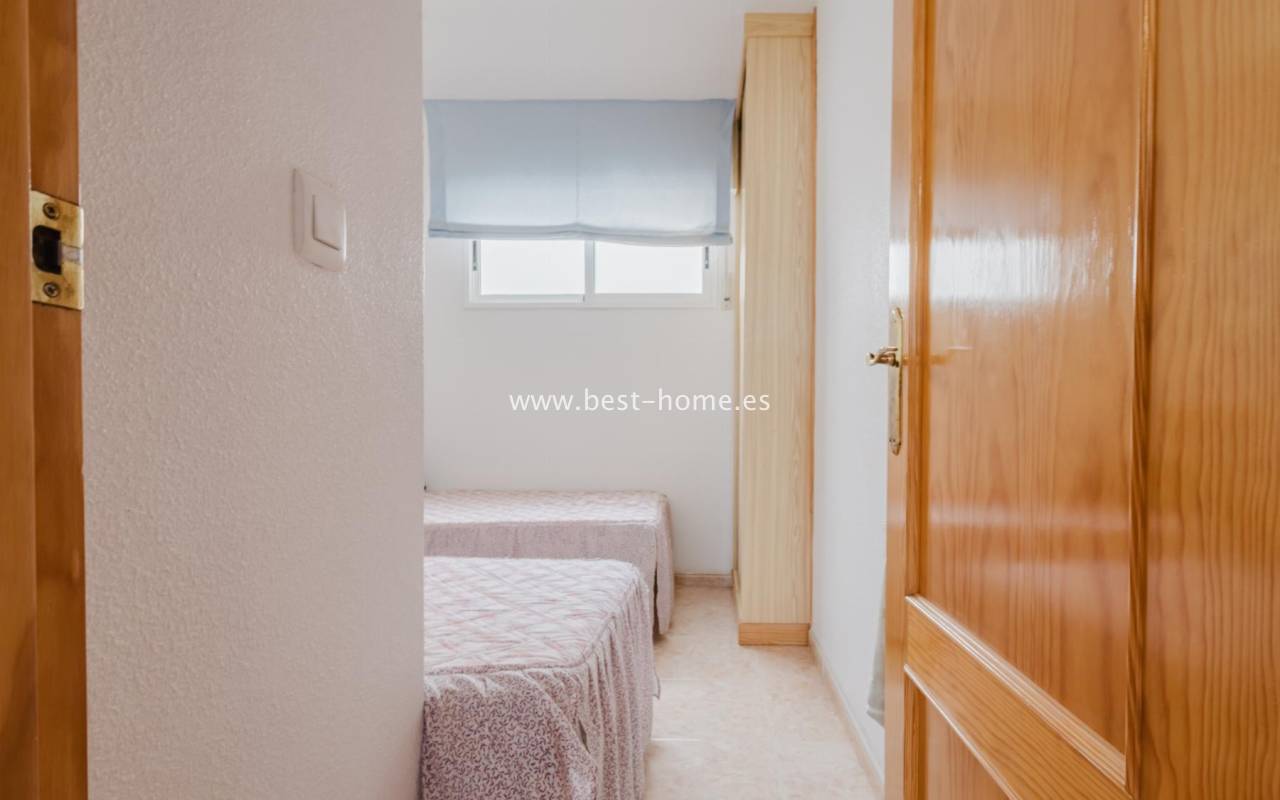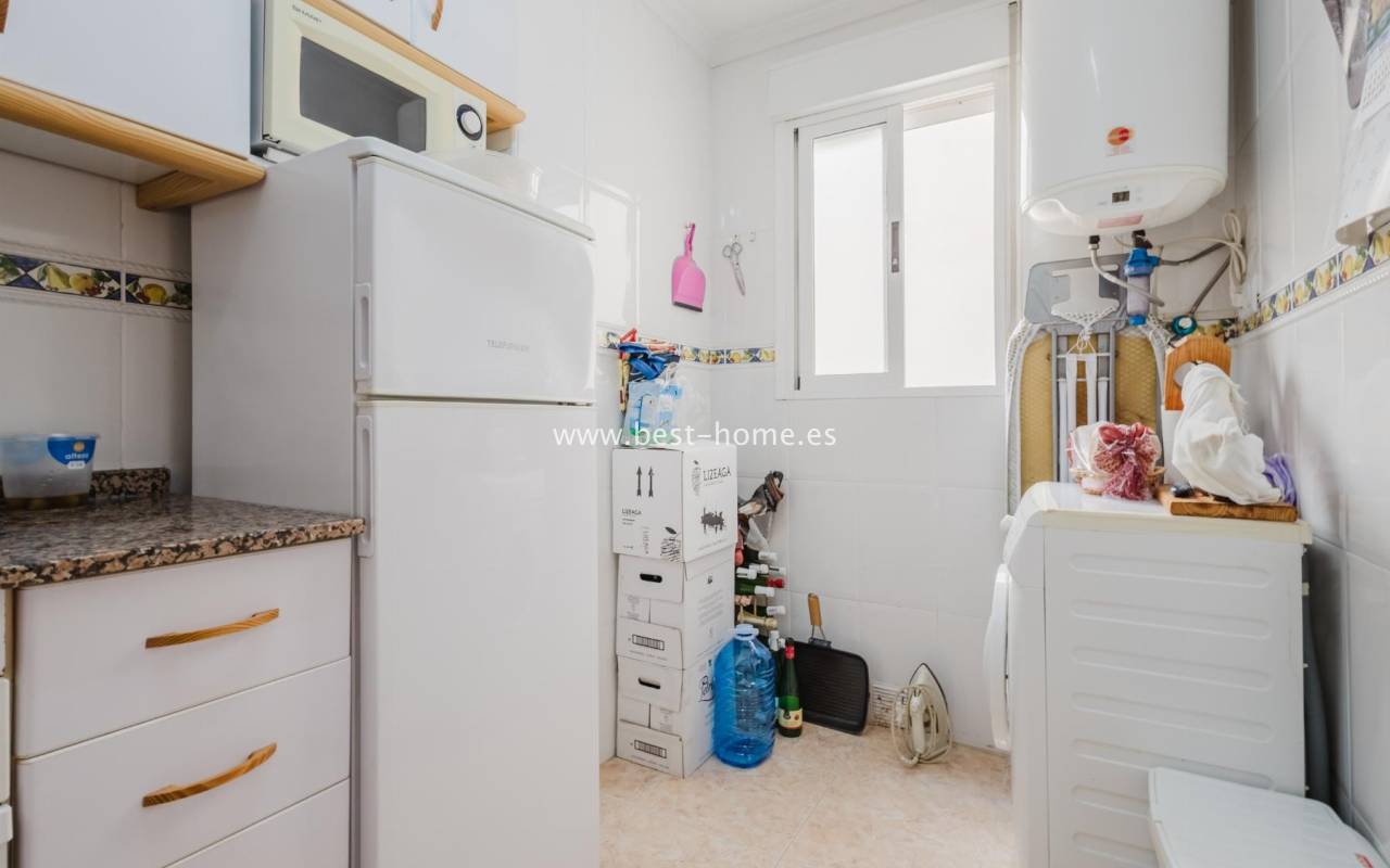 For sale: an apartment located on the third floor of a building with a swimming pool in Torrevieja. The property consists of two bedrooms, one bathroom, a living room with a dining area, and a kitchen. The building is situated in an excellent location, with shops, pharmacies, a school, parks, and other amenities all nearby. An additional advantage is the proximity to the beach – just about 500 meters away on foot. It is an ideal place both for permanent living and as an investment for holiday rentals.
