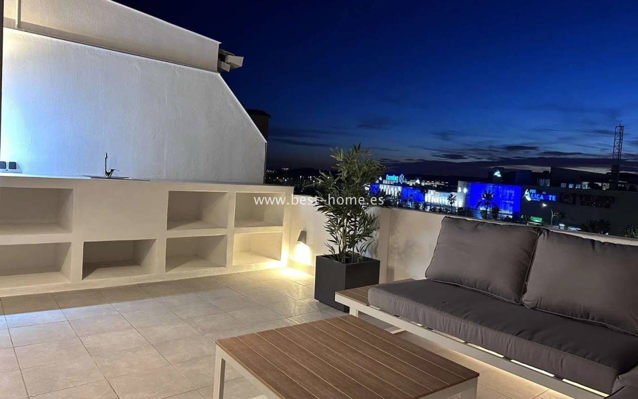 Modern penthouse fully renovated in 2024, located in Florida Baja, Alicante. It features 2 bedrooms and 1 bathroom – perfect for singles, couples, or families. The highlight is the spacious rooftop terrace with an outdoor kitchen, ideal for relaxing or entertaining with city views.