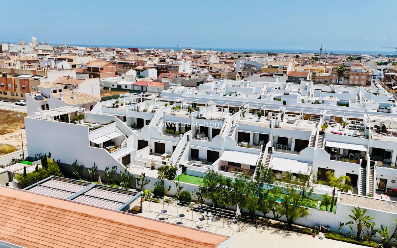 The ground floor of a bungalow in Pilar de la Horadada is a perfect choice for those who value comfort and modern solutions in a peaceful setting. The property consists of two cozy bedrooms and two bathrooms, providing convenience for both residents and guests. A spacious terrace offers an ideal space for outdoor relaxation, while a private jacuzzi adds a touch of luxury and is perfect for unwinding at any time of day. The gated community also features a bicycle storage area, and a private parking space is located directly on the property. The home is set in a quiet neighborhood with easy access to local amenities and just a short distance from beautiful beaches, making it an attractive option for both holiday stays and year-round living.