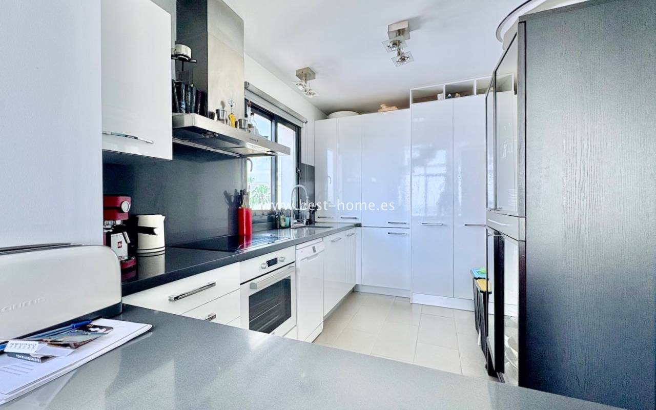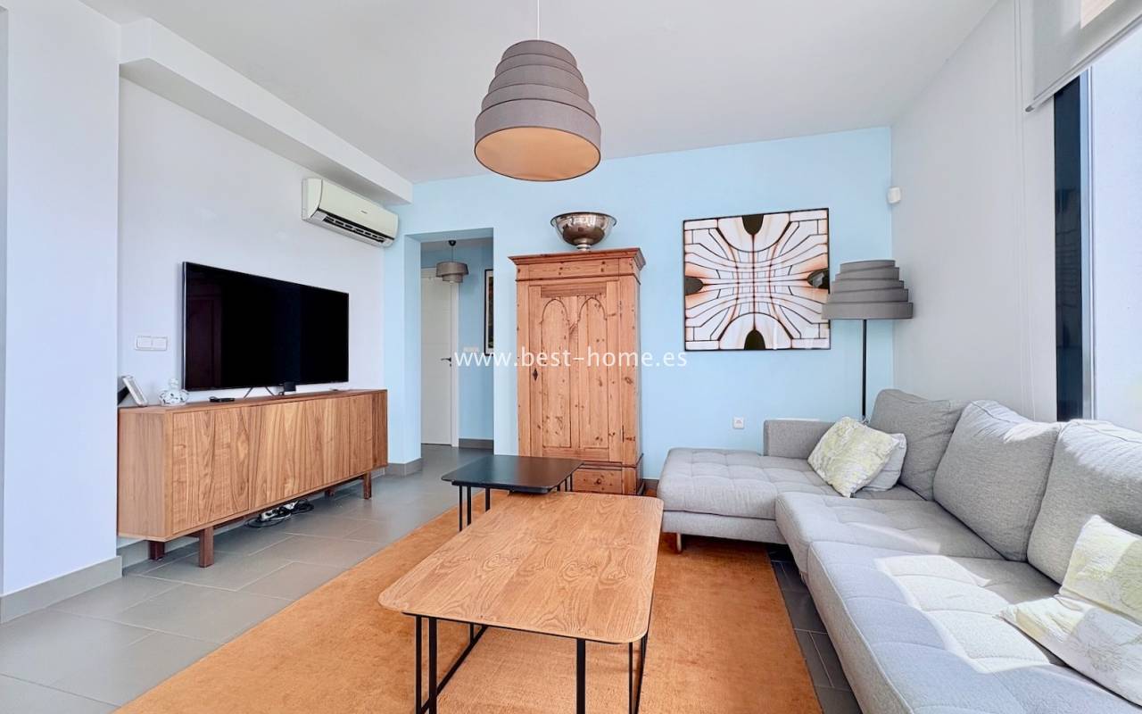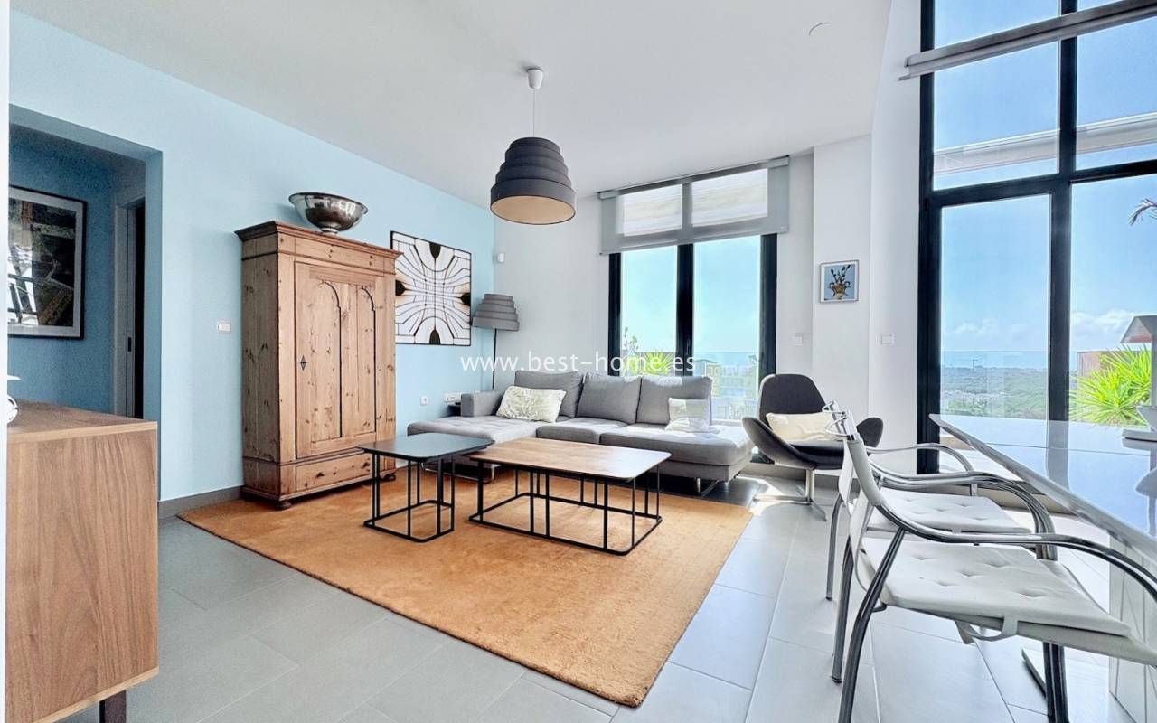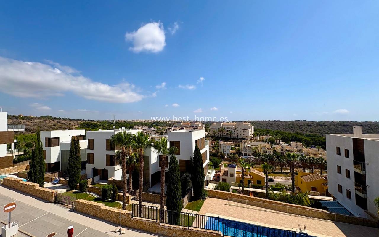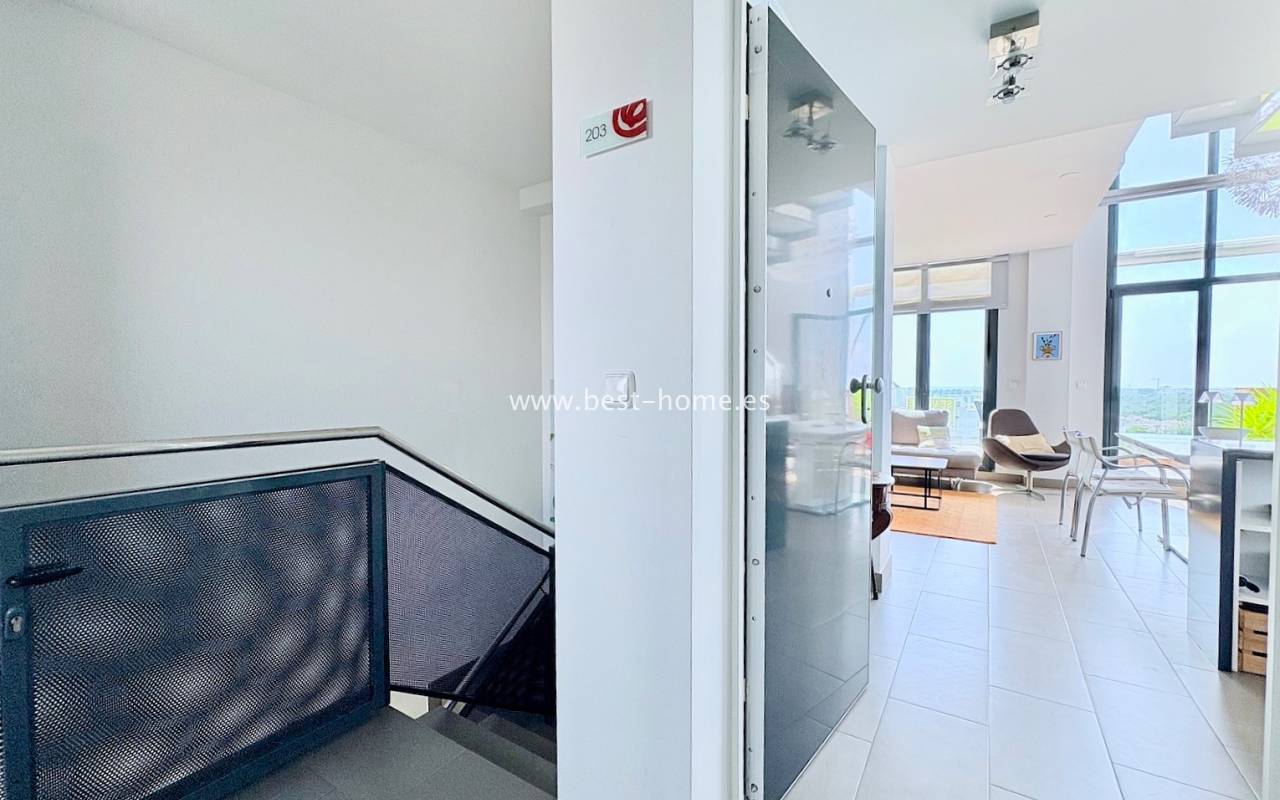 This unique penthouse is located at the highest point of the fantastic Las Ramblas golf course. The main floor features a spacious and bright living-dining room with a fitted kitchen, two bedrooms, and a bathroom. The living room opens onto a terrace (approximately 12 square meters) with fantastic views of Las Ramblas and the surrounding area. A stunning staircase leads to the upper level, where you'll find a third bedroom, a second bathroom, and a huge 78-square-meter terrace. The terrace offers views of the sea, the forest, the communal areas, and the surrounding area. The price includes furniture, appliances, and air conditioning.