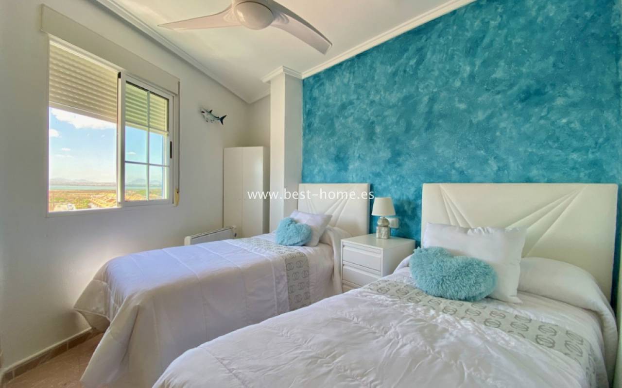 This well-priced, lagoon-view apartment in La Mata is located in a prime location. The property is located on the 4th floor, offering a bright, accessible living room with access to a south-facing terrace overlooking the natural lagoon. It features two double bedrooms, a wide walkway with appliances, and a bathroom. The apartment is furnished and equipped with heating and cooling. The complex boasts a charming community swimming pool surrounded by greenery and palm trees. Nearby are a beautiful beach, a promenade, and numerous bars, restaurants, cafes, and pastry shops. This apartment is ideal for residential rentals or permanent residence.