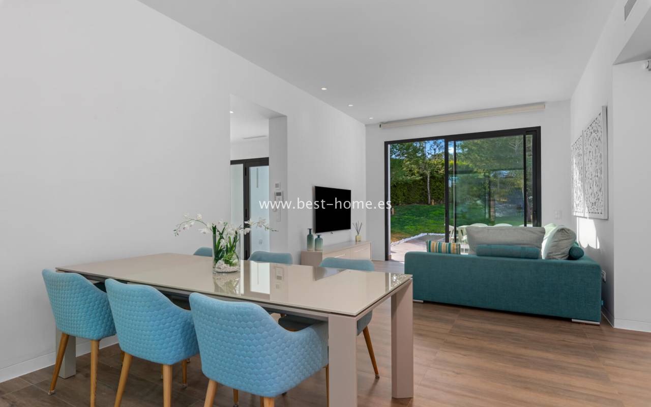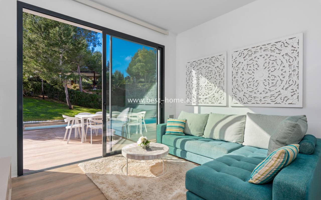 This attractive single-story villa is located in the secure Las Colinas golf resort. It comprises three bedrooms with fitted wardrobes, two bathrooms, a fitted kitchen, and a high-ceilinged living/dining room. The property boasts spacious rooms with access to the garden. It also boasts a solarium/rooftop terrace. The 939 m² plot boasts a private swimming pool and ample greenery.