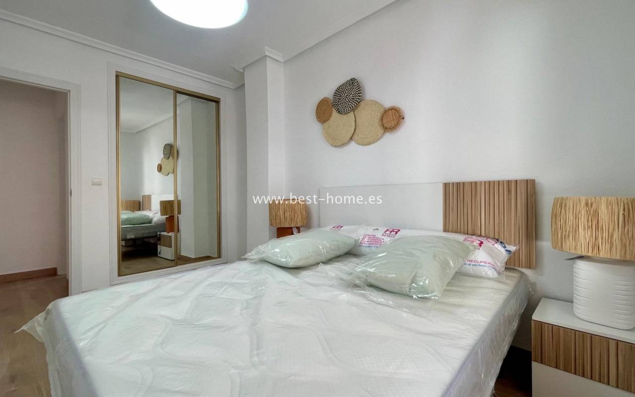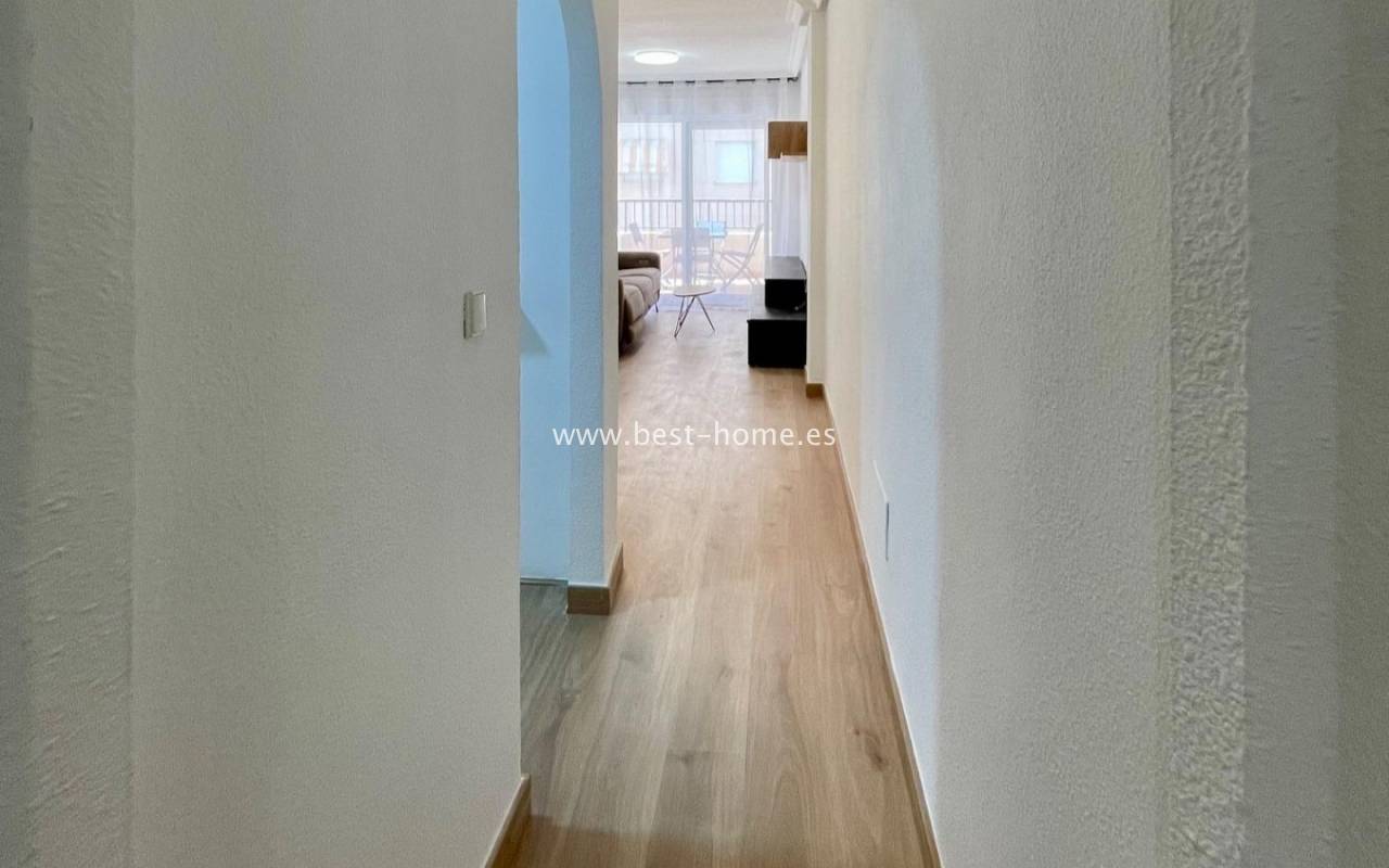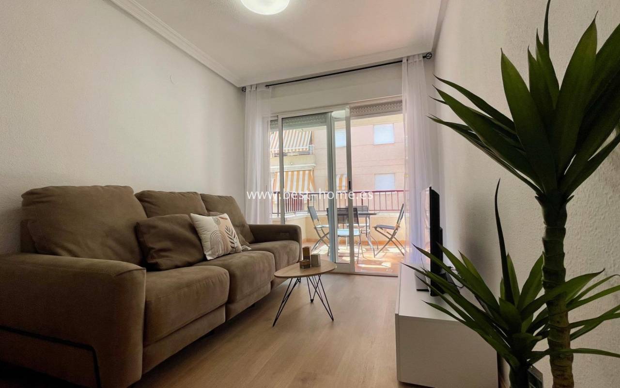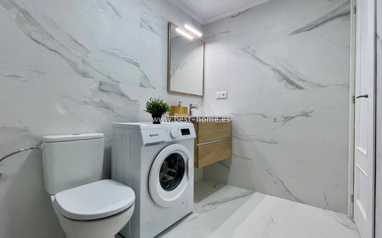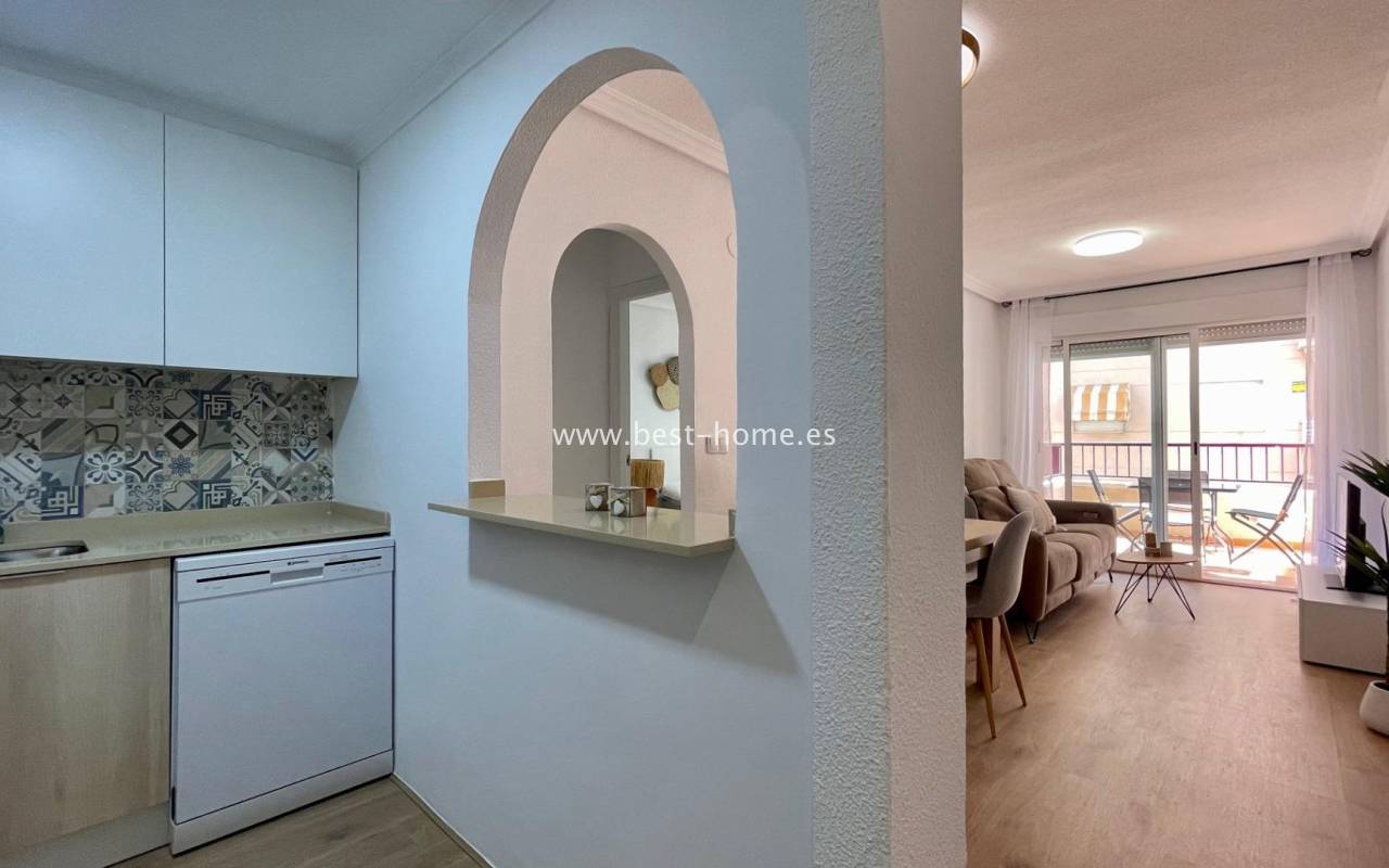 This beautifully decorated apartment is located near Torrevieja's Parque Nacional. It features a living room with access to a sunny terrace, two double bedrooms with built-in wardrobes, an American-style kitchen equipped with new appliances, and a beautiful renovated bathroom. The apartment is bright, very spacious, and ideal for a holiday rental or permanent residence. Nearby, you'll find a large number of bars, restaurants, pubs, and cafes.
