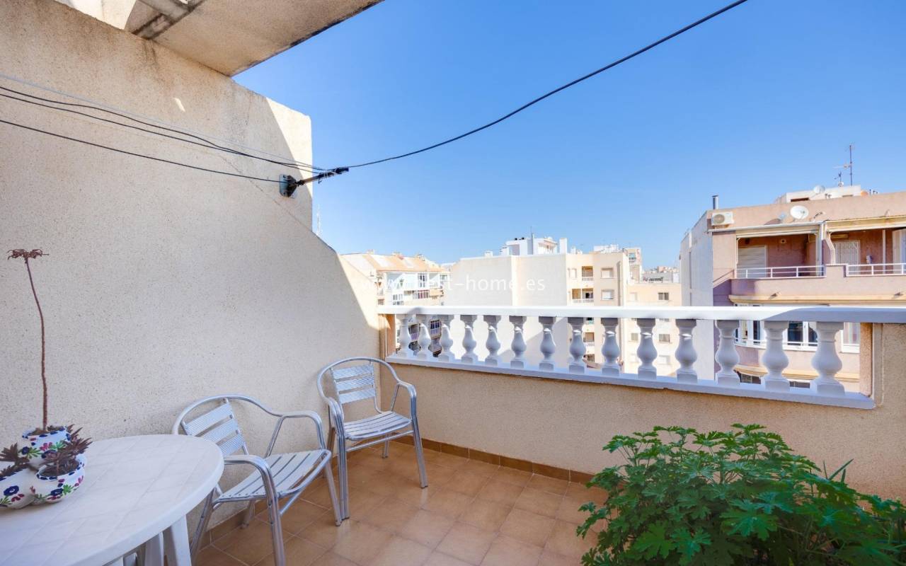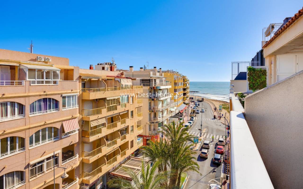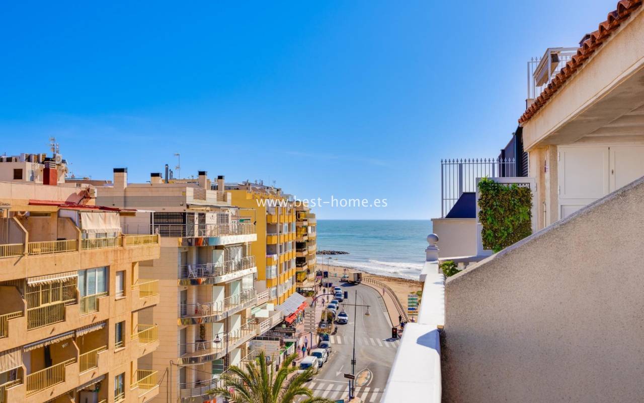 A fantastic penthouse with side sea views on the main street of Habaneras in Torrevieja. It features a living room with access to a large 11m² terrace with sea views, three bedrooms (two of which are doubles), a separate kitchen equipped with appliances, and two bathrooms. The apartment is furnished and has air conditioning. A parking space in the underground garage is also available as an option. This property is ideal for investors, holiday rentals, or permanent residence. Nearby, within 50 meters, you'll find a beautiful beach, a promenade along the sea, and a variety of pubs, restaurants, and cafes.