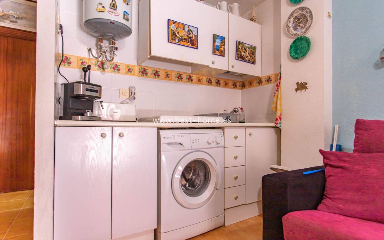 This single-story bungalow is located near the promenade and the beautiful beach in La Mata. It features a 7m² garden, a living room, a double bedroom with a built-in wardrobe, an office, a small kitchen, and a bathroom. The beach is 200 meters away, and there are numerous restaurants, cafes, and pastry shops nearby