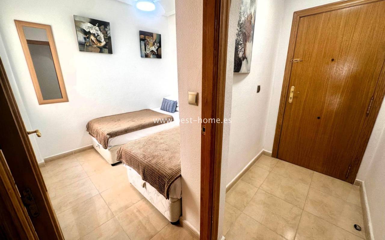 For sale: a spacious and well-maintained apartment in Torrevieja, ideal both as a permanent residence and a holiday investment. The property consists of two bright bedrooms, one bathroom, a functional kitchen, and a cozy living room. It is located in a clean and well-kept building with access to a communal rooftop pool offering panoramic views of the surrounding area. Residents also have access to a shared parking area (unassigned spaces) and a private storage room providing extra space. The apartment is situated in an excellent location – just 1,600 meters from the sea – and is surrounded by all necessary amenities, including supermarkets, petrol stations, bus stops, a sports center, and a local market. This is a great opportunity for those seeking comfort, convenience, and proximity to urban infrastructure.