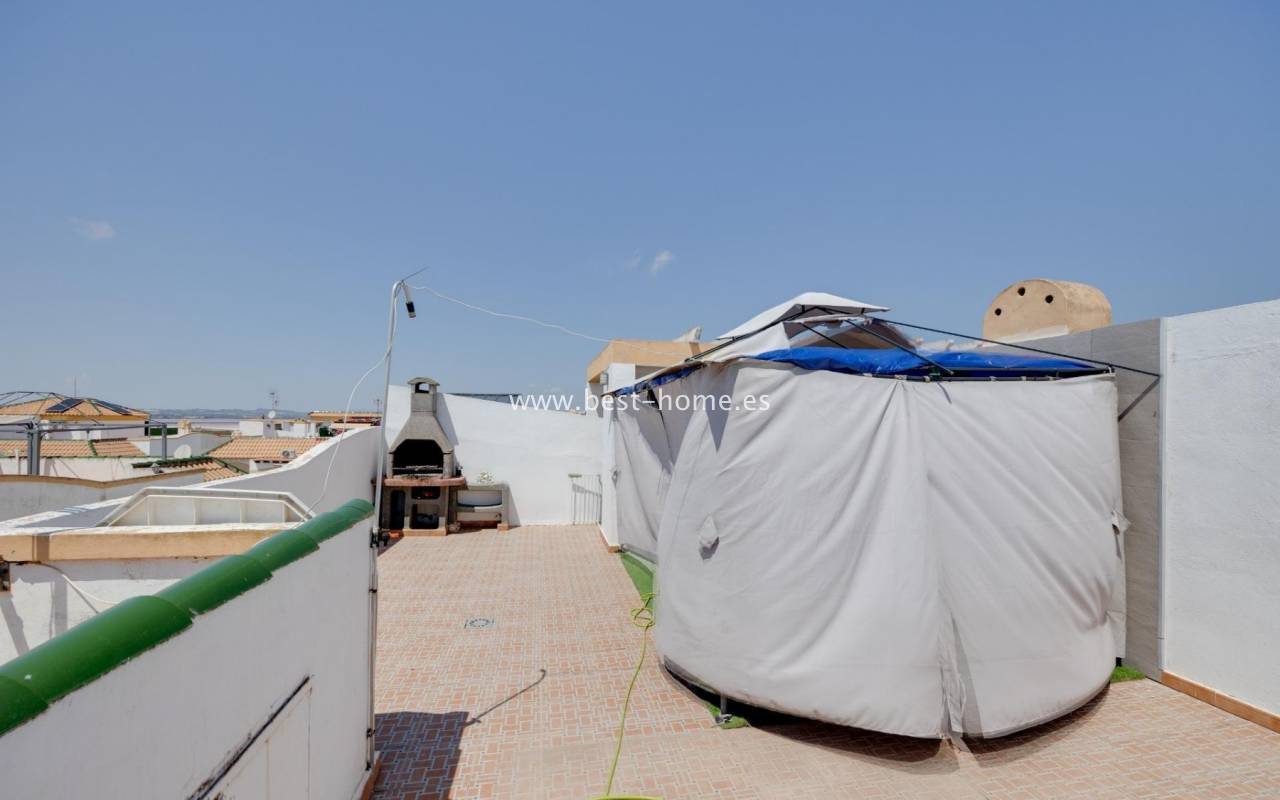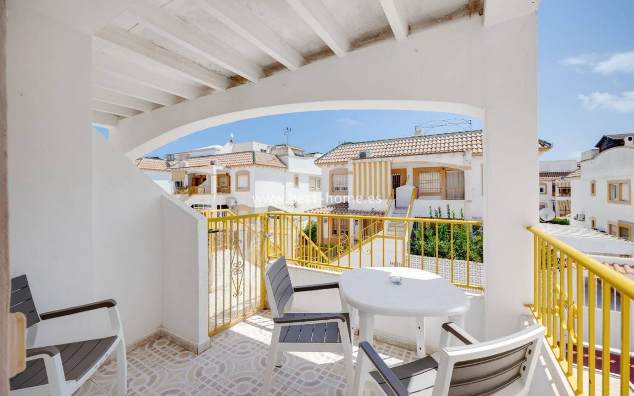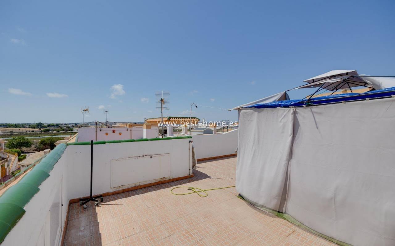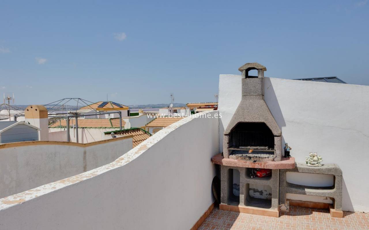 This two-story bungalow features a large solarium, views of the salt lagoon, and a beautiful community pool. It features a bright, spacious living room, an open-plan American-style kitchen equipped with appliances, two double bedrooms with built-in wardrobes, and a bathroom. At the top of the property, you'll find a large solarium with a lounge area, a brick fireplace, and fantastic views of the salt lagoon. The community also boasts a swimming pool for residents.