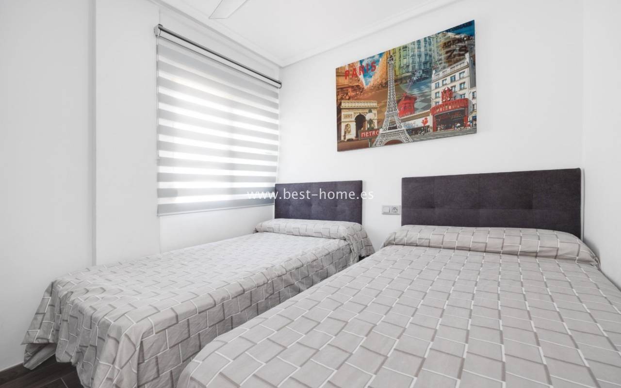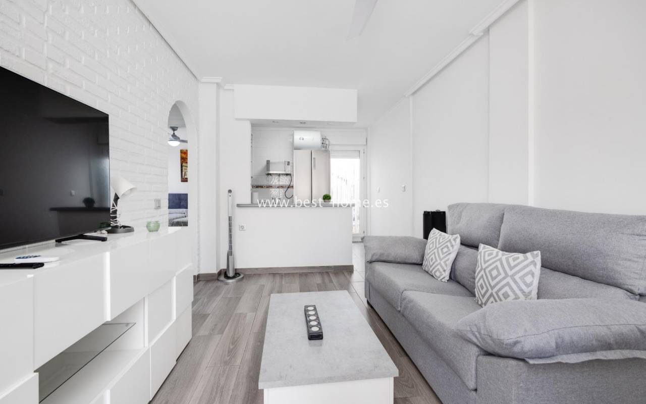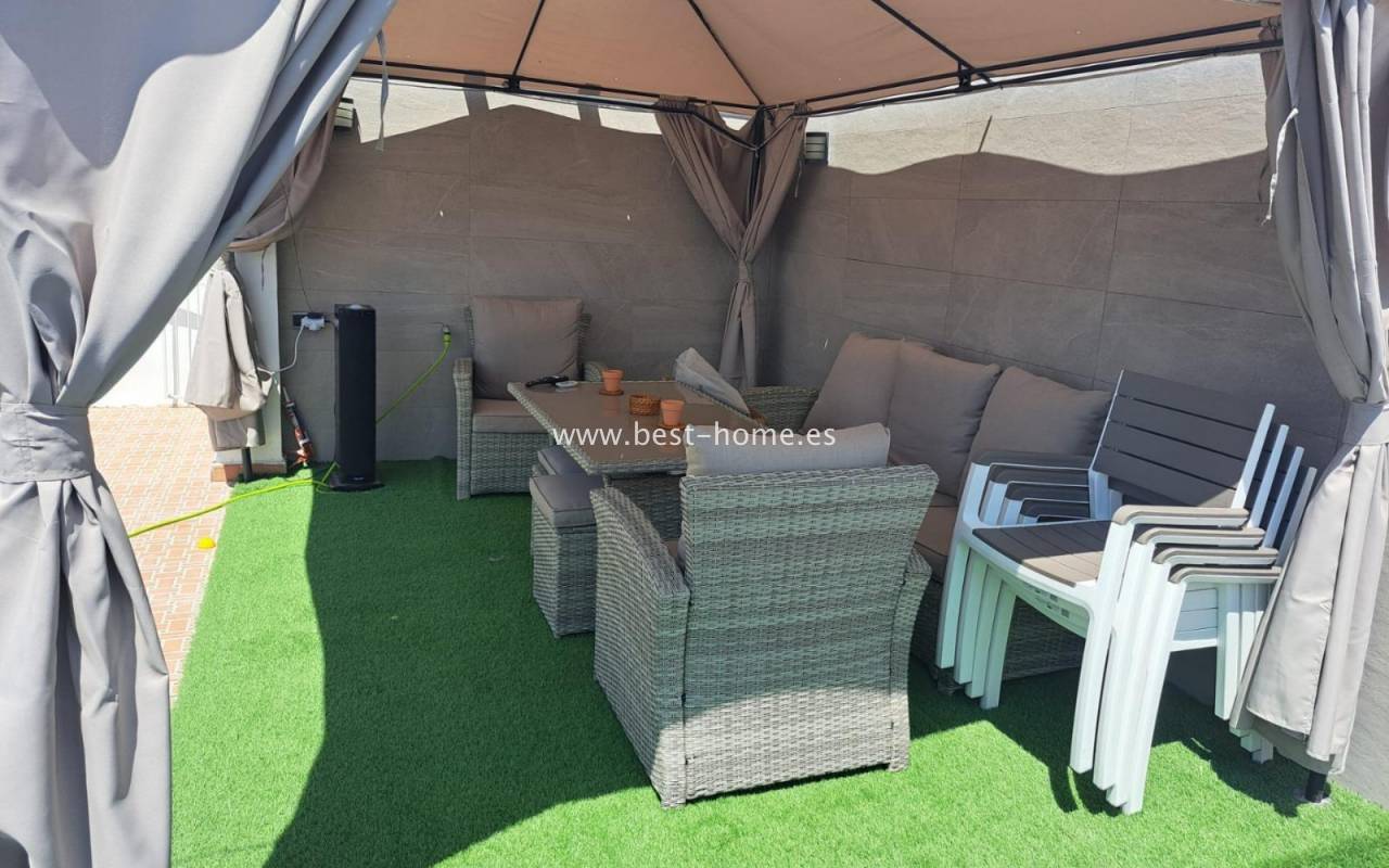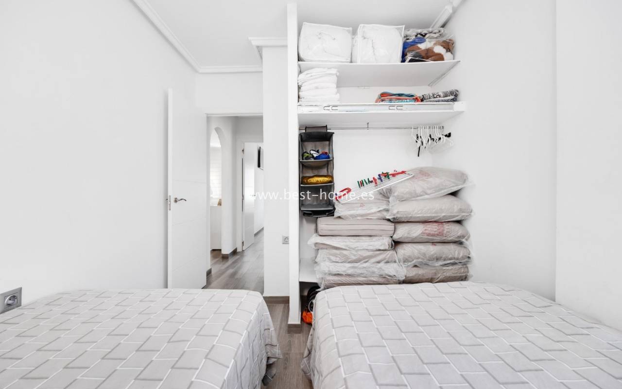 This two-story bungalow features a large solarium, views of the salt lagoon, and a beautiful community pool. It features a bright, spacious living room, an open-plan American-style kitchen equipped with appliances, two double bedrooms with built-in wardrobes, and a bathroom. At the top of the property, you'll find a large solarium with a lounge area, a brick fireplace, and fantastic views of the salt lagoon. The community also boasts a swimming pool for residents.
