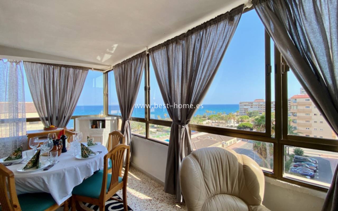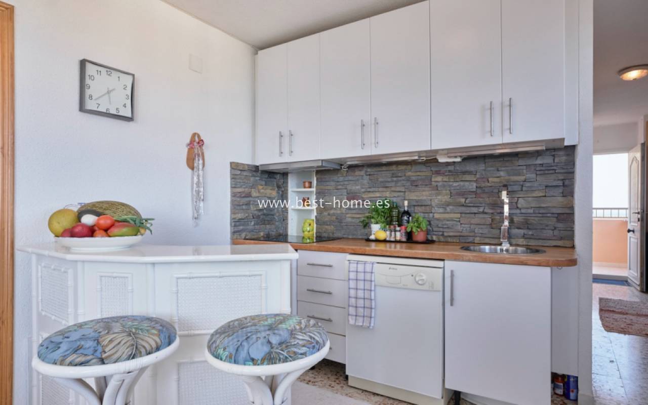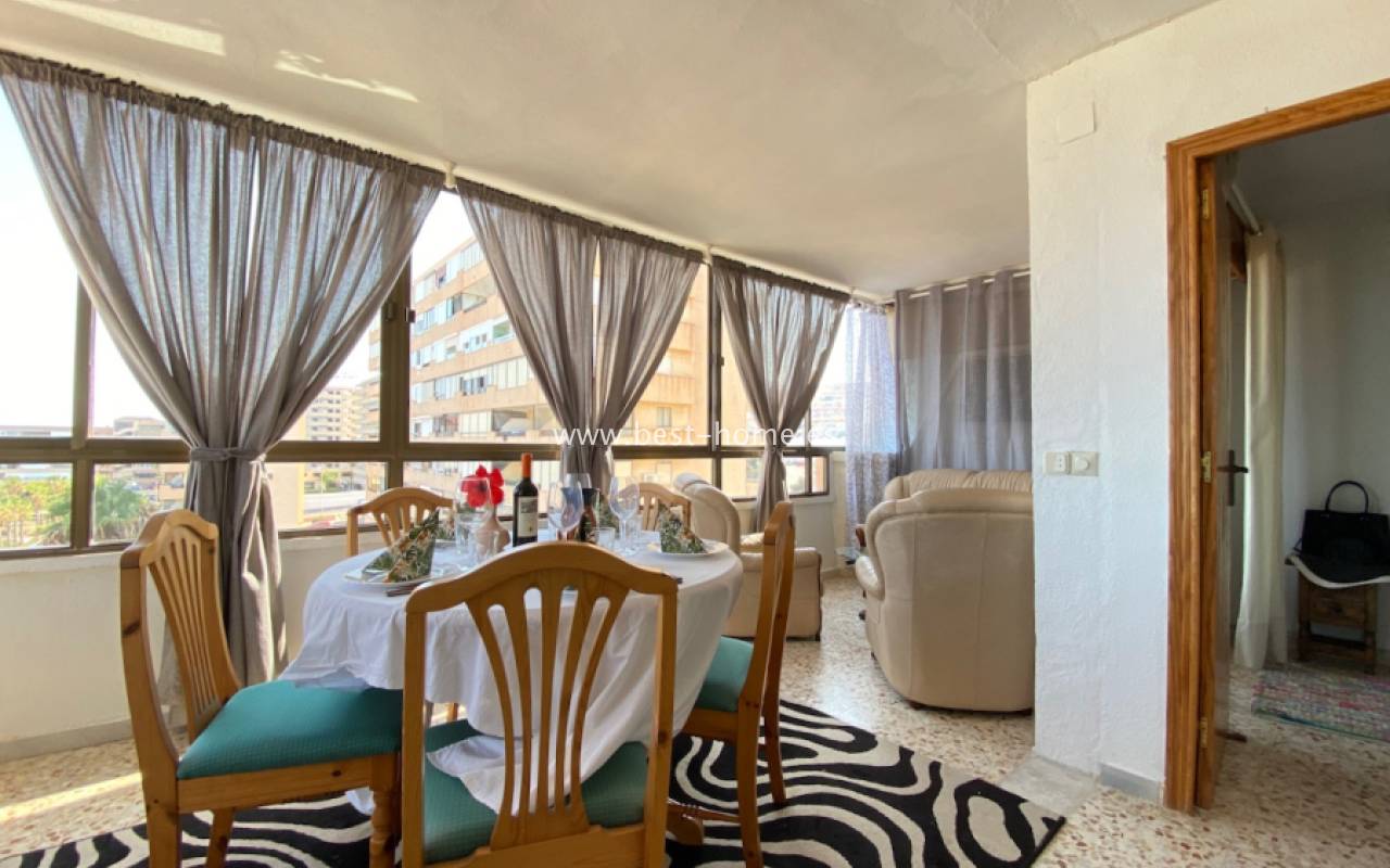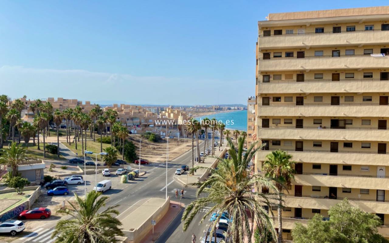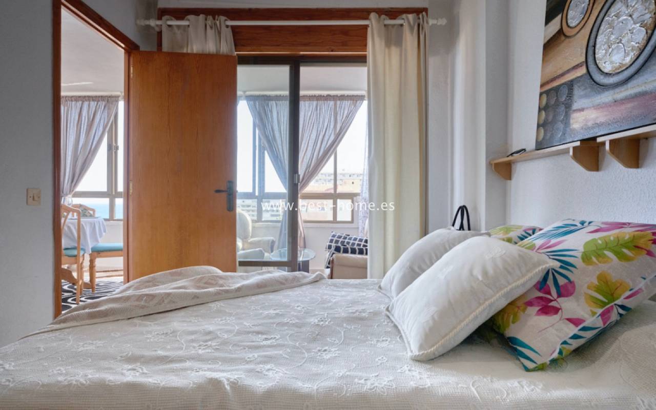 This 5th-floor, second-line apartment boasts fantastic sea views. It features a living room with access to a covered terrace overlooking the gardens, parking lot, swimming pool, and Mediterranean Sea. The apartment also features an open-plan kitchen, a fully equipped living room, two double bedrooms, and a bathroom. This property is ideal for tourist or long-term rentals. Nearby, you'll find a public swimming pool (for a fee), a tennis court, a park, and a sandy beach with numerous restaurants and cafes.