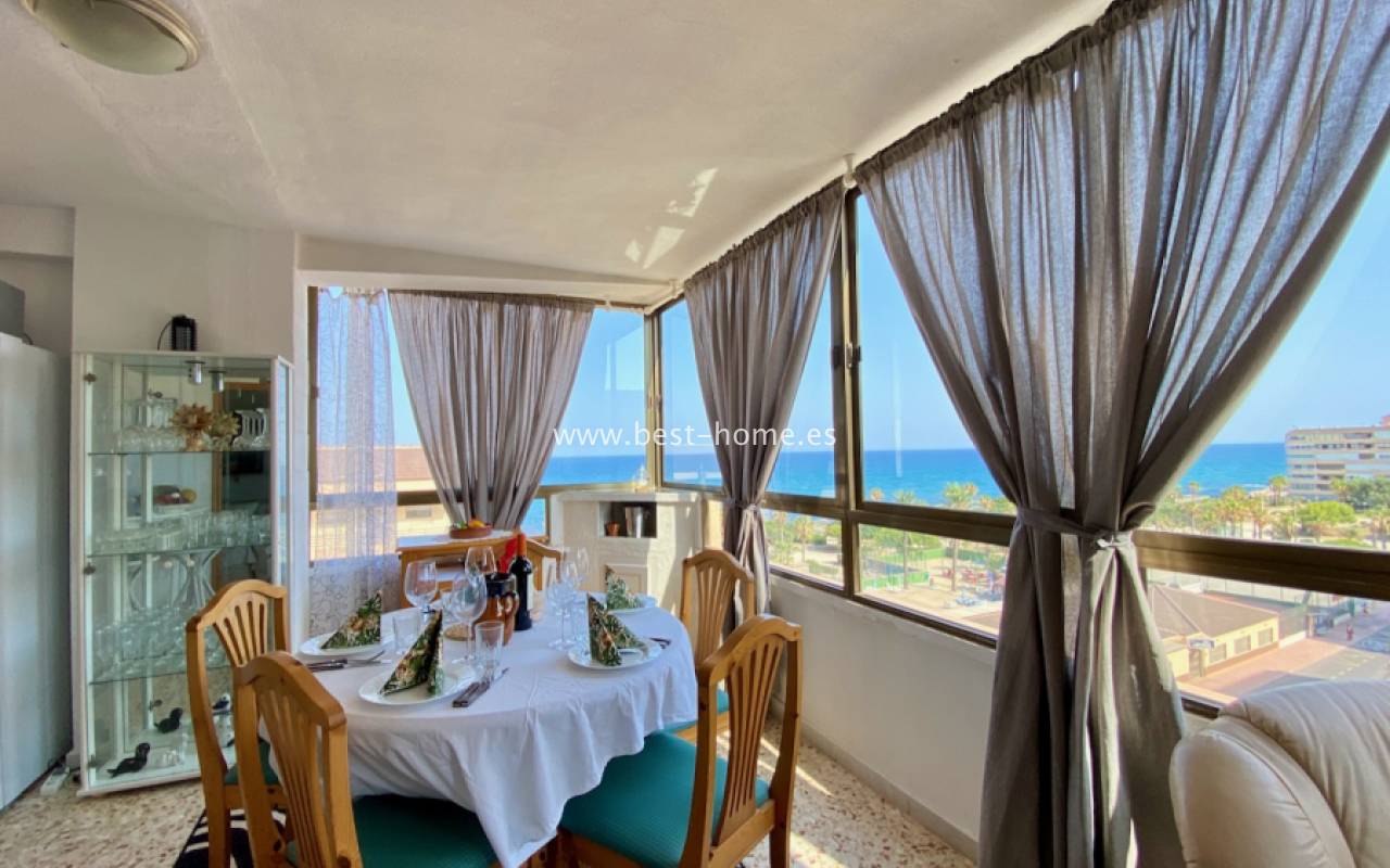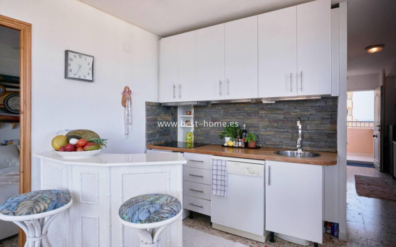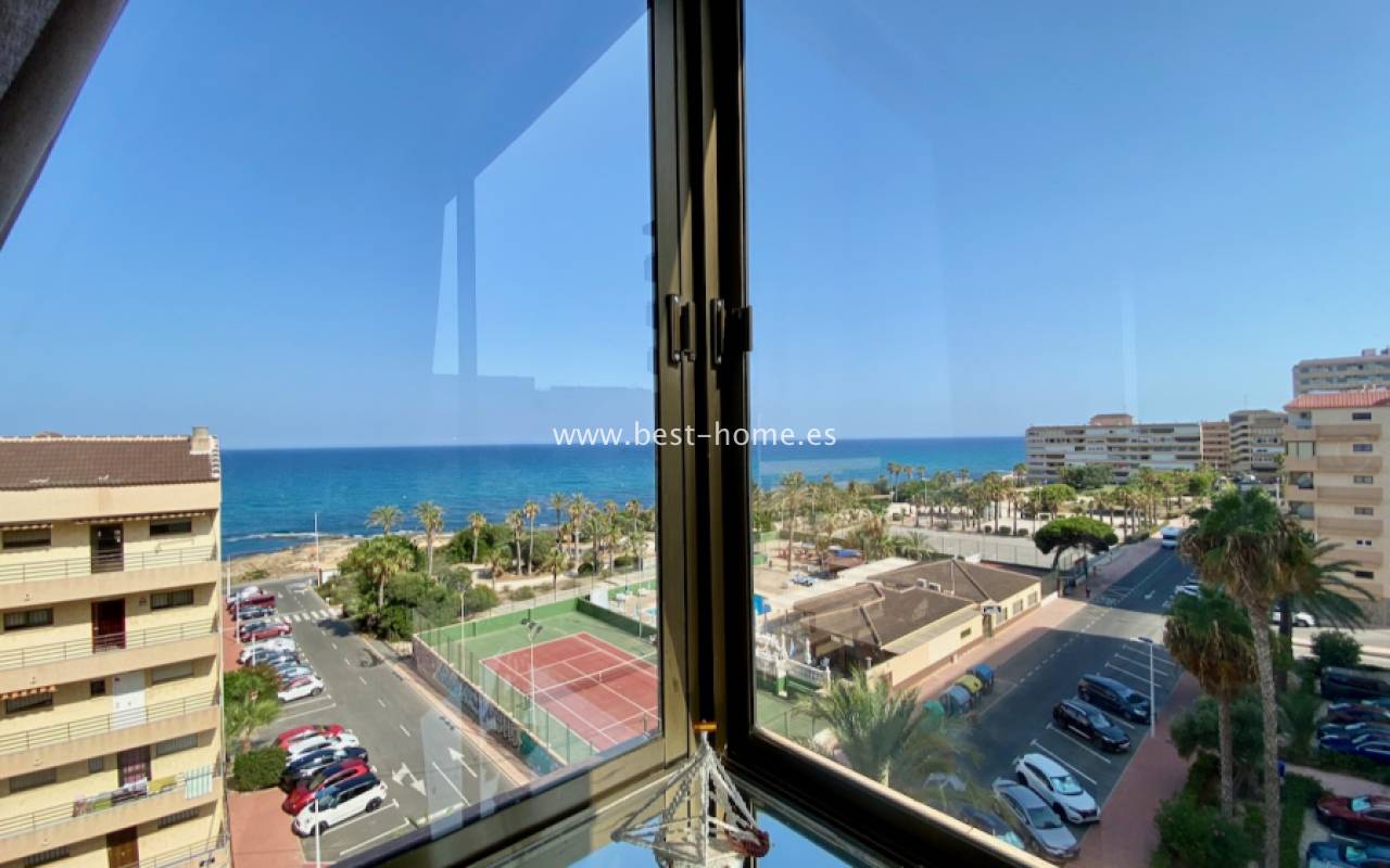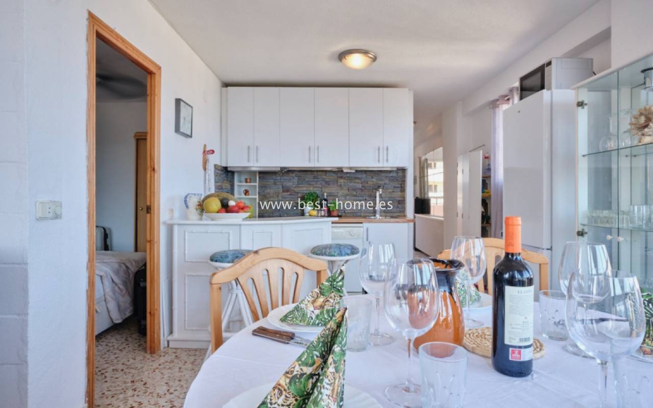 This 5th-floor, second-line apartment boasts fantastic sea views. It features a living room with access to a covered terrace overlooking the gardens, parking lot, swimming pool, and Mediterranean Sea. The apartment also features an open-plan kitchen, a fully equipped living room, two double bedrooms, and a bathroom. This property is ideal for tourist or long-term rentals. Nearby, you'll find a public swimming pool (for a fee), a tennis court, a park, and a sandy beach with numerous restaurants and cafes.