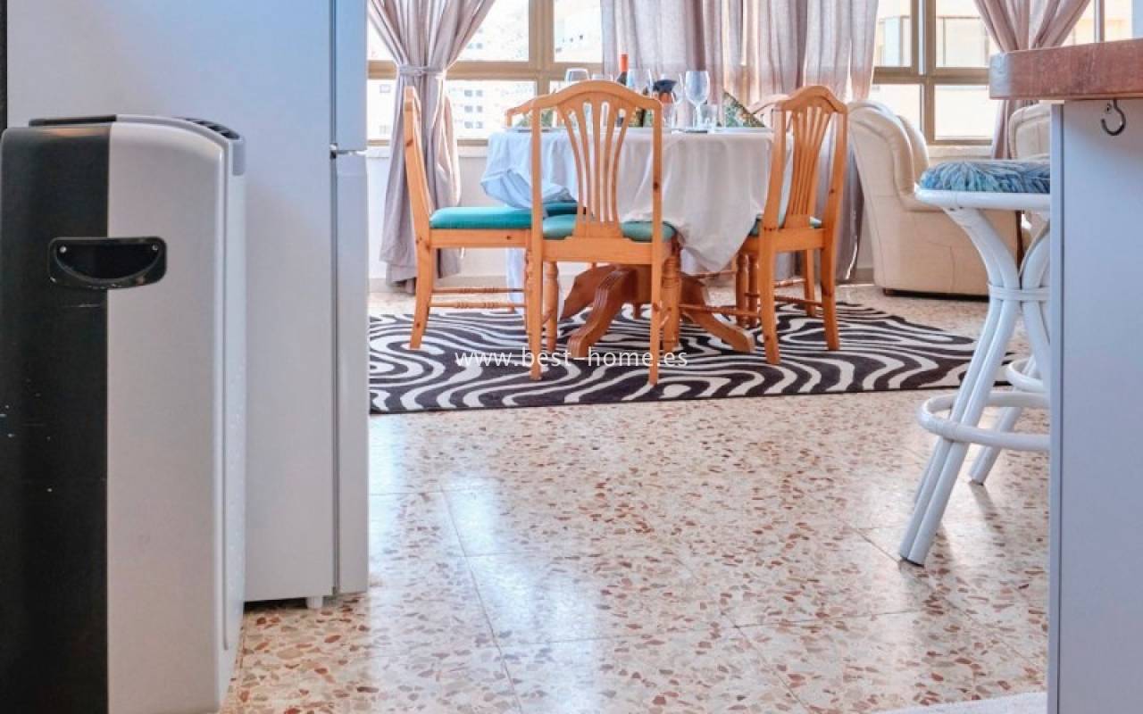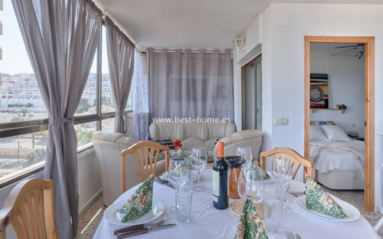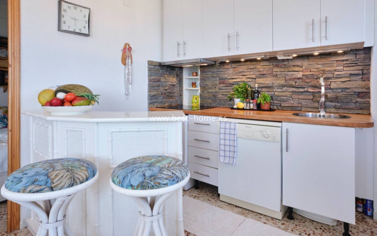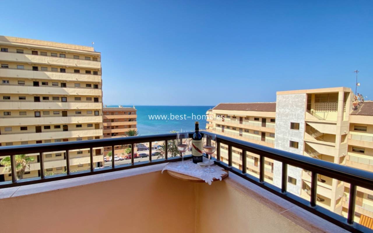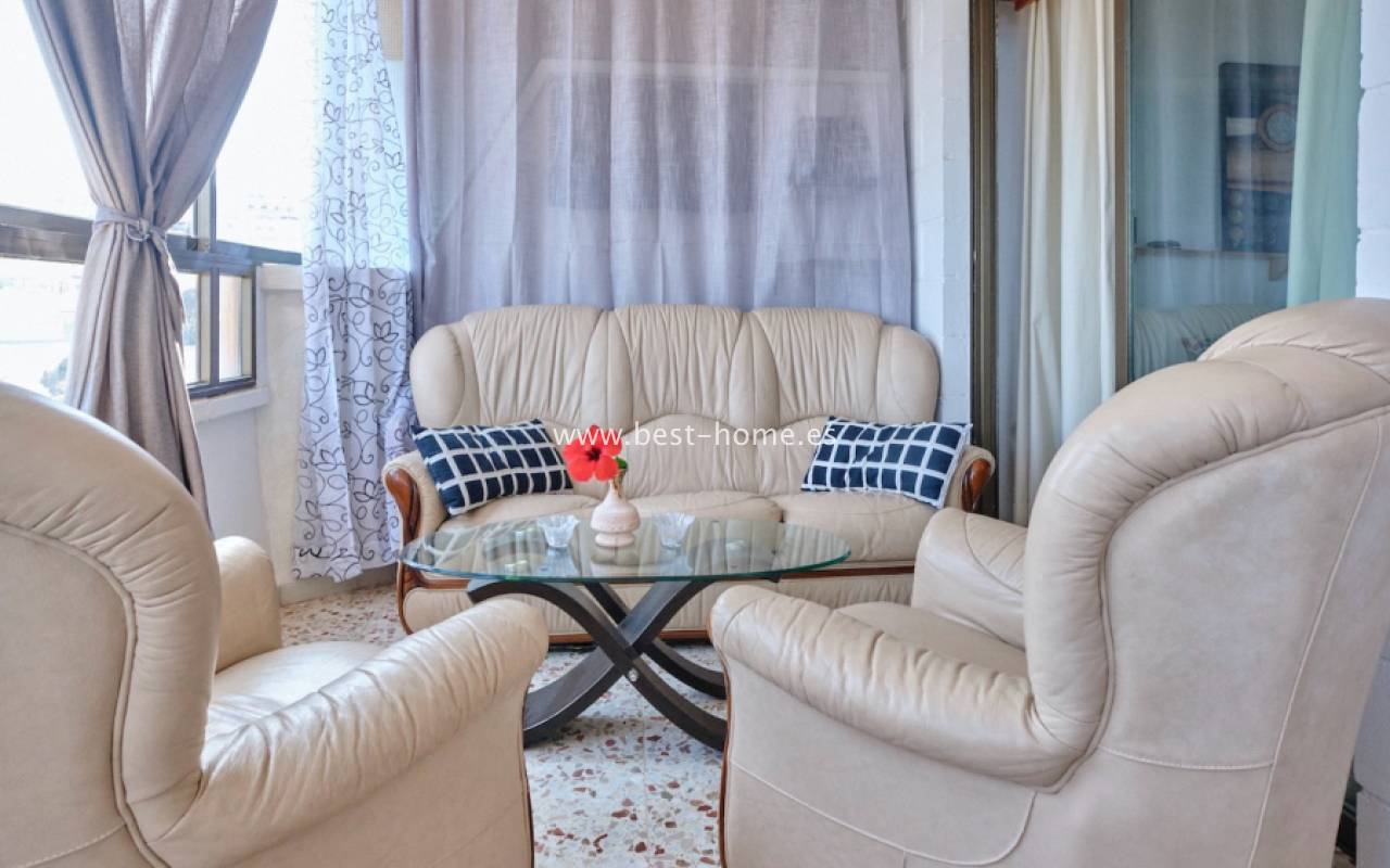 This 5th-floor, second-line apartment boasts fantastic sea views. It features a living room with access to a covered terrace overlooking the gardens, parking lot, swimming pool, and Mediterranean Sea. The apartment also features an open-plan kitchen, a fully equipped living room, two double bedrooms, and a bathroom. This property is ideal for tourist or long-term rentals. Nearby, you'll find a public swimming pool (for a fee), a tennis court, a park, and a sandy beach with numerous restaurants and cafes.