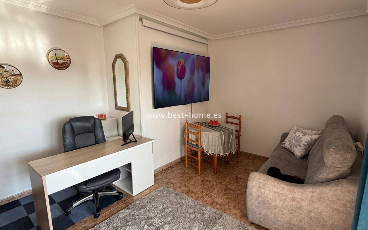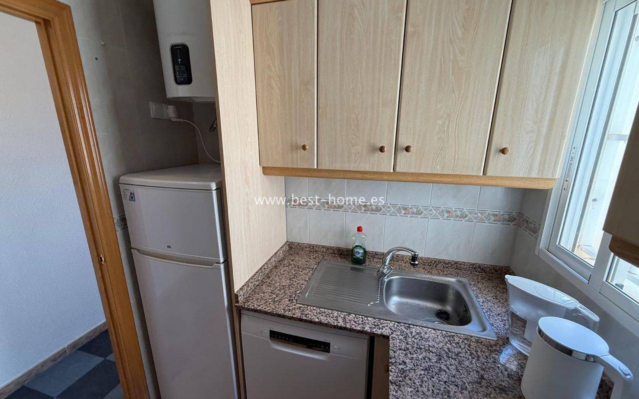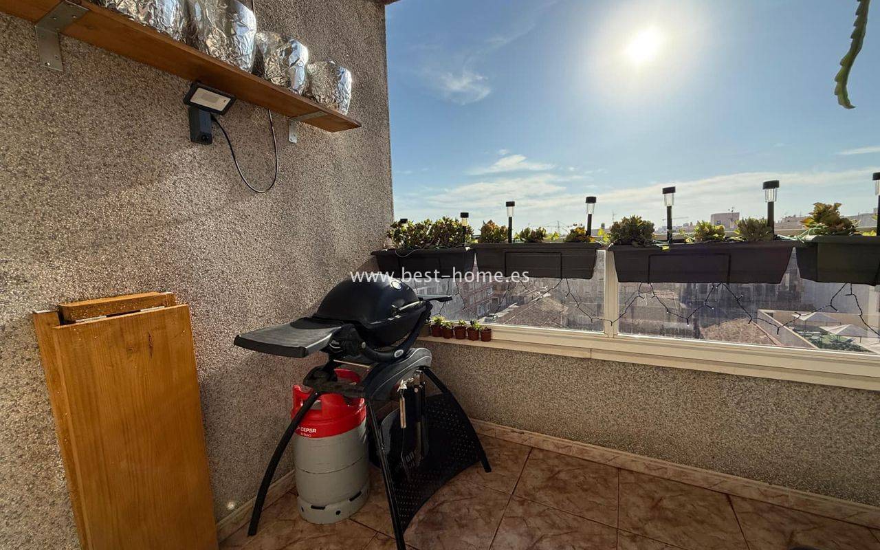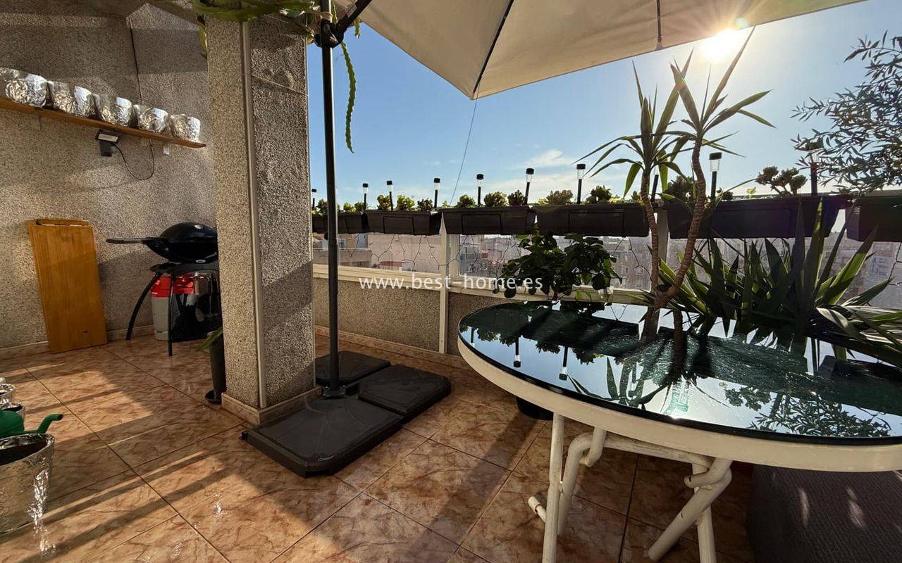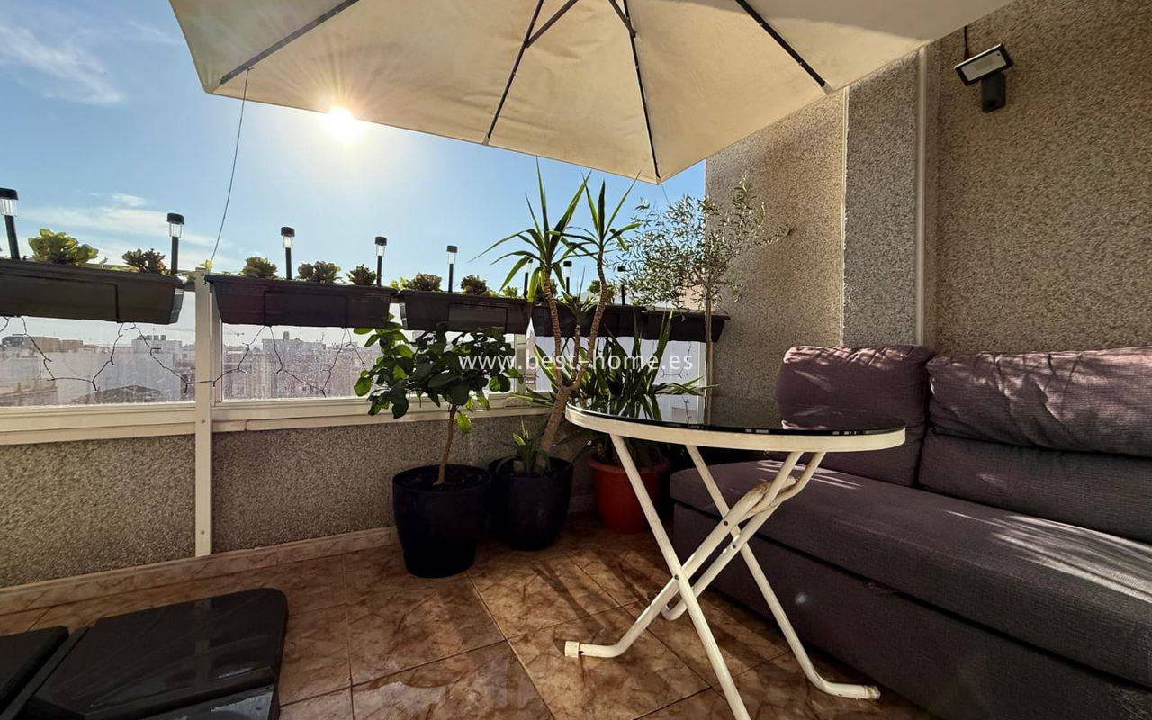 Penthouse with a large terrace, close to the center, on one of Torrevieja's main streets. It features a living room with access to a large terrace, a fully equipped kitchen, one double bedroom, and a bathroom. The apartment is furnished. There are numerous bars, cafes, and restaurants nearby.
