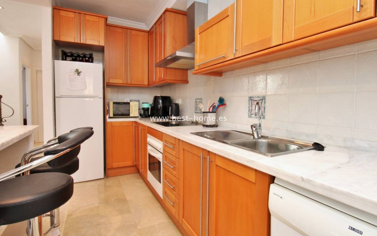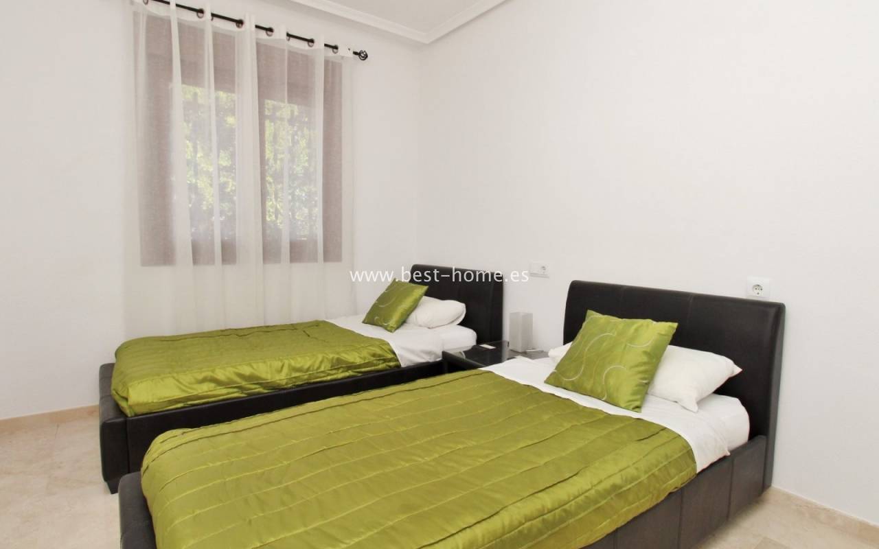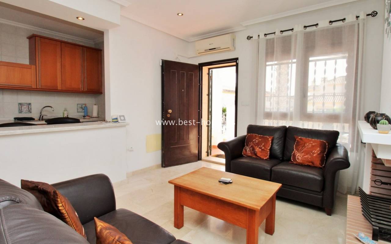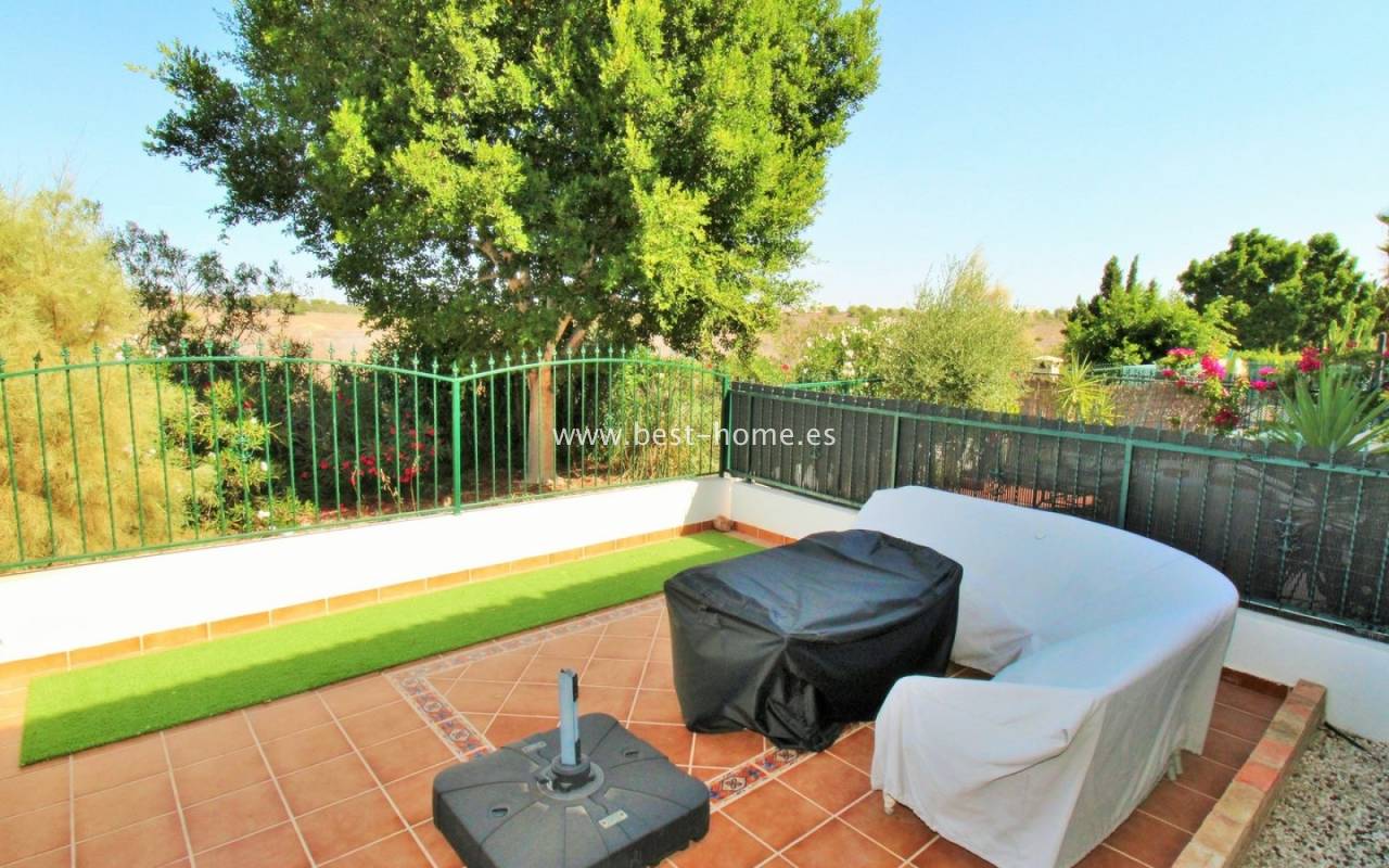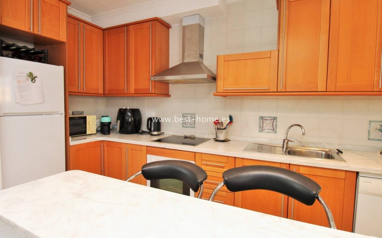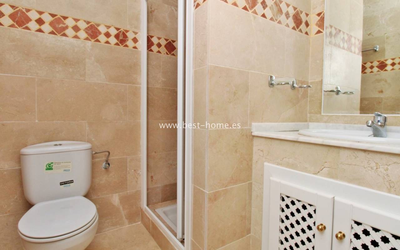 The terraced house in Villamartin is an elegant property with a distinctive Spanish character. It consists of three spacious bedrooms and two bathrooms spread over two floors, ensuring a comfortable layout for the whole family. At the front and back of the house there are gardens that invite relaxation and provide a private outdoor space, while an additional advantage is the upstairs terrace, perfect for enjoying breakfast in the morning or unwinding in the afternoon. Built in 2005, the house stands out for its high-quality finishes, including marble floors that emphasize the elegance of the interiors. The entire residential complex is designed in a traditional Spanish style, and residents have access to a community swimming pool, adding charm and comfort to everyday life.