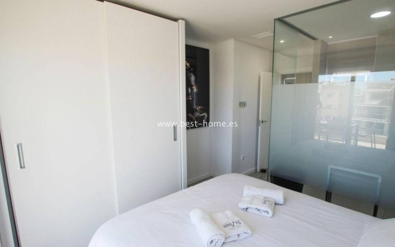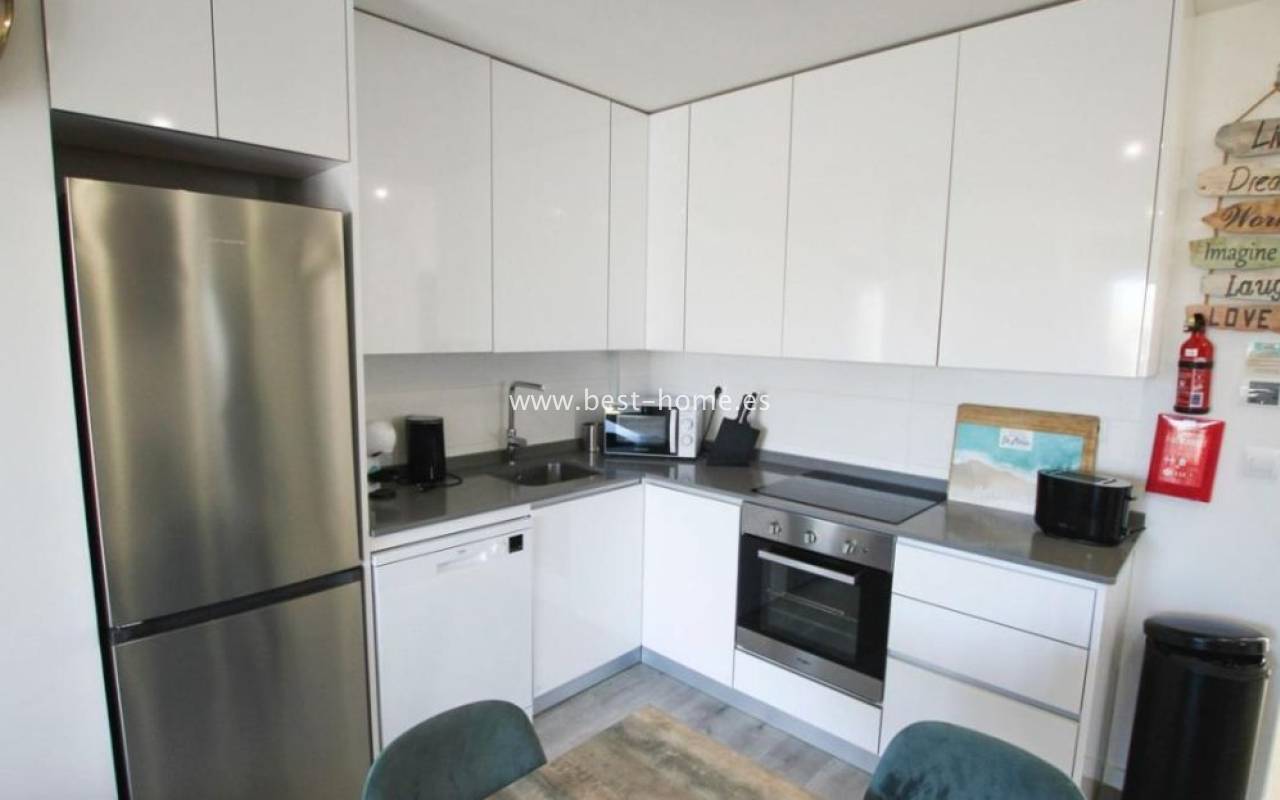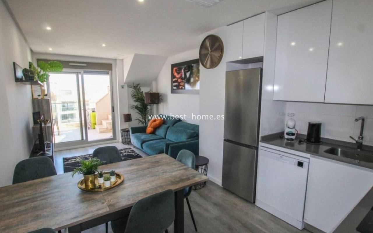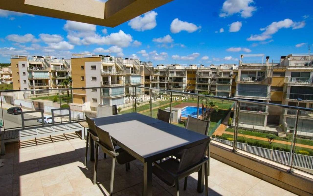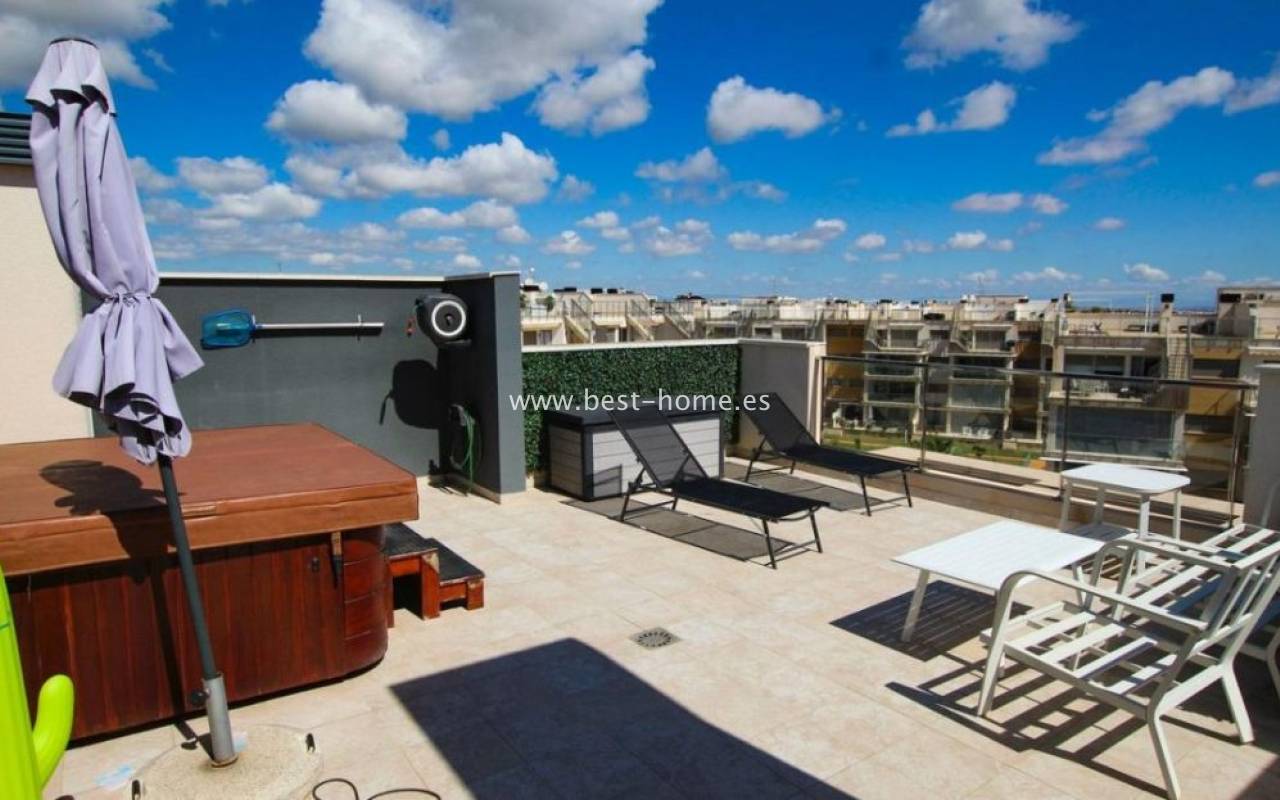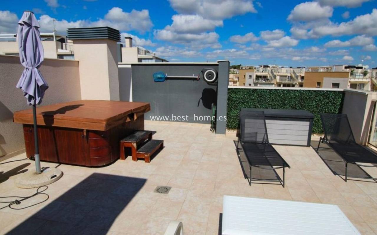 The property features a living room with access to a terrace, an open-plan, fully equipped, modern kitchen, three bedrooms, and two bathrooms. The apartment also boasts a private solarium with a jacuzzi and shower. A parking space and a storage unit are included in the price. The property is sold partially furnished.