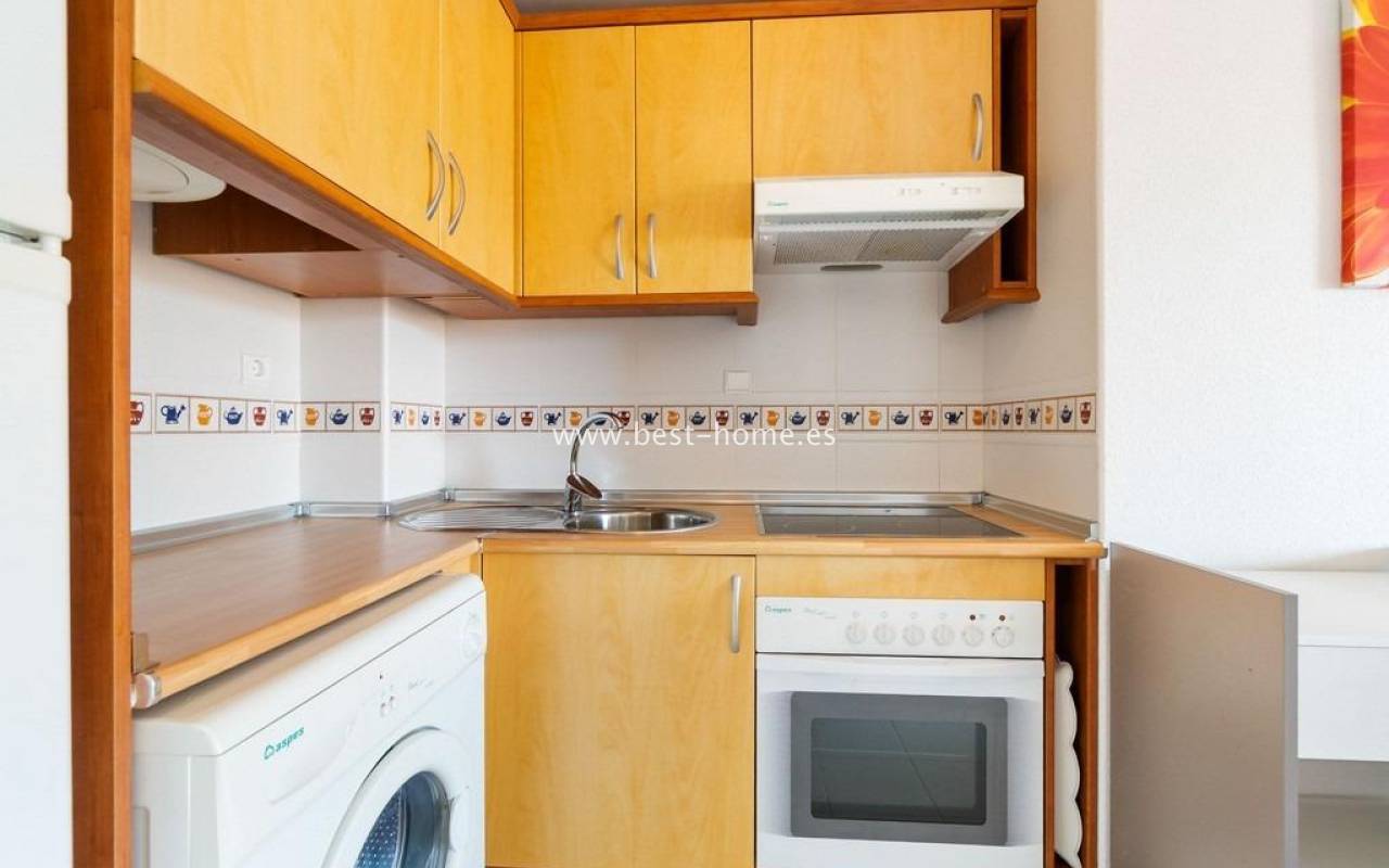 The apartment is located on the first line of the coast, directly across from two fantastic beaches: Playa de la Glea and Playa Aguamarina. The property is on the third floor and consists of a furnished kitchen/living room, one bedroom, and a bathroom. The living room opens onto a terrace with beautiful views of the surrounding area and the sea. The price includes furniture, appliances, and a parking space in the basement of the building. Direct access from the development to the beach is available. This apartment is ideal for holidays or rentals.