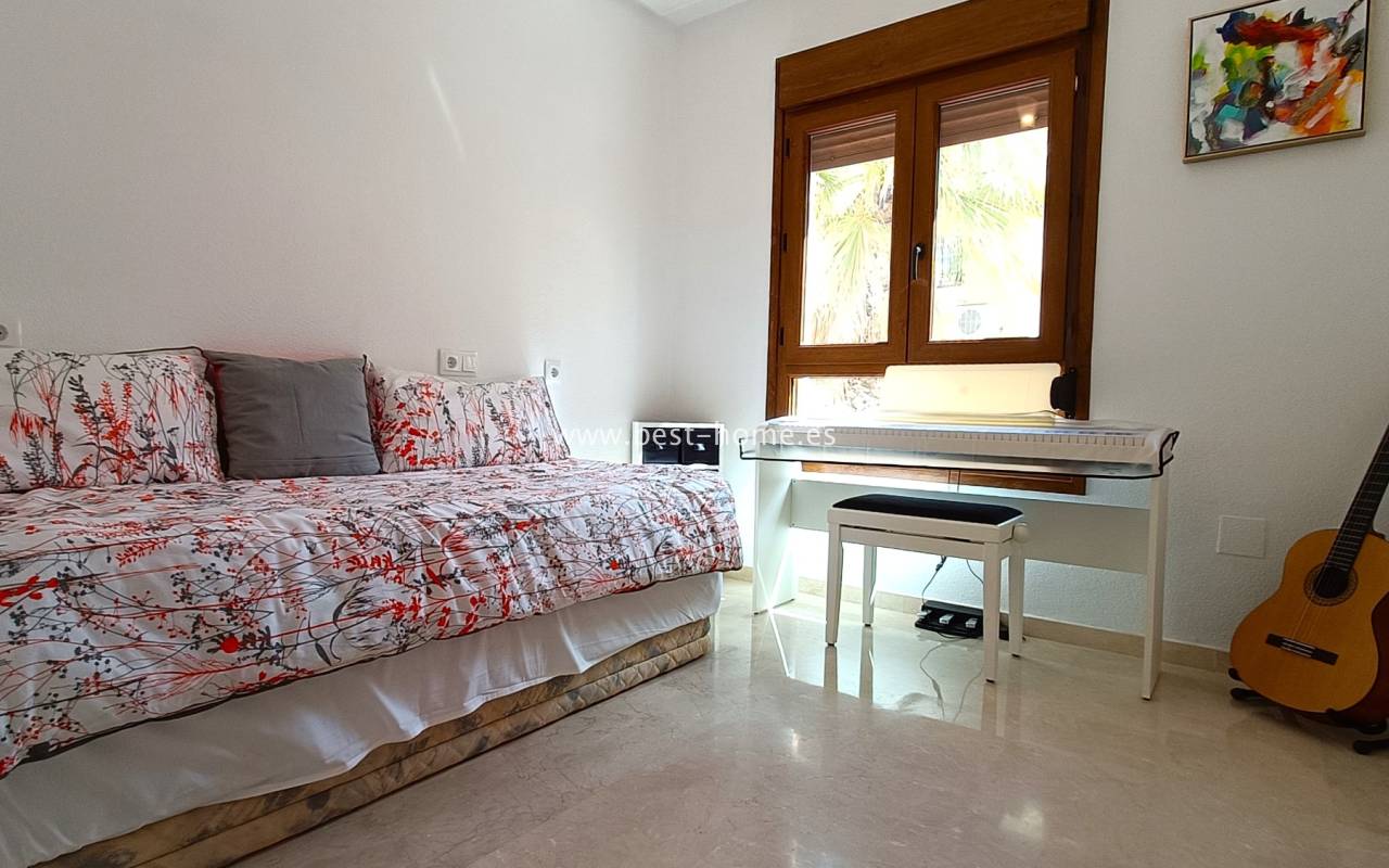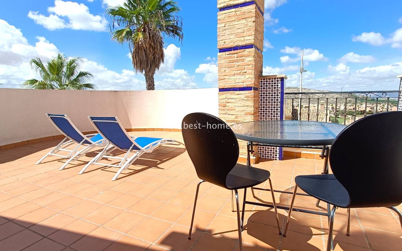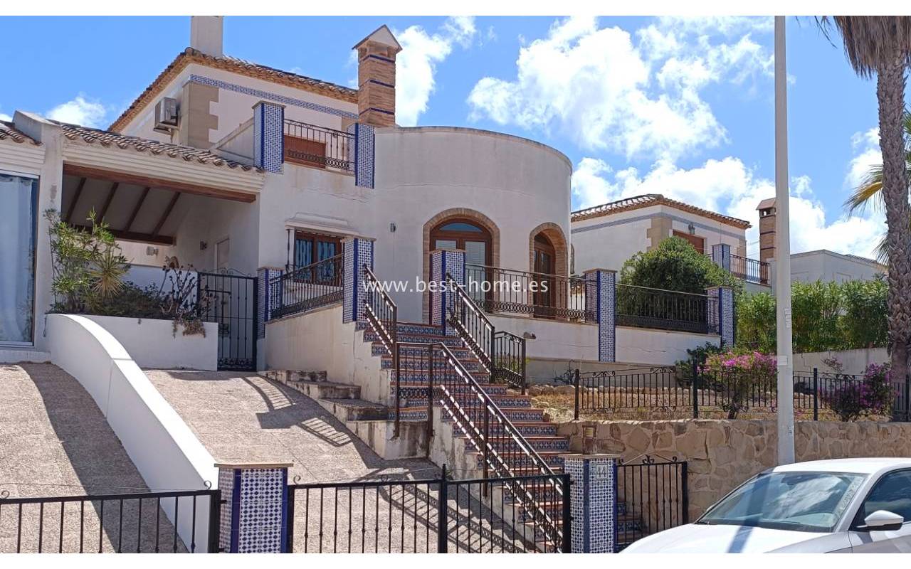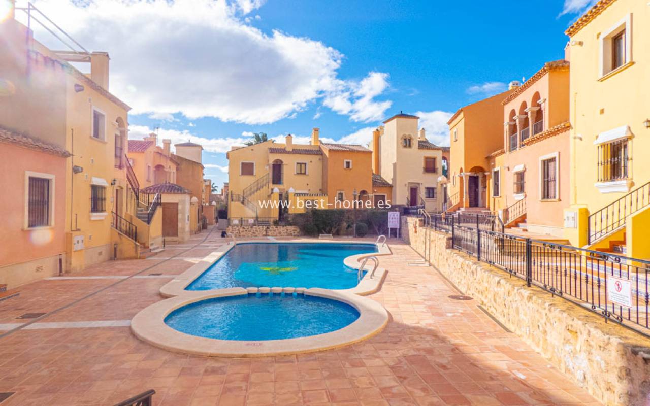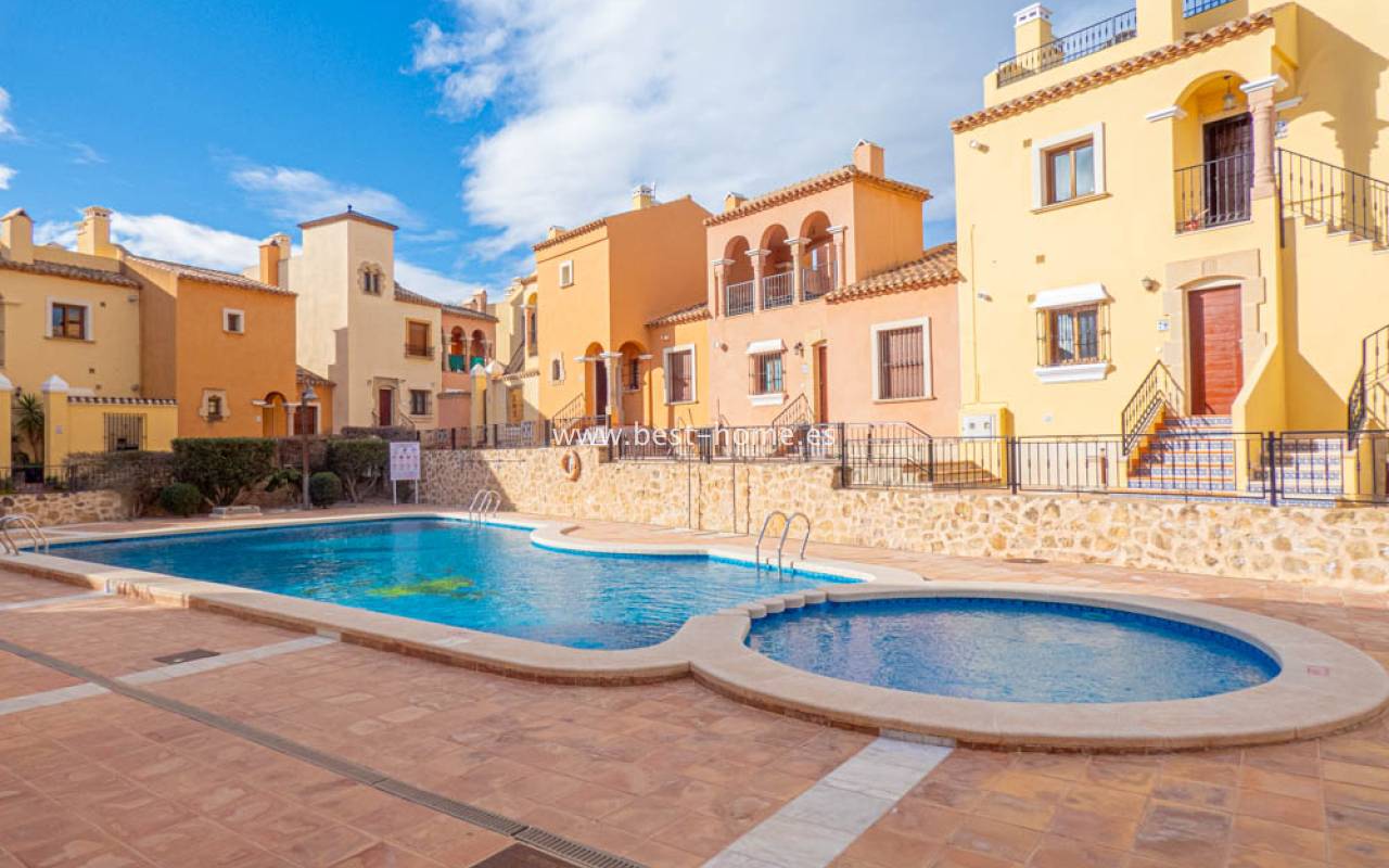We are pleased to offer for sale this charming Ibiza-style villa, located on the popular La Finca Golf Resort in Algorfa. The property offers approximately 115 m² of living space and sits on a plot of around 250 m². It consists of three bedrooms and two bathrooms, is partly furnished, features air conditioning, and has access to a communal pool. The villa also boasts a garden with the potential to add a private pool, a terrace, a patio, and a large west-facing solarium with beautiful sunset views. Ideally situated close to local amenities, this property is perfect as a permanent residence or a holiday home.