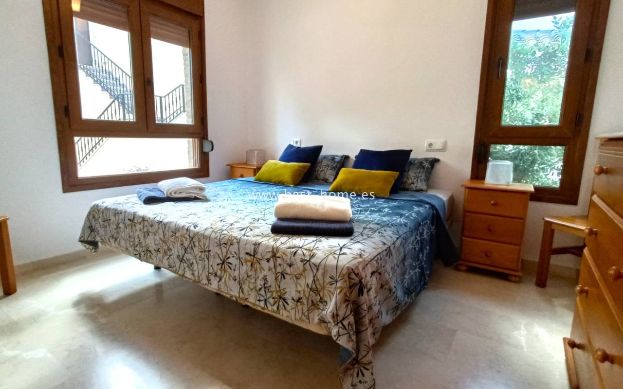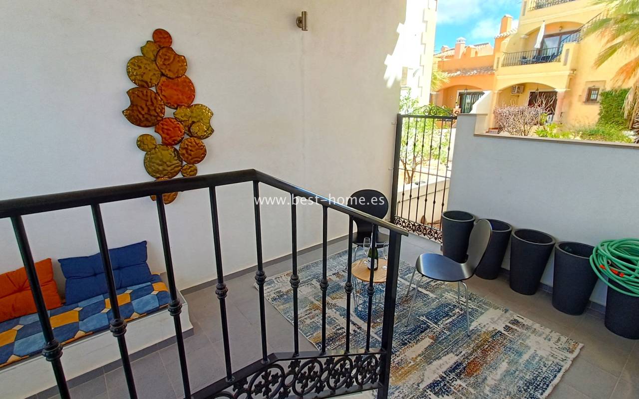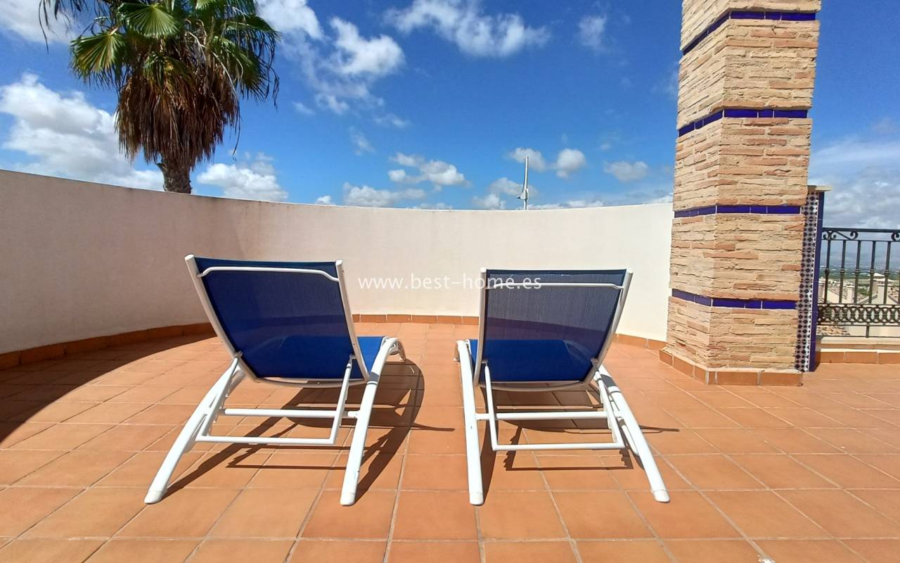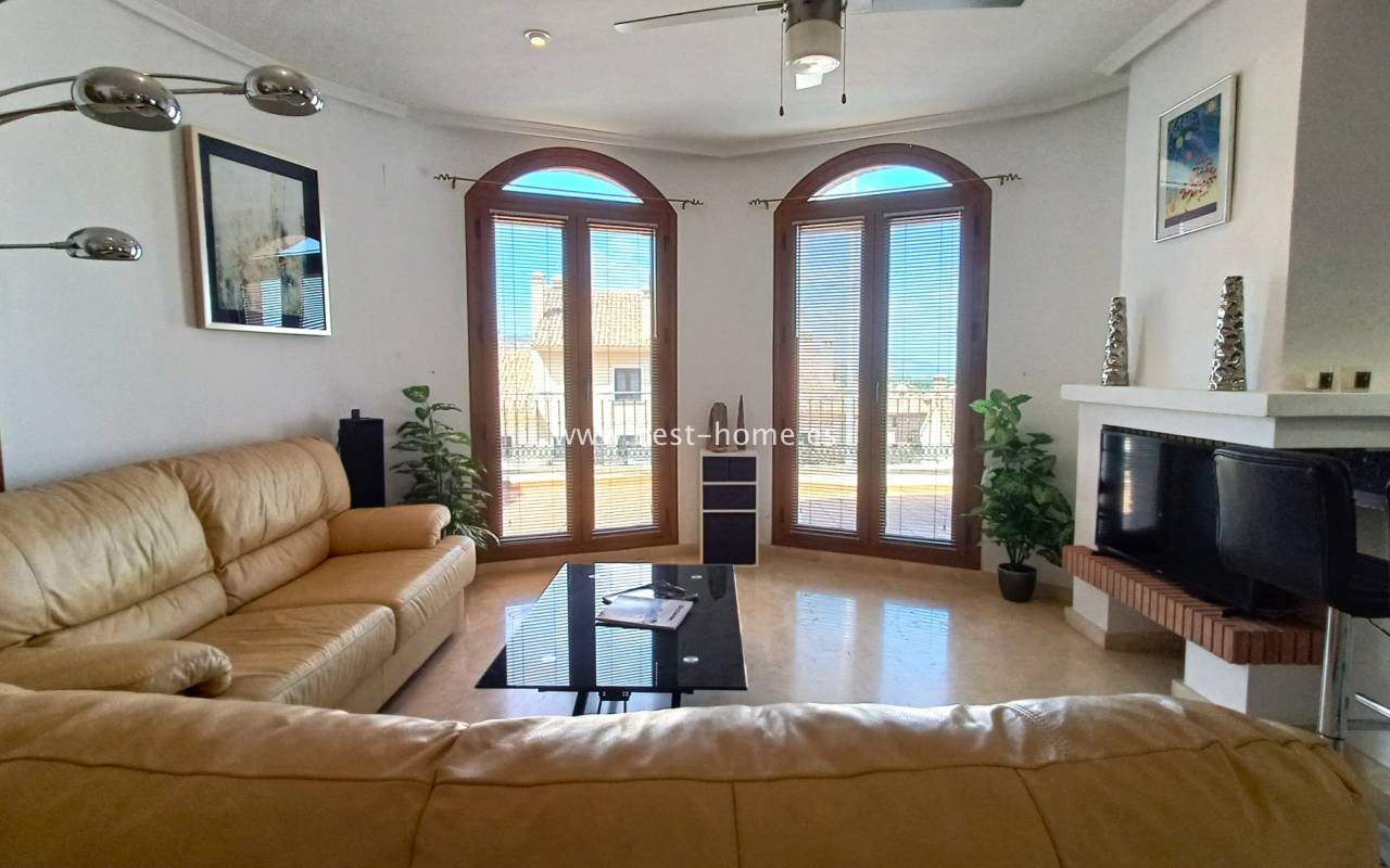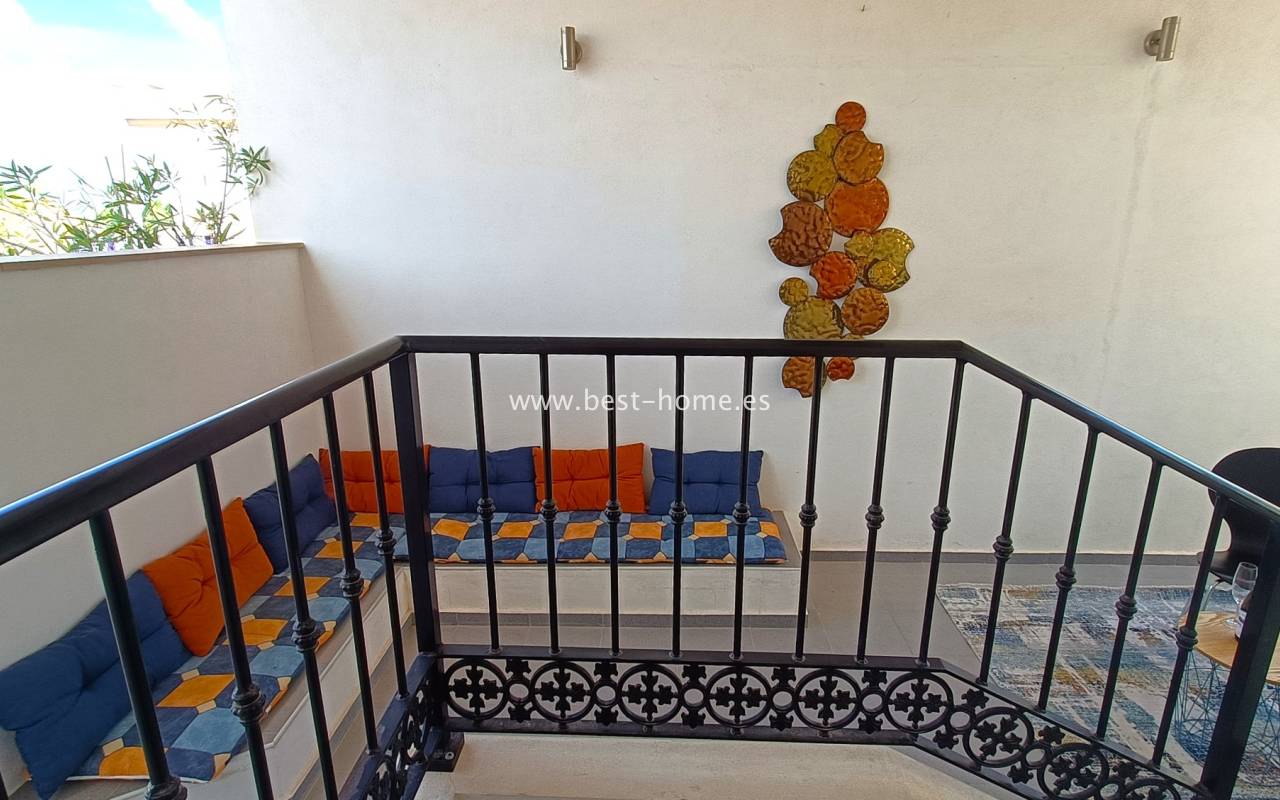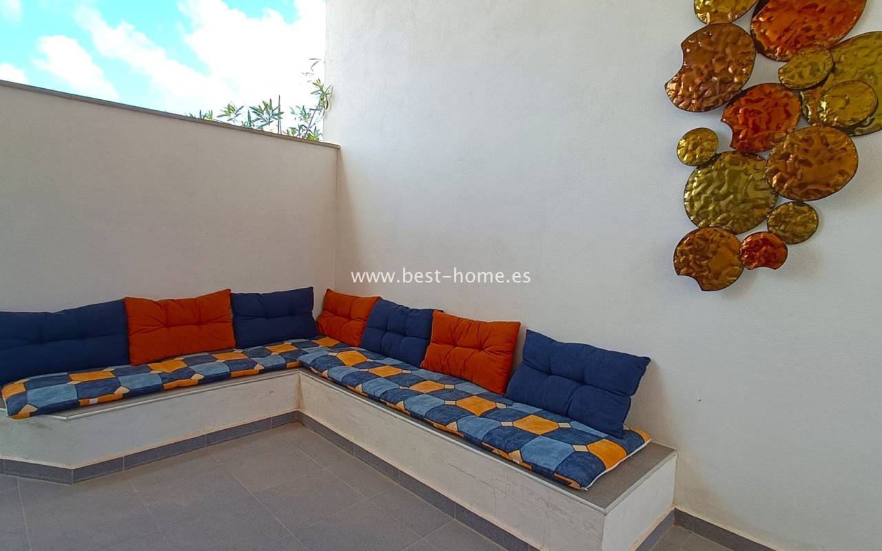 We are pleased to offer for sale this charming Ibiza-style villa, located on the popular La Finca Golf Resort in Algorfa. The property offers approximately 115 m² of living space and sits on a plot of around 250 m². It consists of three bedrooms and two bathrooms, is partly furnished, features air conditioning, and has access to a communal pool. The villa also boasts a garden with the potential to add a private pool, a terrace, a patio, and a large west-facing solarium with beautiful sunset views. Ideally situated close to local amenities, this property is perfect as a permanent residence or a holiday home.