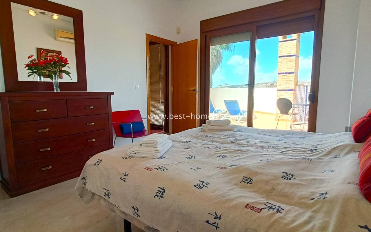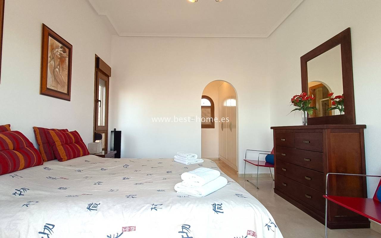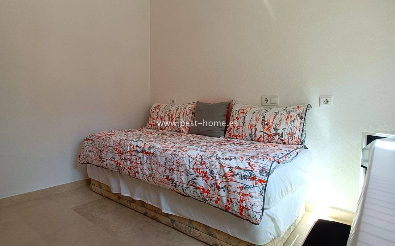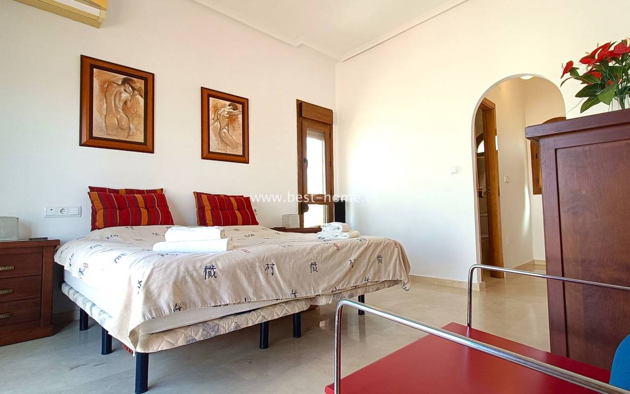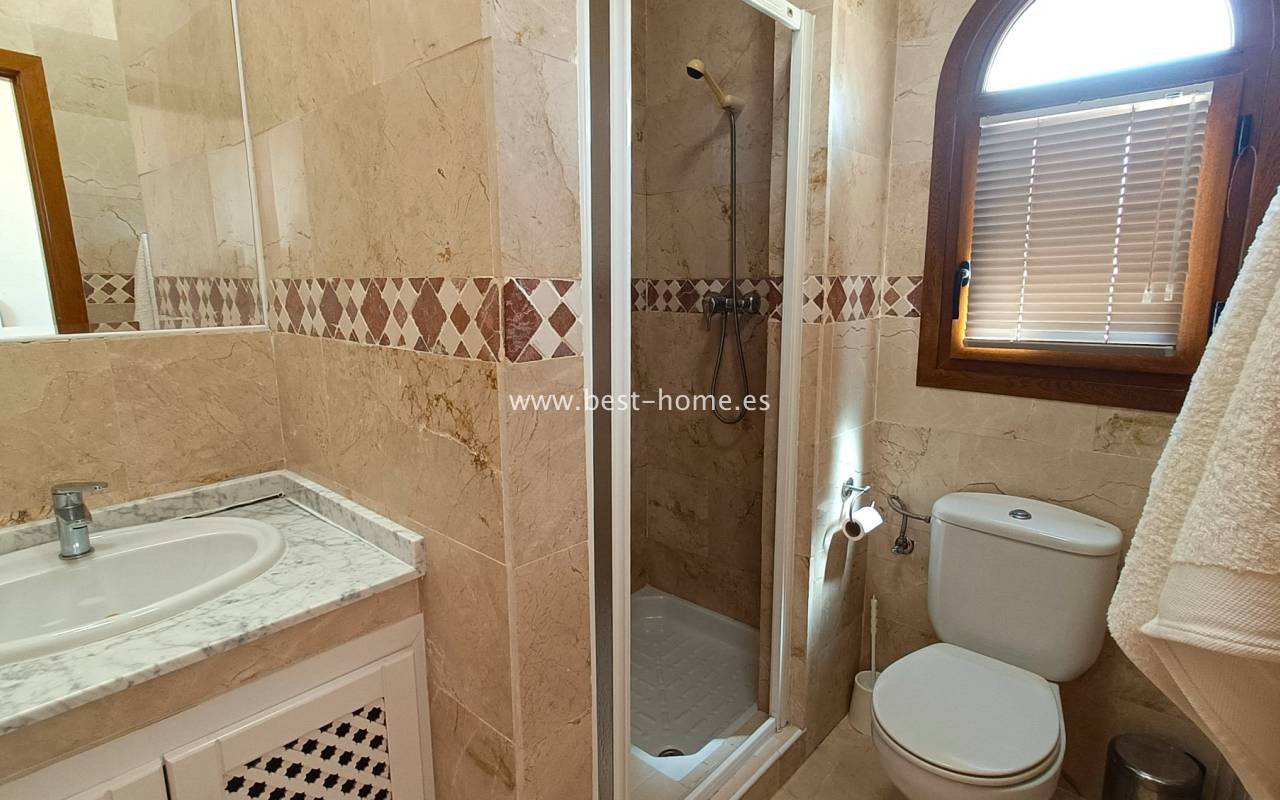 We are pleased to offer for sale this charming Ibiza-style villa, located on the popular La Finca Golf Resort in Algorfa. The property offers approximately 115 m² of living space and sits on a plot of around 250 m². It consists of three bedrooms and two bathrooms, is partly furnished, features air conditioning, and has access to a communal pool. The villa also boasts a garden with the potential to add a private pool, a terrace, a patio, and a large west-facing solarium with beautiful sunset views. Ideally situated close to local amenities, this property is perfect as a permanent residence or a holiday home.