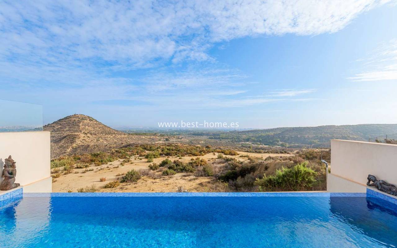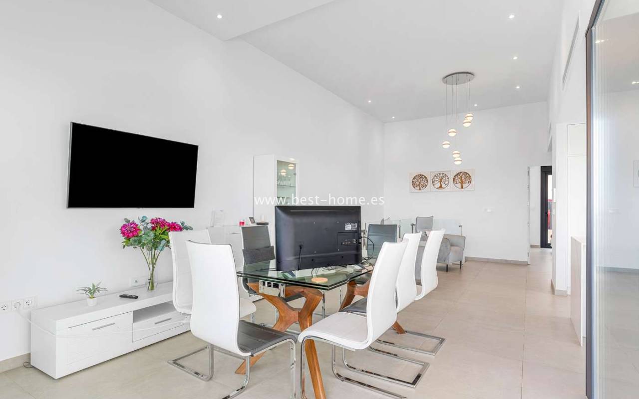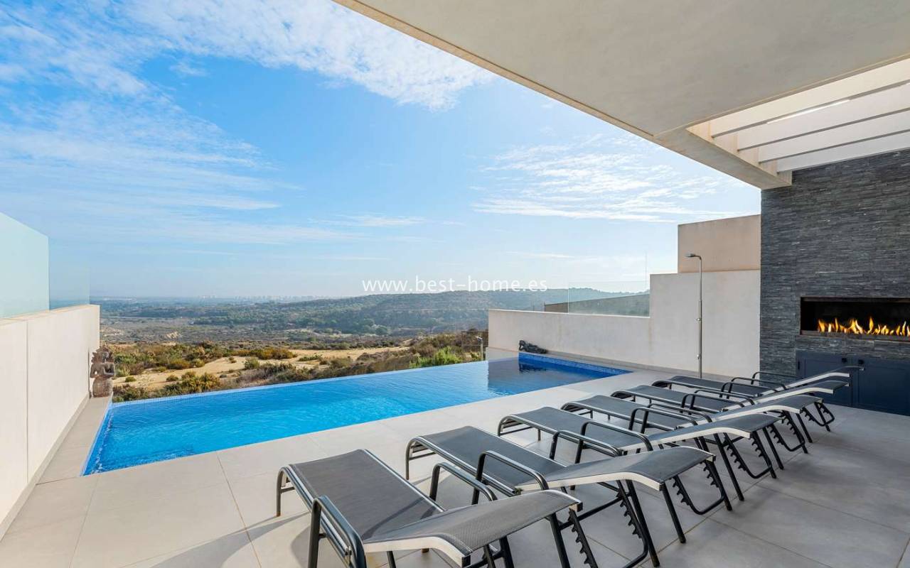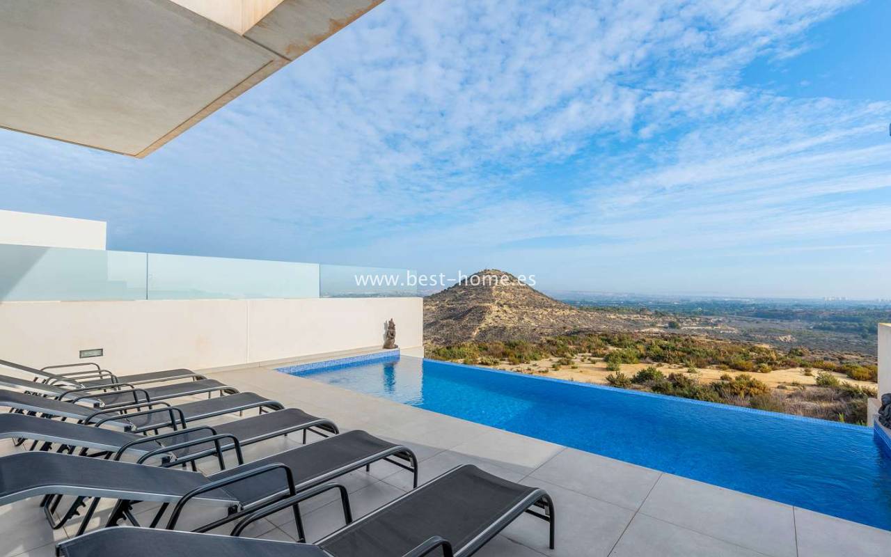 For sale: an exceptional villa in Ciudad Quesada featuring a private infinity pool that blends seamlessly with the surrounding landscape. The property offers a modern layout with three bedrooms and three bathrooms, as well as two spacious living rooms. A huge basement provides endless possibilities and can be converted into a private cinema room, a social lounge, or a recreational space.