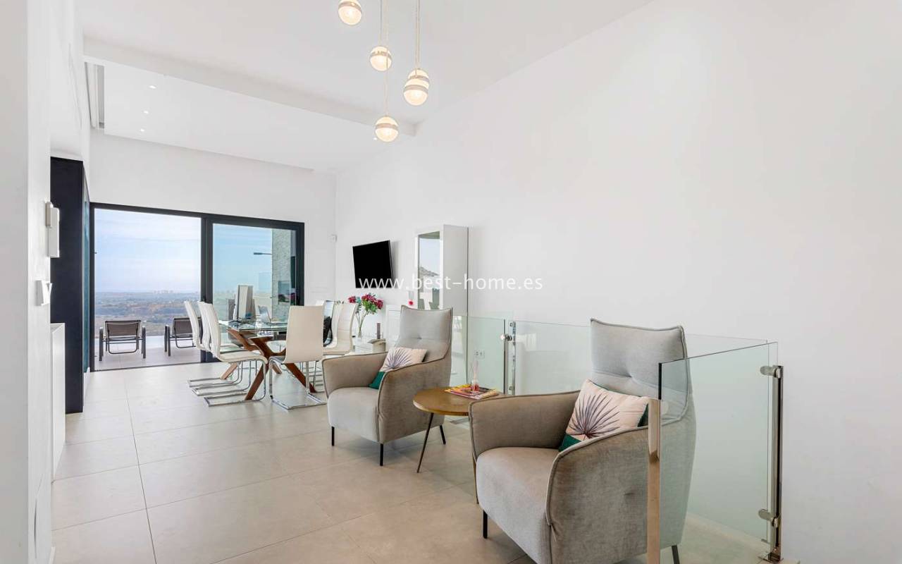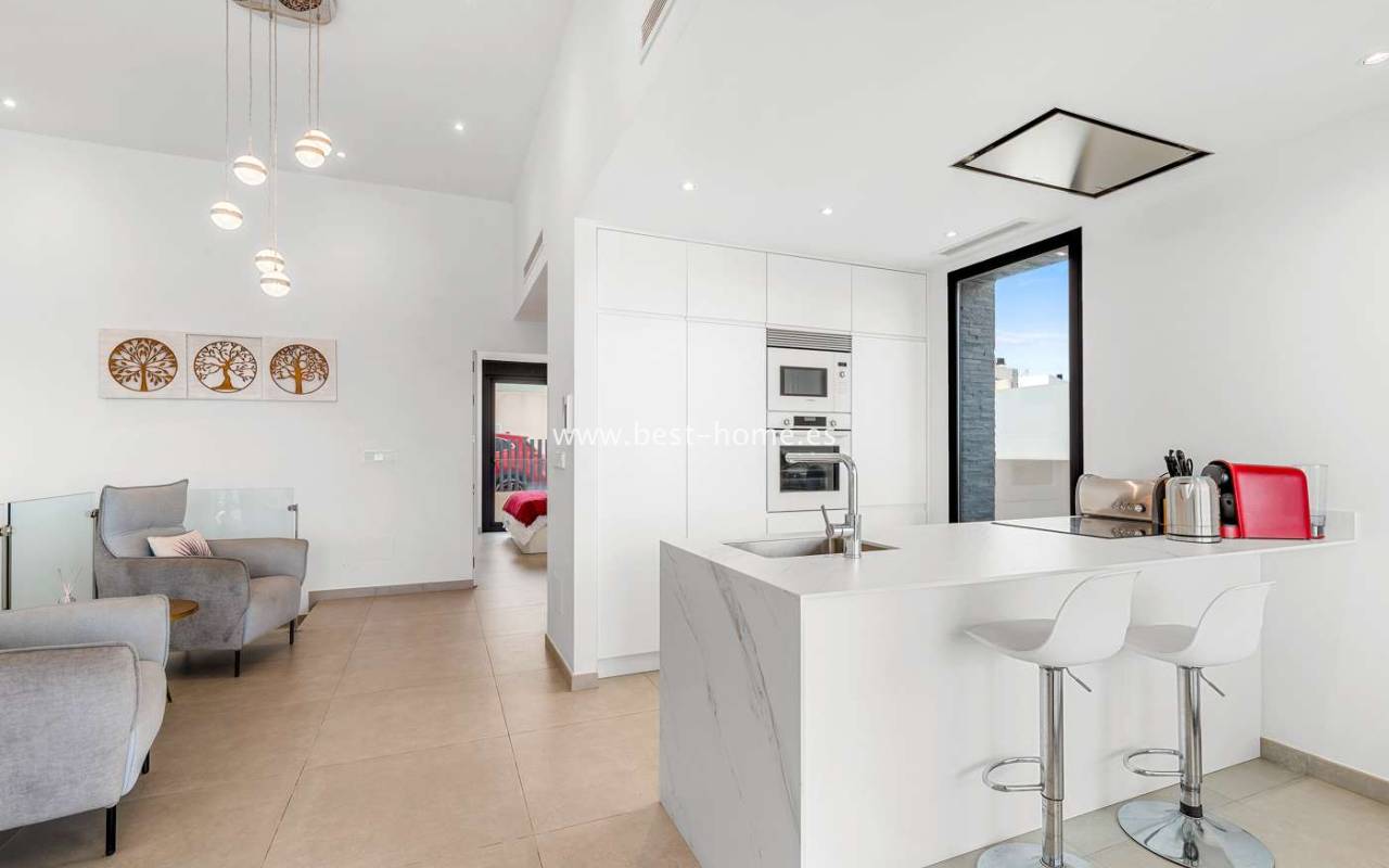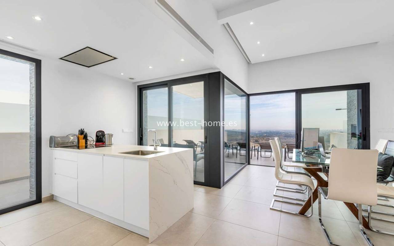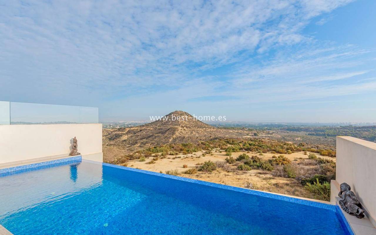 For sale: an exceptional villa in Ciudad Quesada featuring a private infinity pool that blends seamlessly with the surrounding landscape. The property offers a modern layout with three bedrooms and three bathrooms, as well as two spacious living rooms. A huge basement provides endless possibilities and can be converted into a private cinema room, a social lounge, or a recreational space.