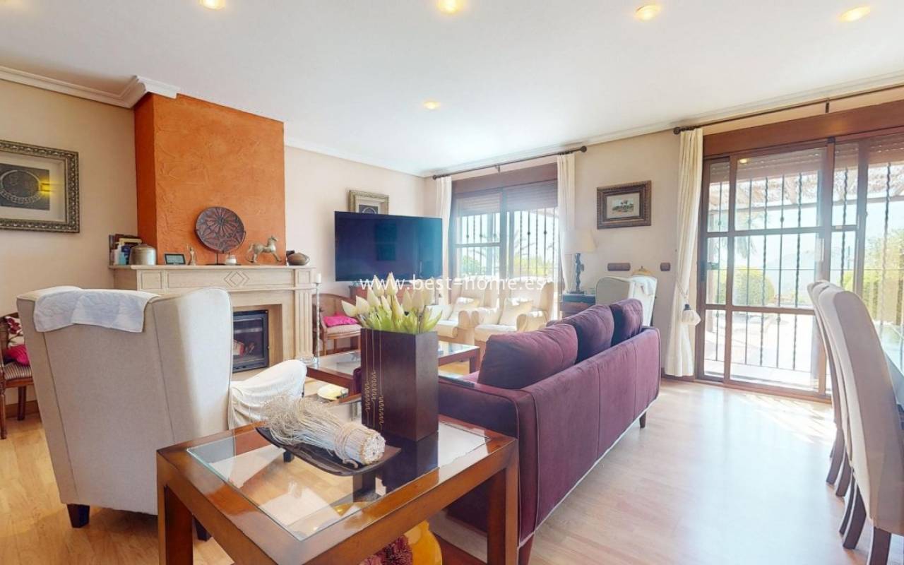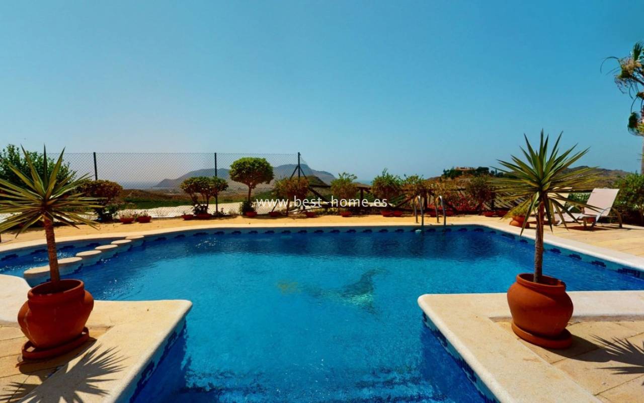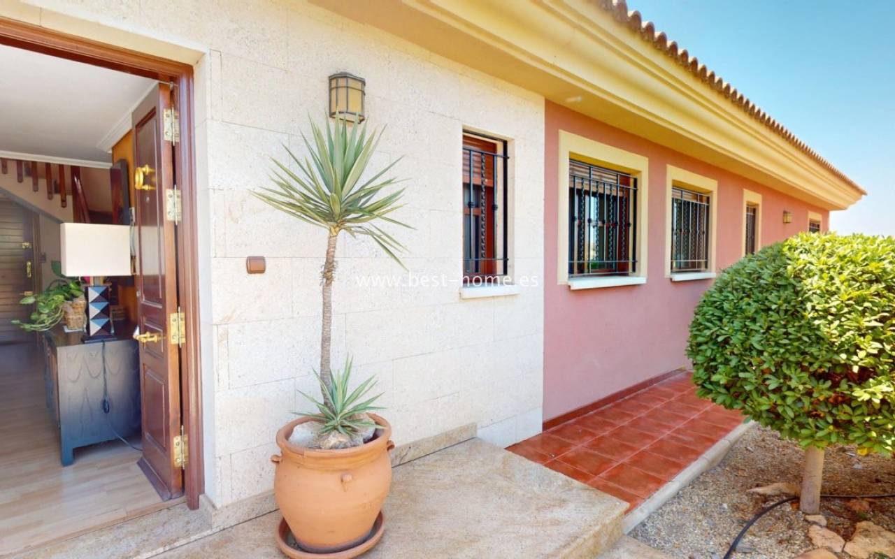 A fantastic Mediterranean-style villa situated on a 34,000 m² plot, boasting a private pool, a garage for three cars, and a garden with a relaxation area, surrounded by mountains and the sea. The house is primarily laid out on the ground floor, featuring an elegant entrance hall, a spacious living room with a fireplace and dining area, a bright, separate kitchen equipped with appliances, four double bedrooms, and four bathrooms. On the first floor, there's an additional bedroom with access to a large terrace offering spectacular sea views. The villa is furnished and equipped with air conditioning, drinking water, and irrigation water. The house also includes a large garage for three cars and a small workshop. Part of the 2,000 m² plot is fenced and features an 8x4 meter private swimming pool, perfect for relaxing and enjoying the sun.