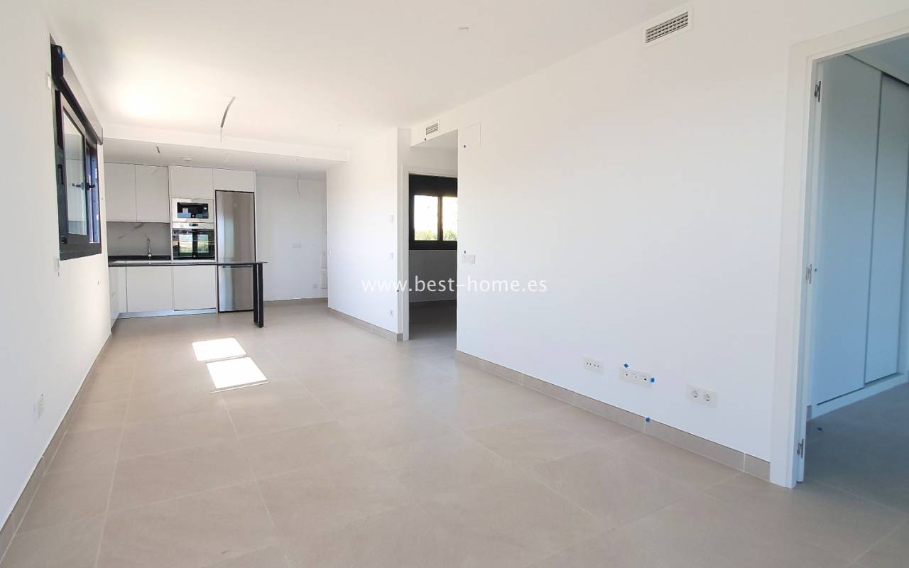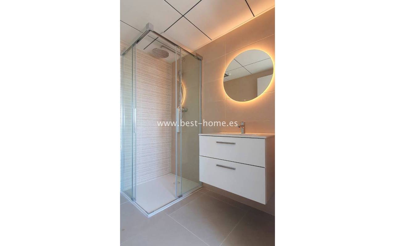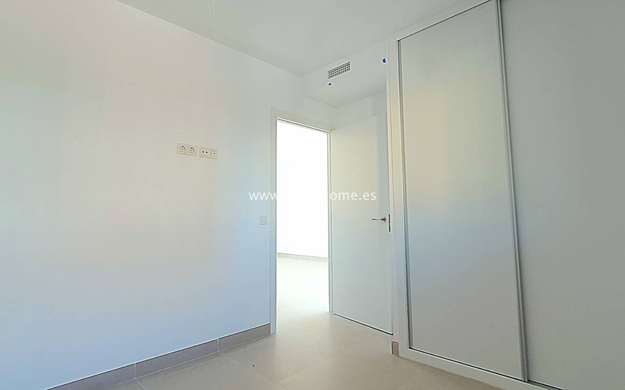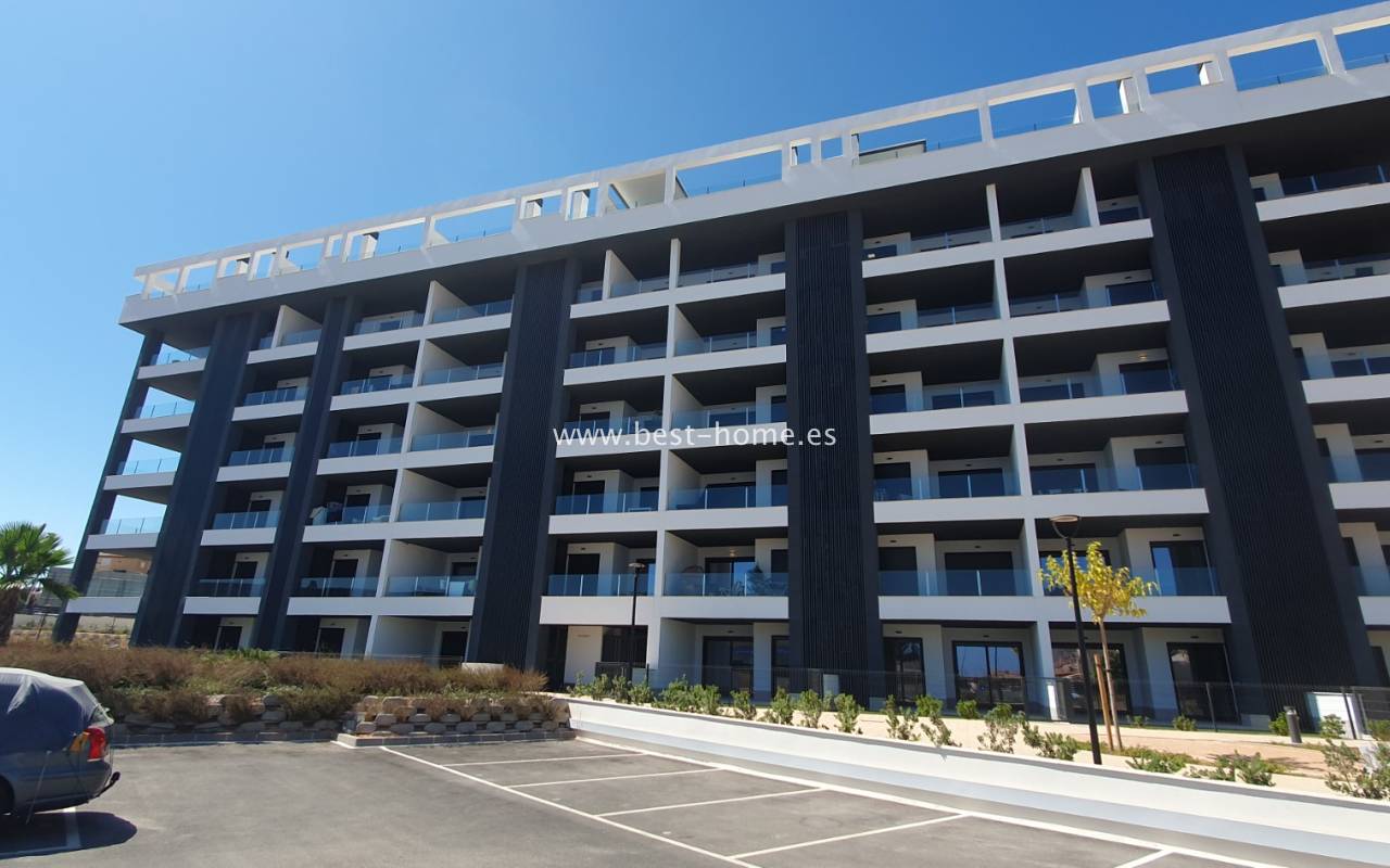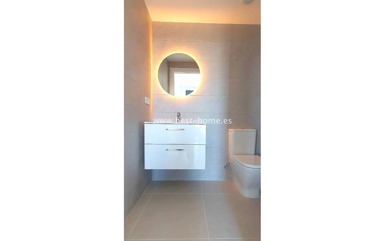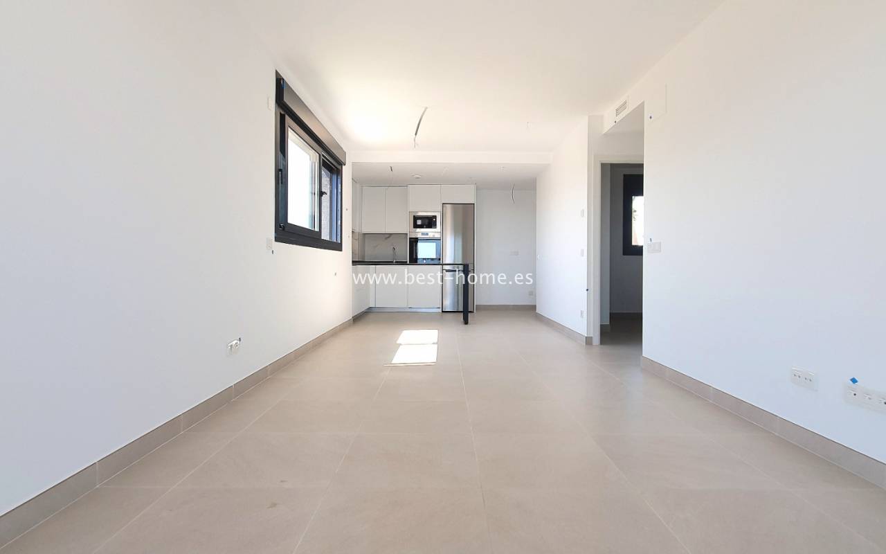 For sale is a modern apartment in a newly developing residential complex in the Aguas Nuevas district of Torrevieja. The property is located on the second floor and consists of two bedrooms and two bathrooms, one of which is directly connected to the master bedroom. The master bedroom has access to a spacious 20 m² terrace, while the living room also opens onto the terrace, offering a view of the sea.