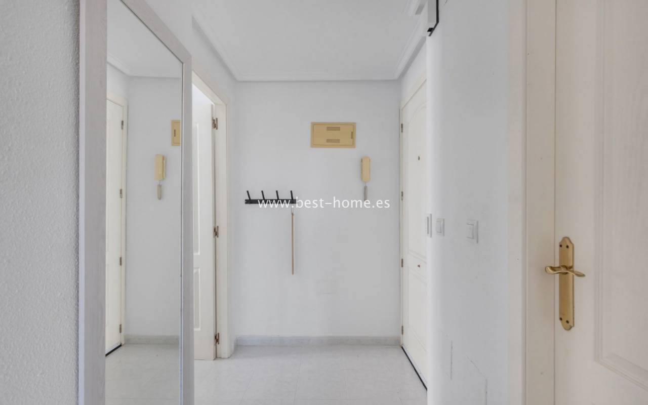 This fantastic third-floor apartment boasts a community pool and picturesque views of the lagoon and Mediterranean Sea. It features a beautifully designed living room with access to a terrace overlooking the sea, an American-style kitchen equipped with appliances, two double bedrooms with built-in wardrobes, and a bathroom. The apartment is furnished and equipped with air conditioning. The complex boasts a swimming pool for residents. Right next to the complex is the charming Aromatico Park, filled with trees, flowers, and palm trees.