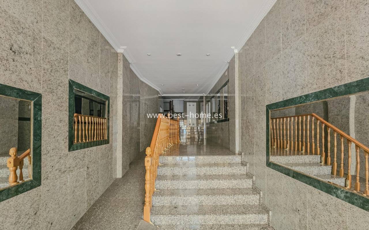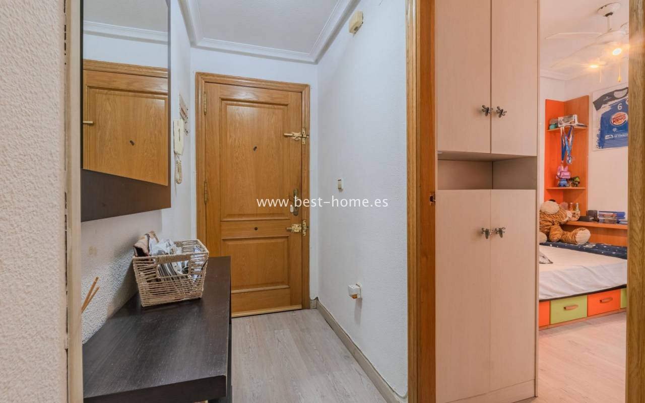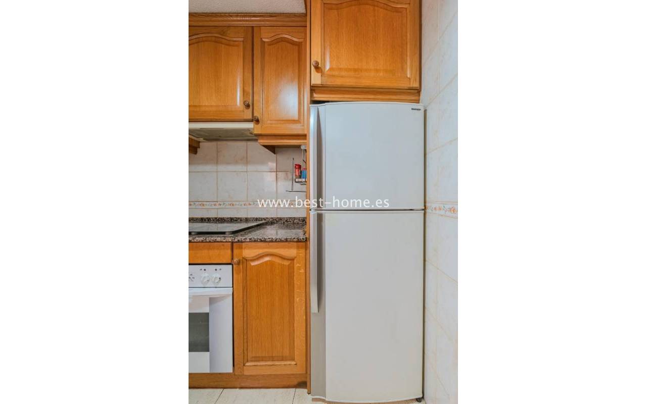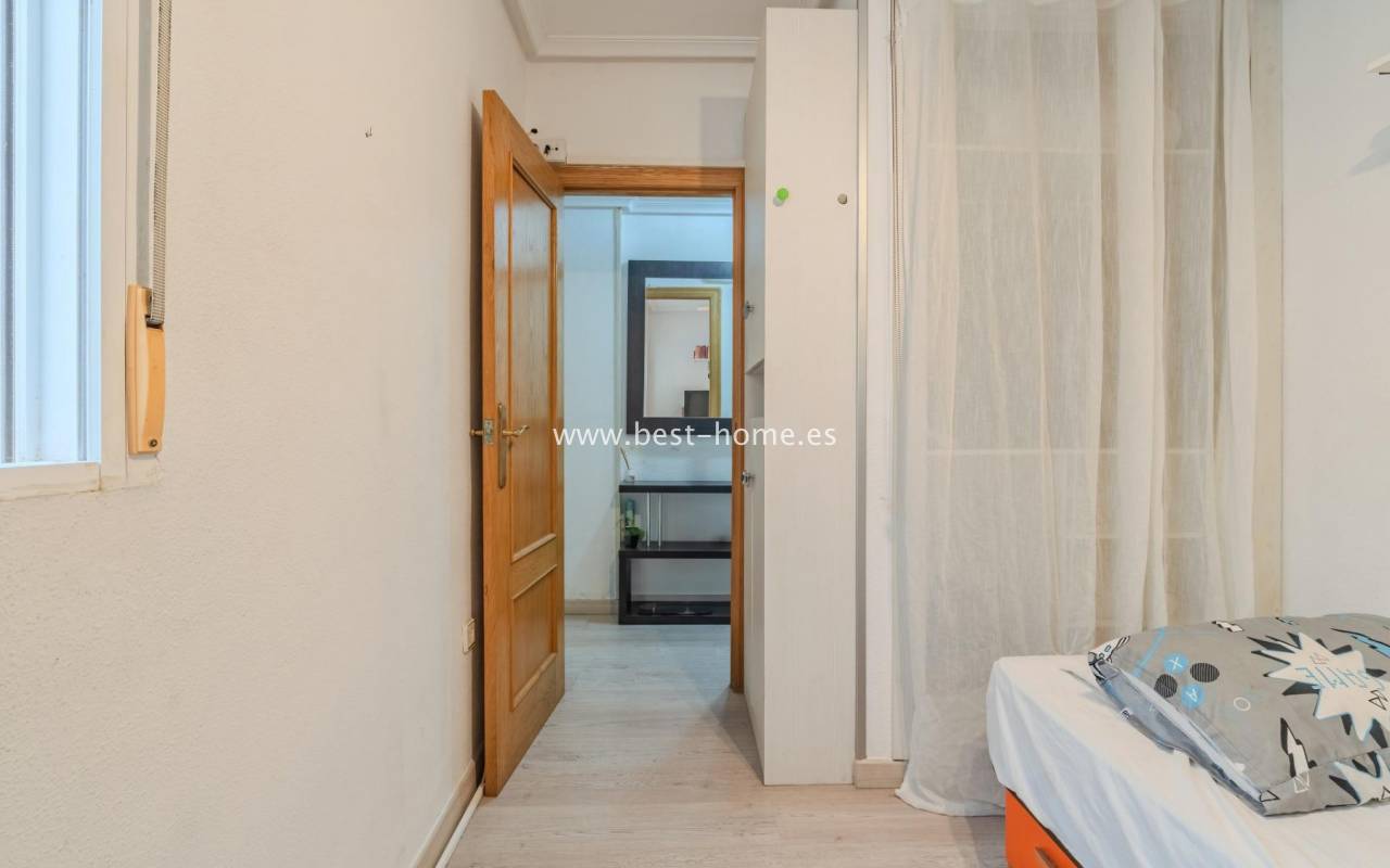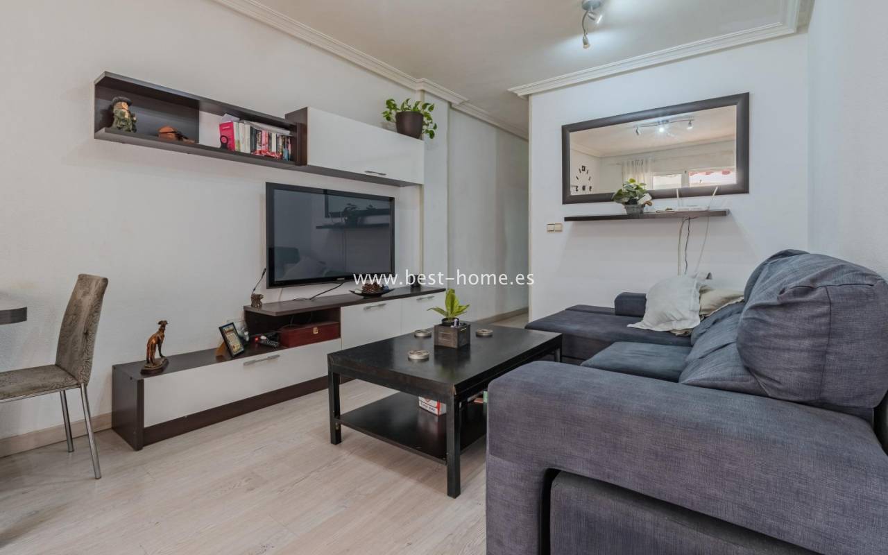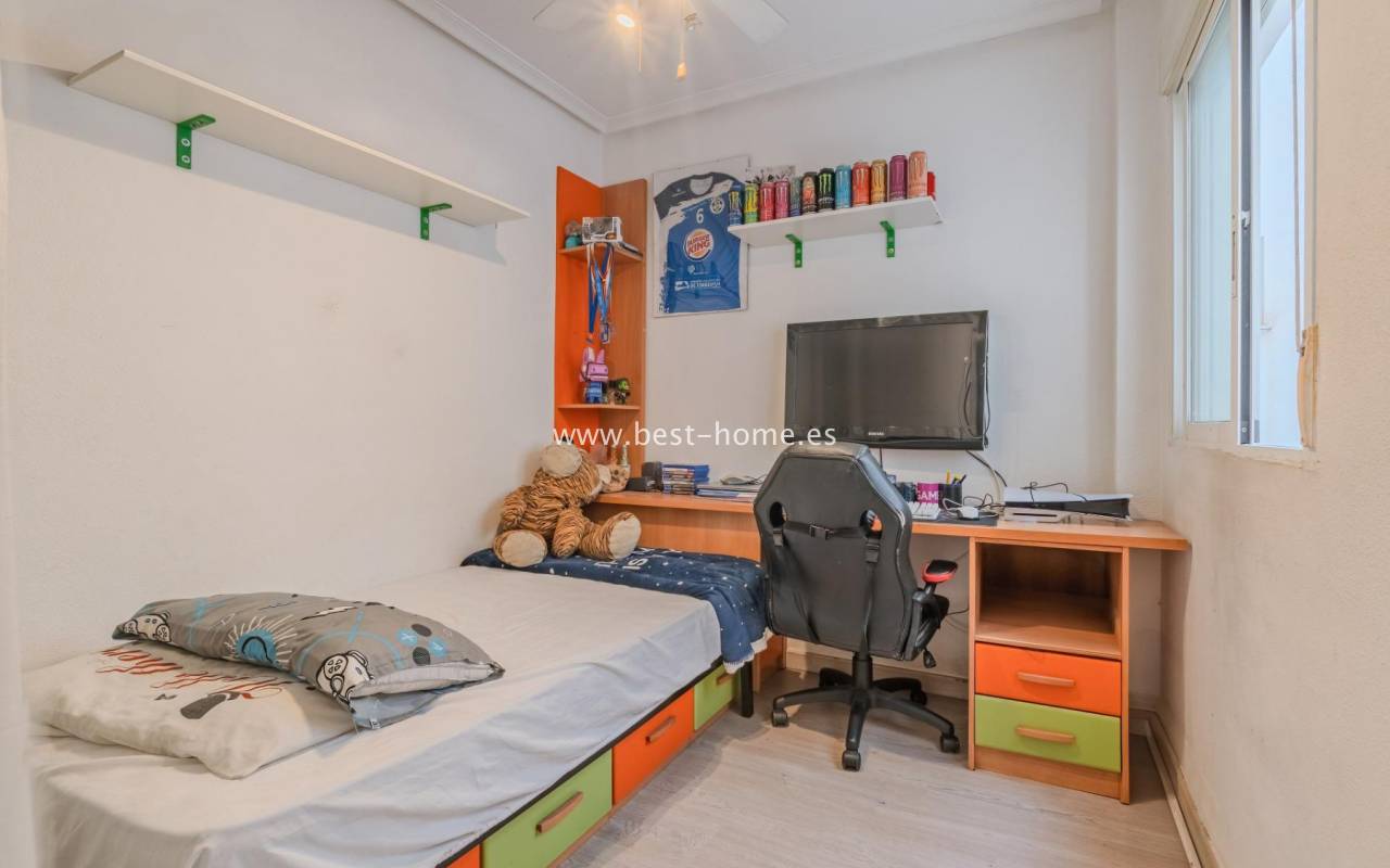 Sunny, affordable third-floor apartment near Naciones Park in Torrevieja. It features a bright, spacious living room with access to a south-facing terrace and built-in wardrobe, two double bedrooms, a kitchen equipped with appliances, and a bathroom. The apartment is furnished and equipped with appliances. Nearby are the picturesque Naciones Park, a shopping mall, and a wide selection of shops, bars, and restaurants.