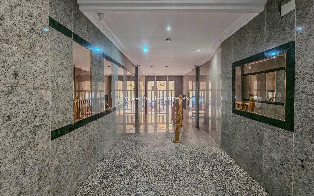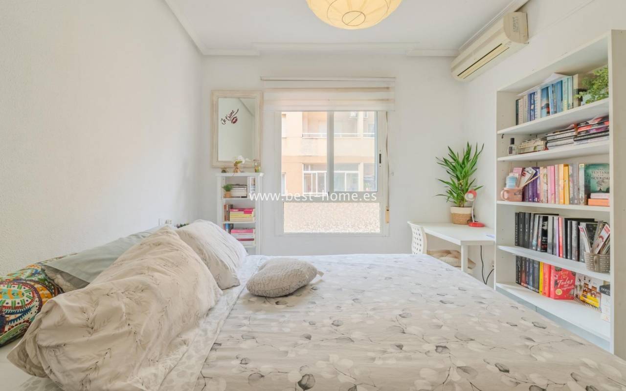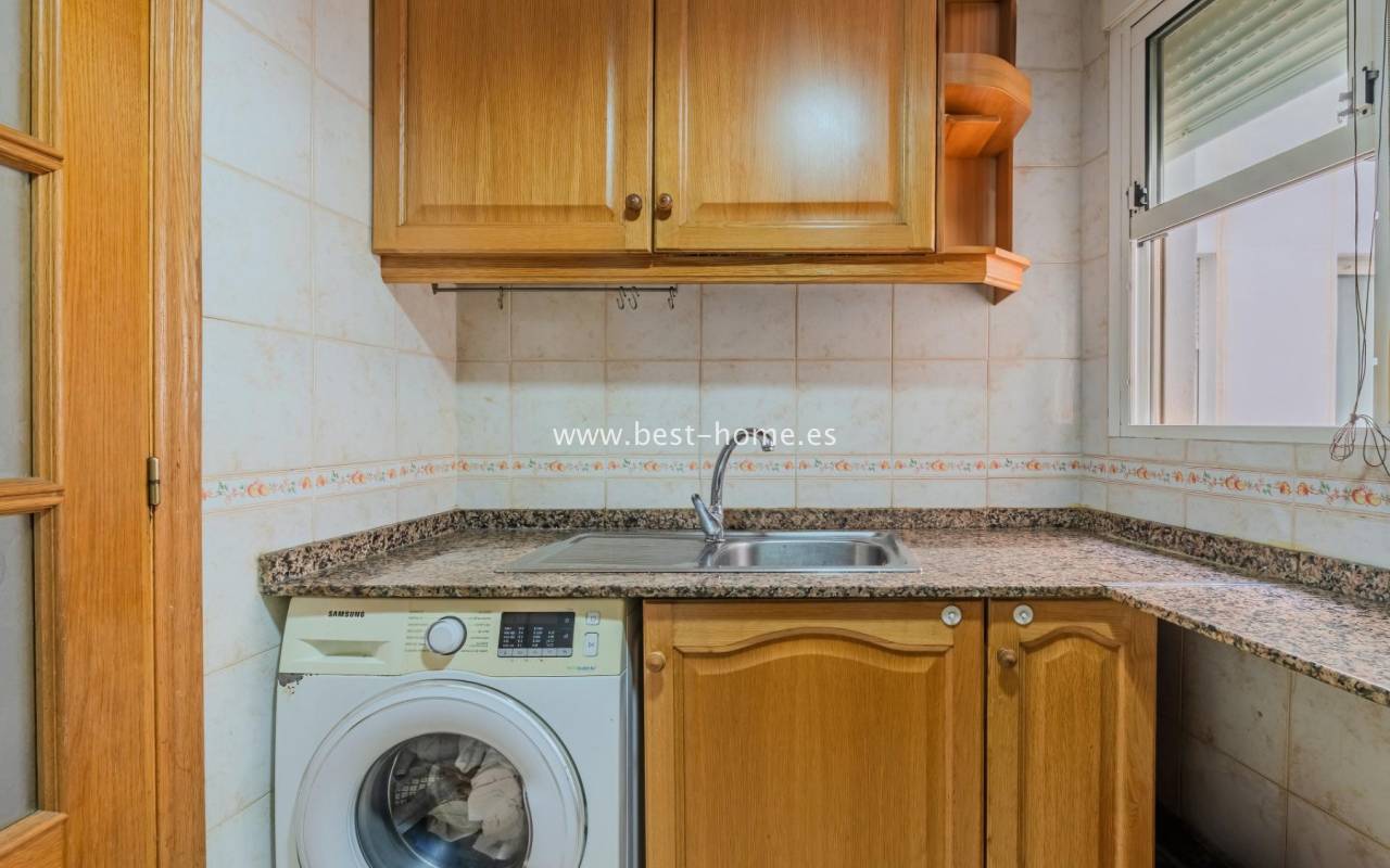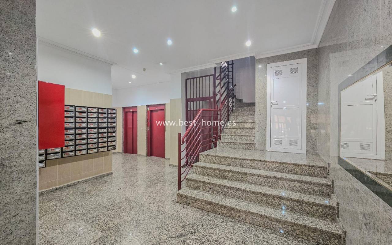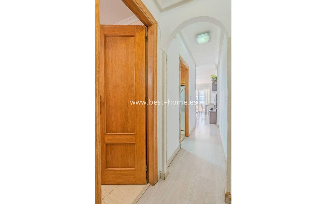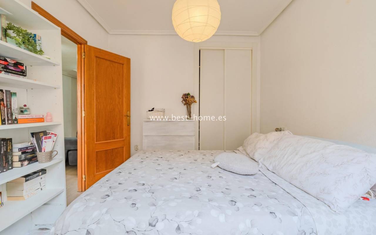 Sunny, affordable third-floor apartment near Naciones Park in Torrevieja. It features a bright, spacious living room with access to a south-facing terrace and built-in wardrobe, two double bedrooms, a kitchen equipped with appliances, and a bathroom. The apartment is furnished and equipped with appliances. Nearby are the picturesque Naciones Park, a shopping mall, and a wide selection of shops, bars, and restaurants.