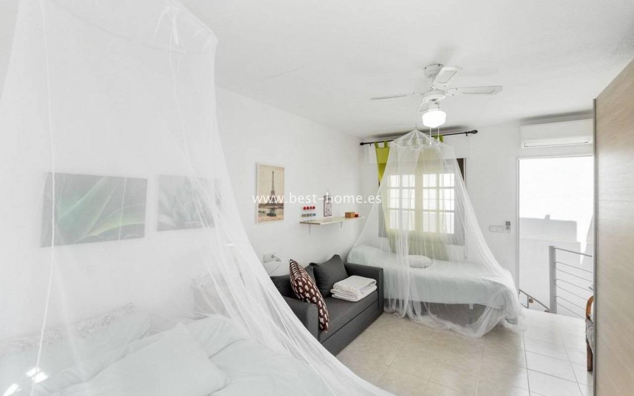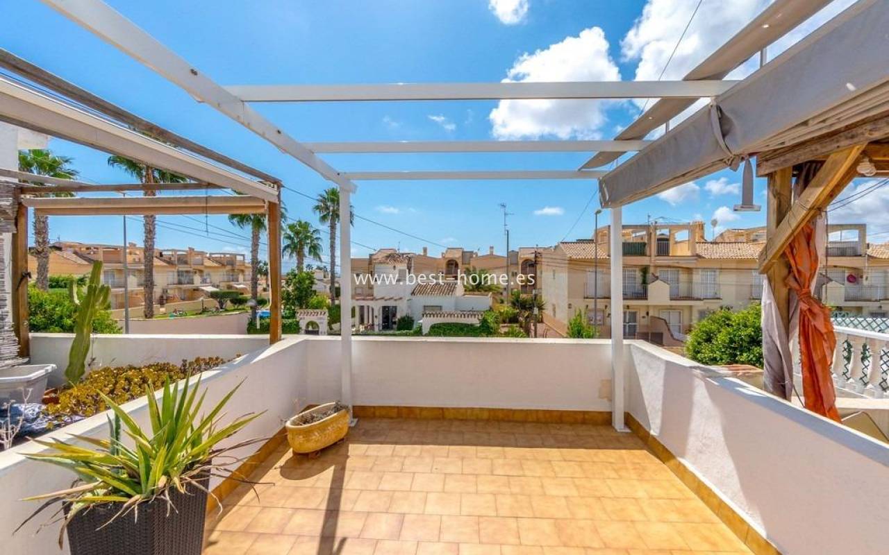 A sunny semi-detached house with a garden, solarium, and community pool in the picturesque La Florida development. Through the 10m² garden, you'll enter the bright living room, which opens onto a Mediterranean-style kitchen equipped with appliances, a bathroom, and the first master bedroom with a wardrobe and access to the hallway, which features stairs leading to the upper level, where you'll find the second bedroom and a large, sunny 20m² terrace. The apartment is furnished and air-conditioned. The development also includes a swimming pool for residents, a barbecue area, tennis courts, and a parking space.