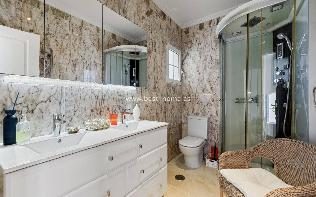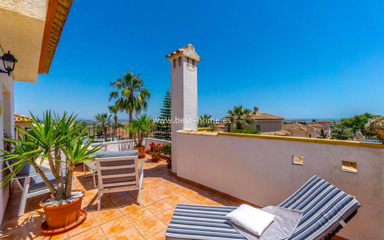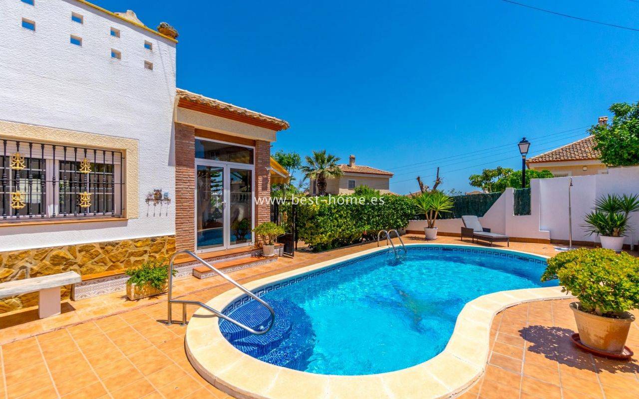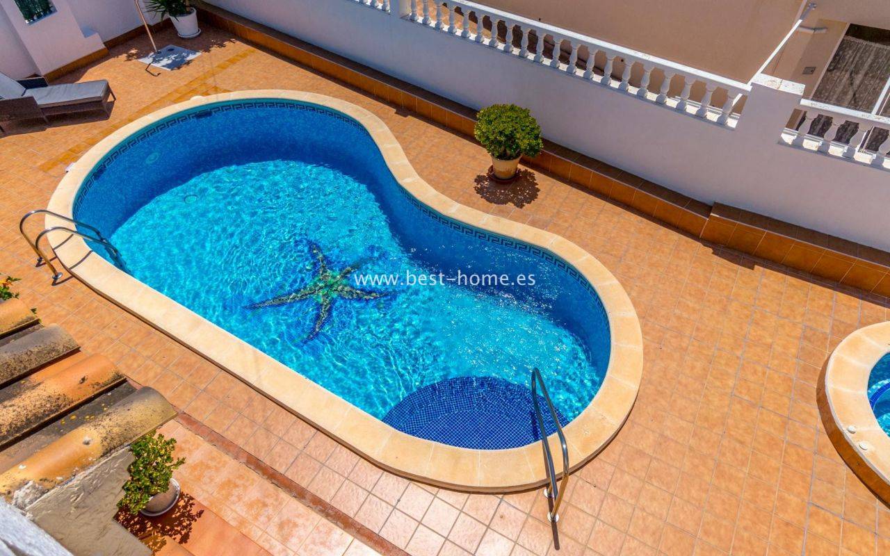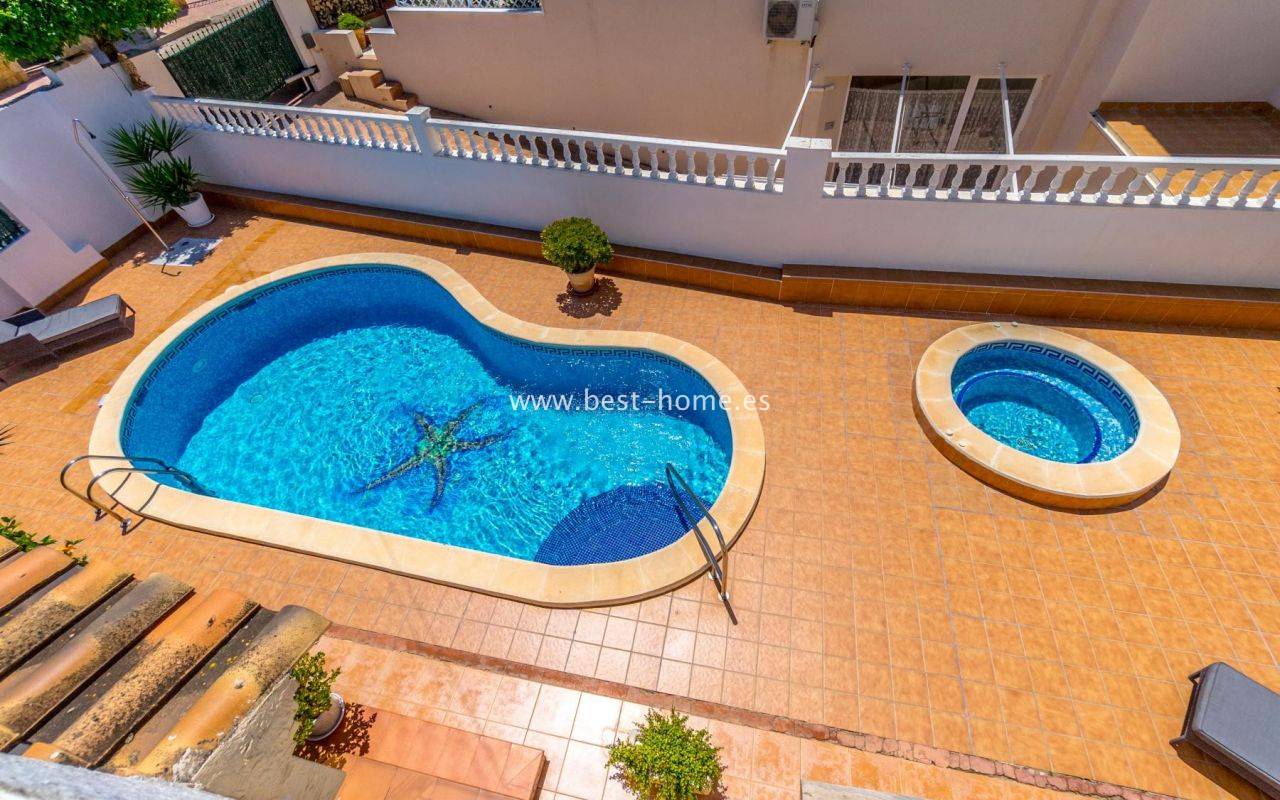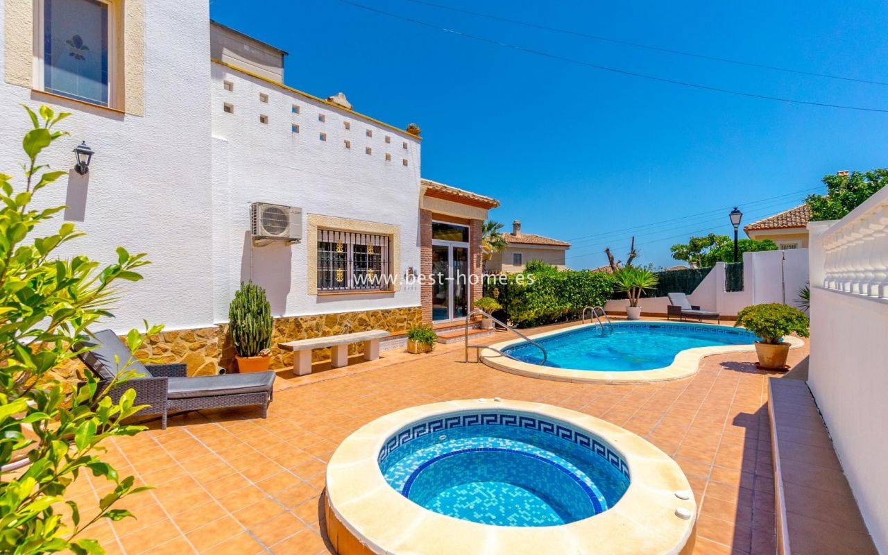 On the outskirts of San Miguel de Salinas, in a quiet residential area of detached houses, there is a home with a beautiful sea view, located just 10 km from the sandy beaches of Orihuela Costa. The property features a swimming pool and a jacuzzi, providing ideal conditions for relaxation. The house consists of four bedrooms, two bathrooms and an additional WC, and also includes a garage as well as a driveway, ensuring everyday comfort and convenience.