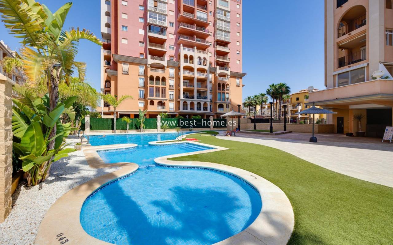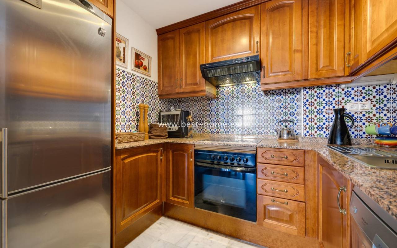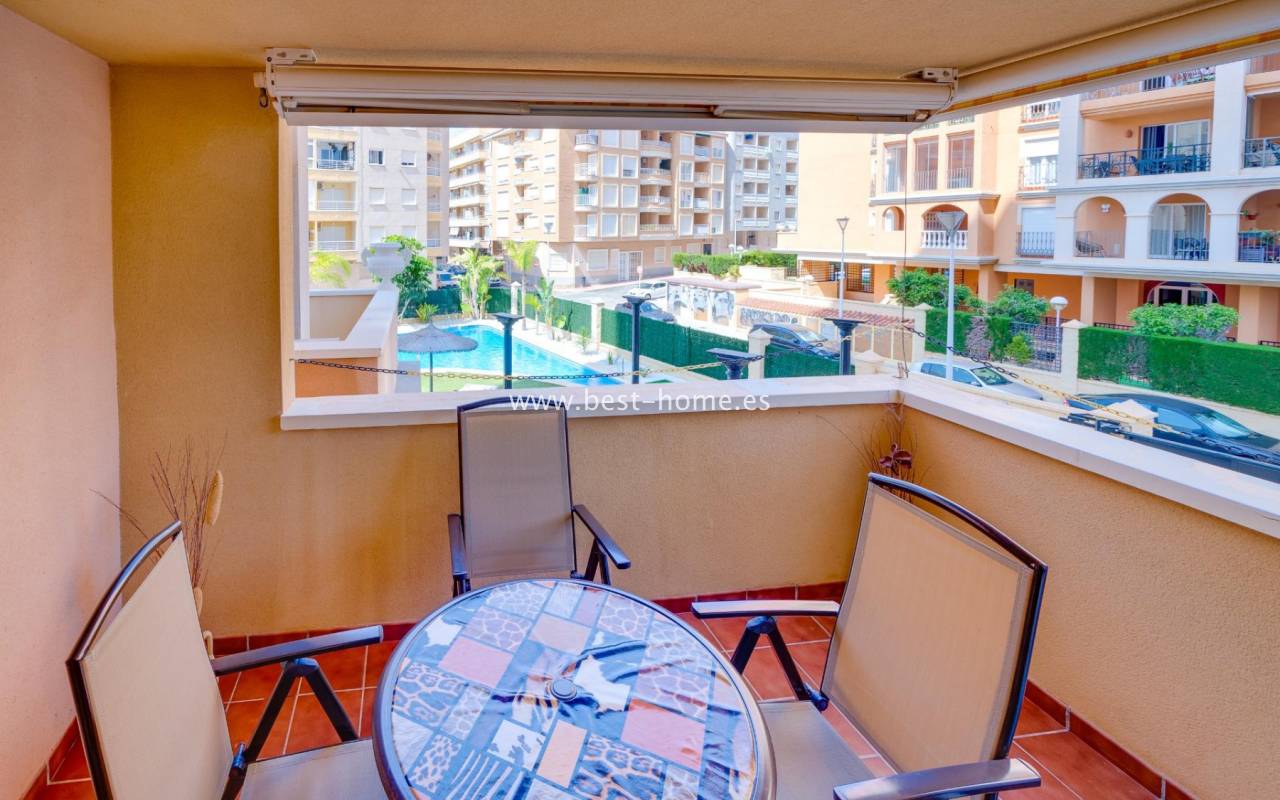 This Mediterranean-style apartment is located in a picturesque development with a community pool, close to Los Locos beach in Torrevieja. It features a living room with access to a terrace overlooking the sea, a Mediterranean-style kitchen equipped with appliances, two double bedrooms, and a bathroom. The apartment is equipped with central air conditioning and is sold furnished. A cellar/utility room located in the garage is also included in the price. The development also features a swimming pool for residents. This property is ideal for holiday rentals or long-term rentals. Nearby, you'll find numerous restaurants, cafes, pastry shops, and a promenade along the seafront.