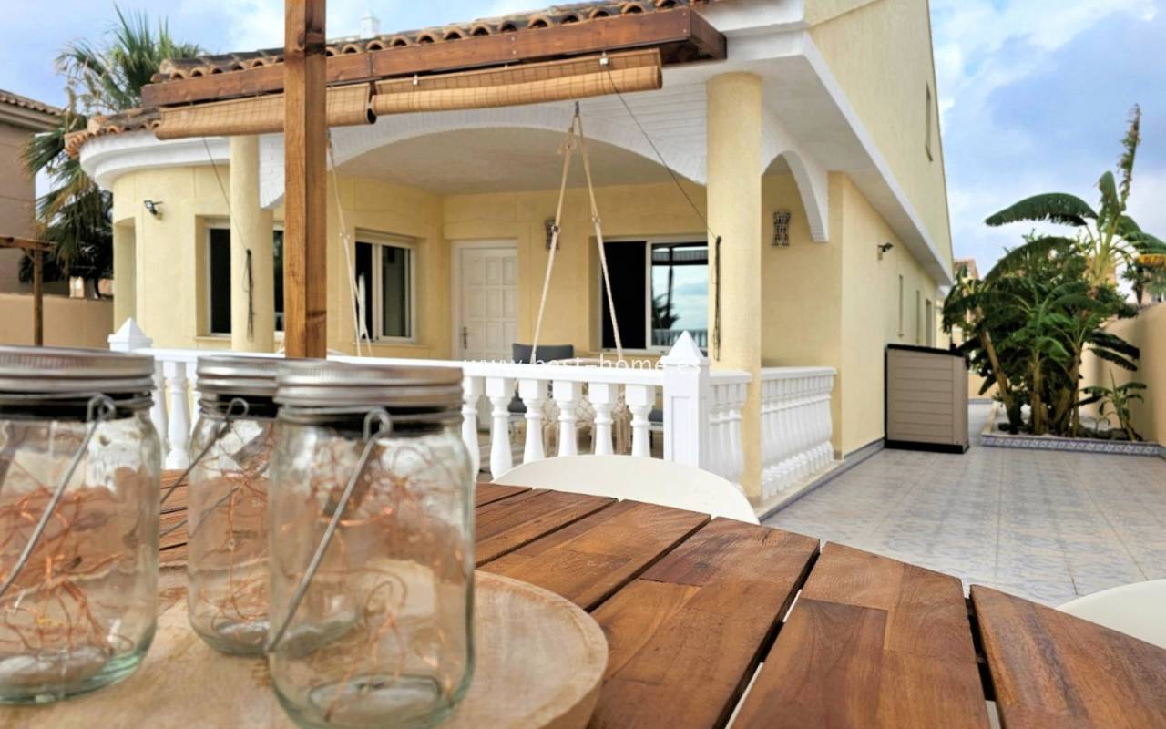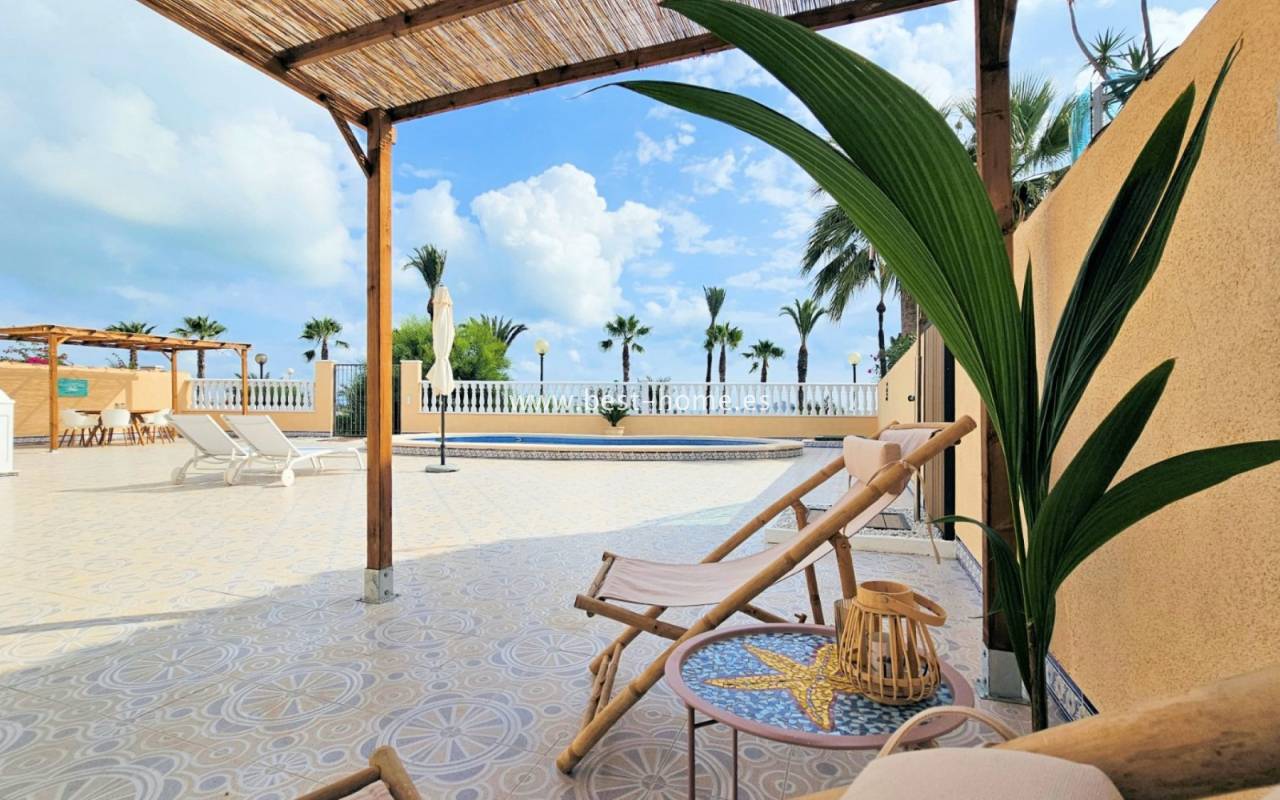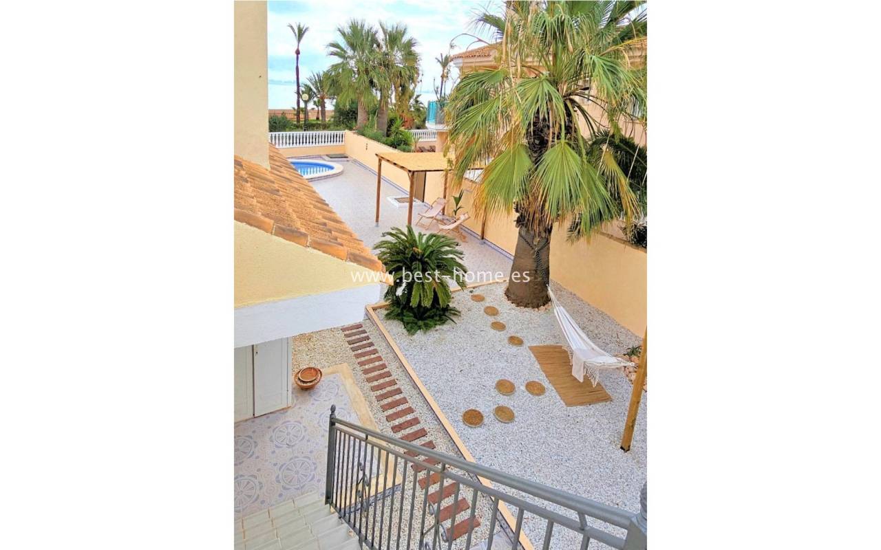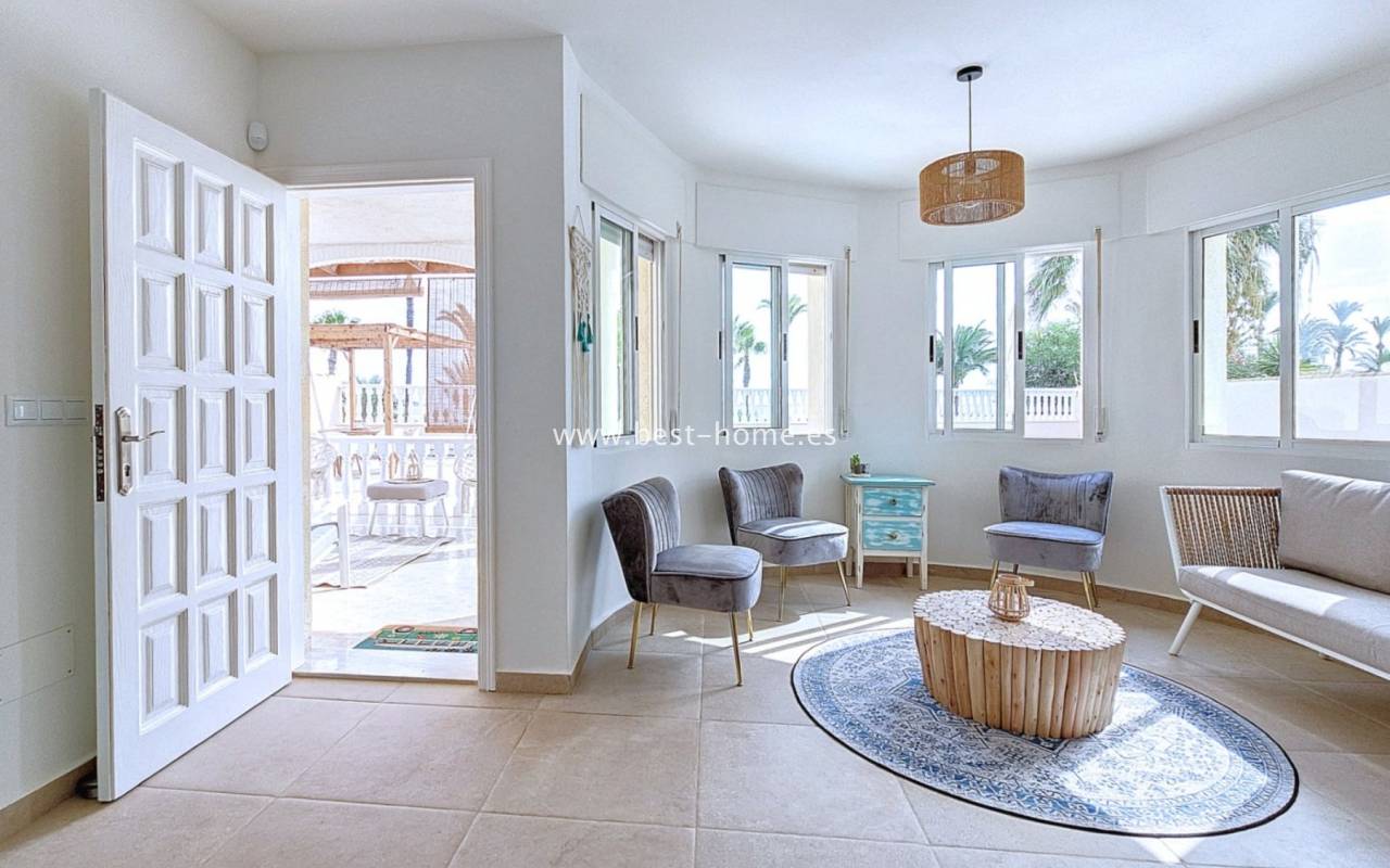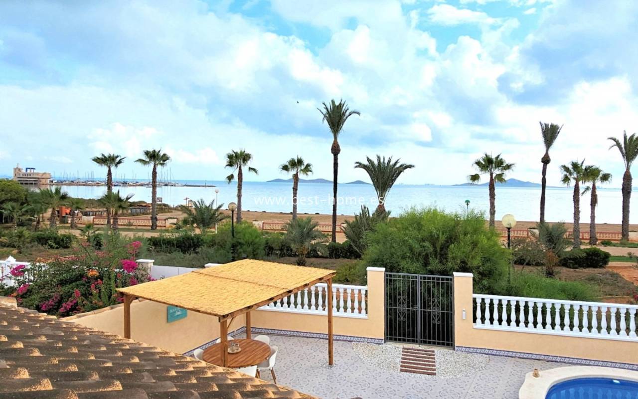 This extraordinary villa is located in the cosy neighbourhood of "Estrella de Mar", a quiet area among greenery right on the beach of the Mar Menor!