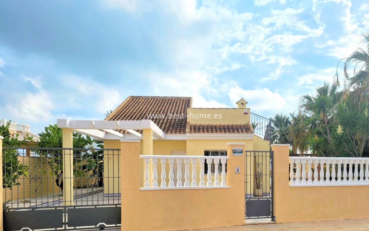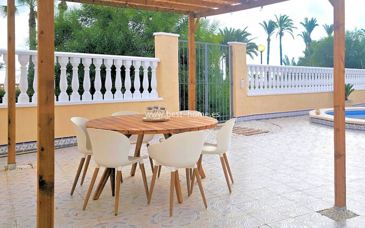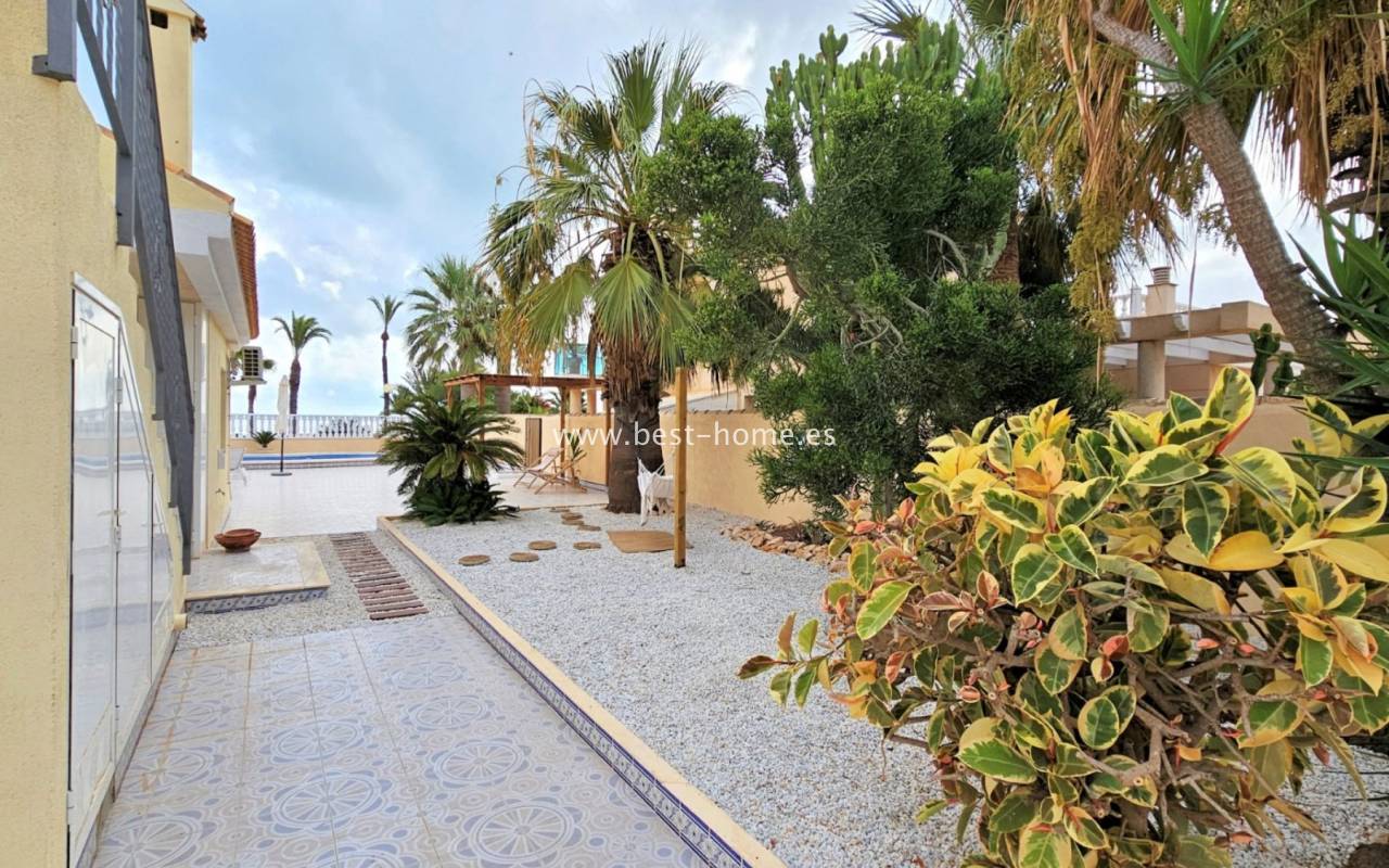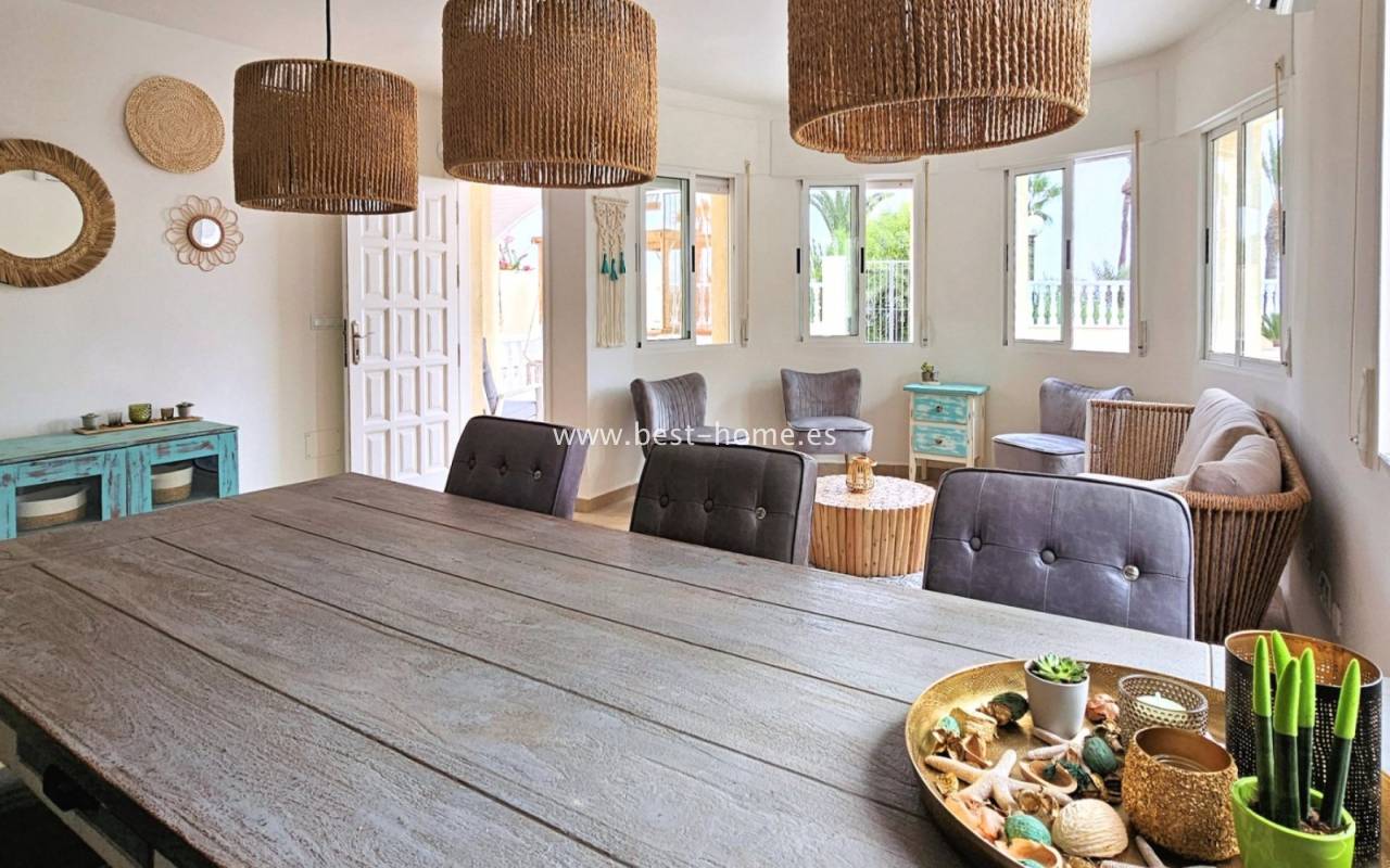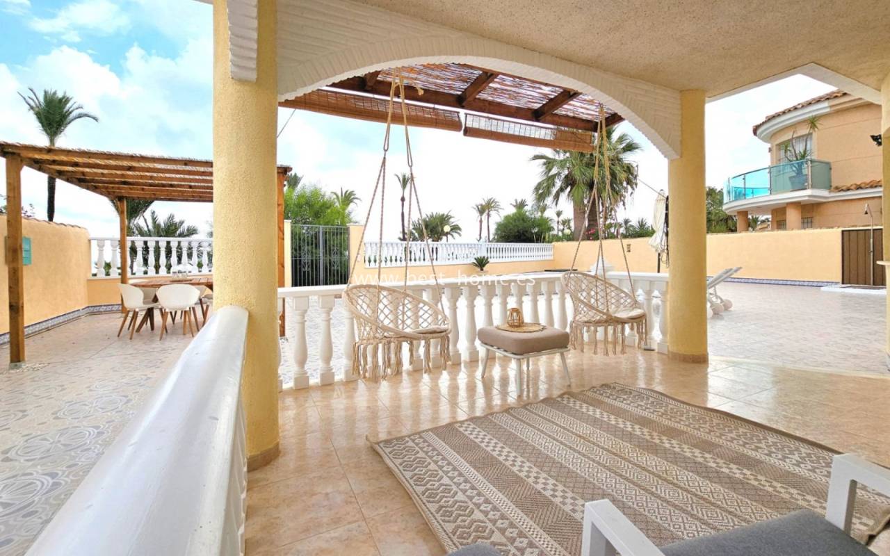 This extraordinary villa is located in the cosy neighbourhood of "Estrella de Mar", a quiet area among greenery right on the beach of the Mar Menor!