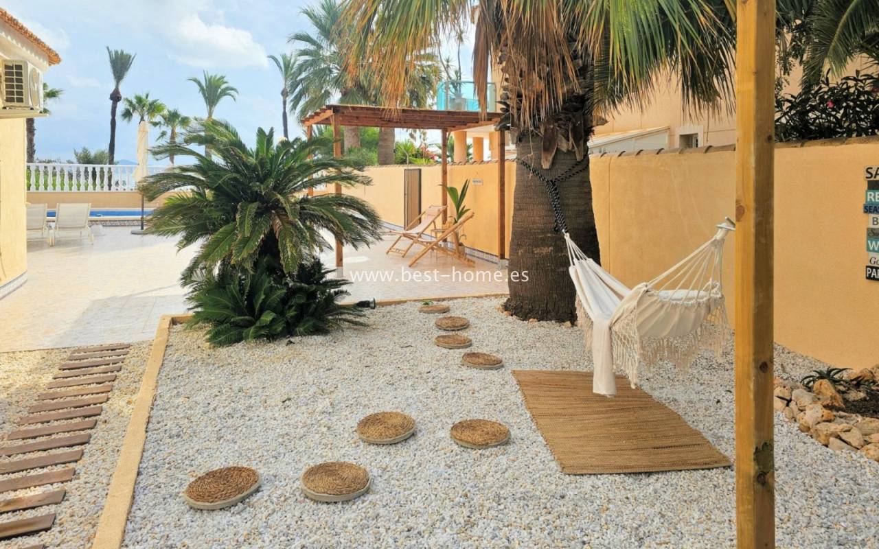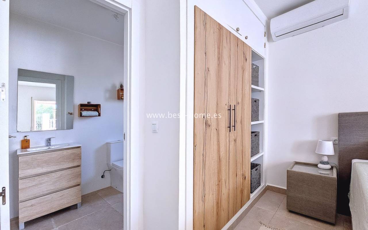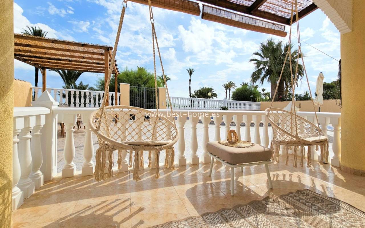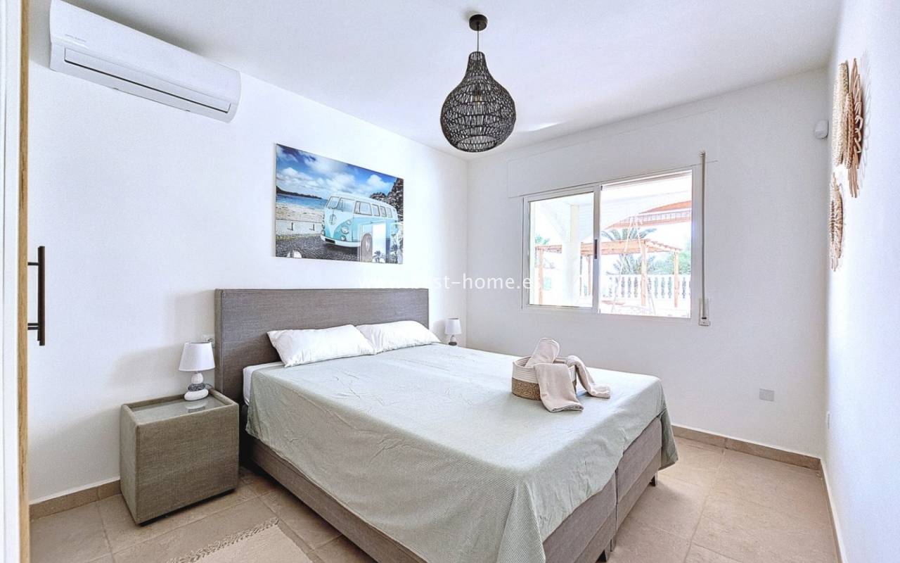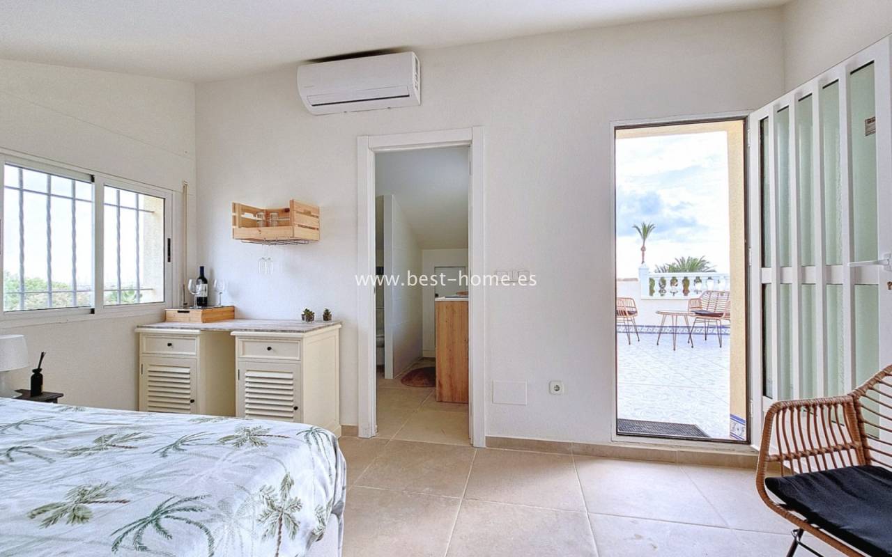This extraordinary villa is located in the cosy neighbourhood of "Estrella de Mar", a quiet area among greenery right on the beach of the Mar Menor!