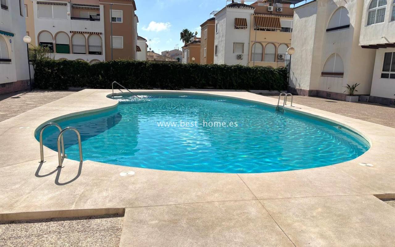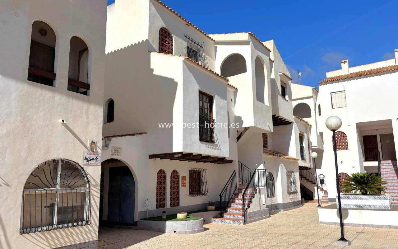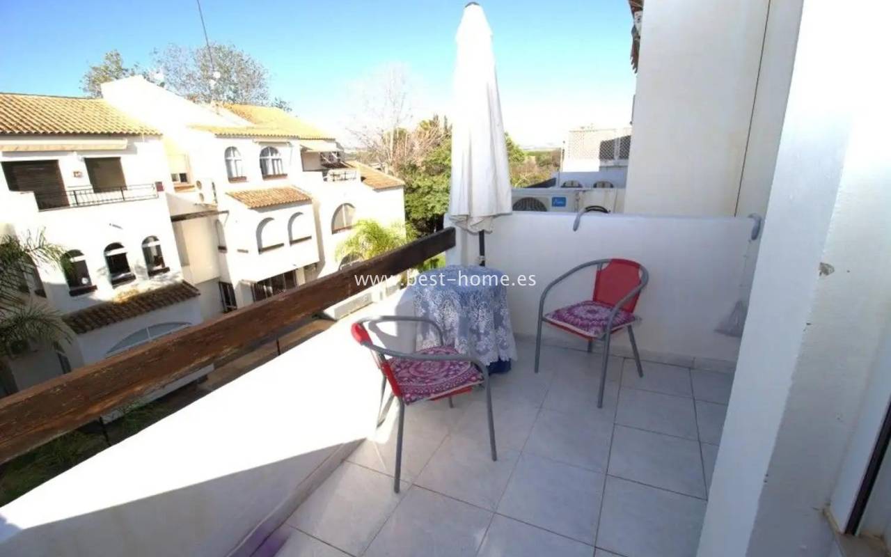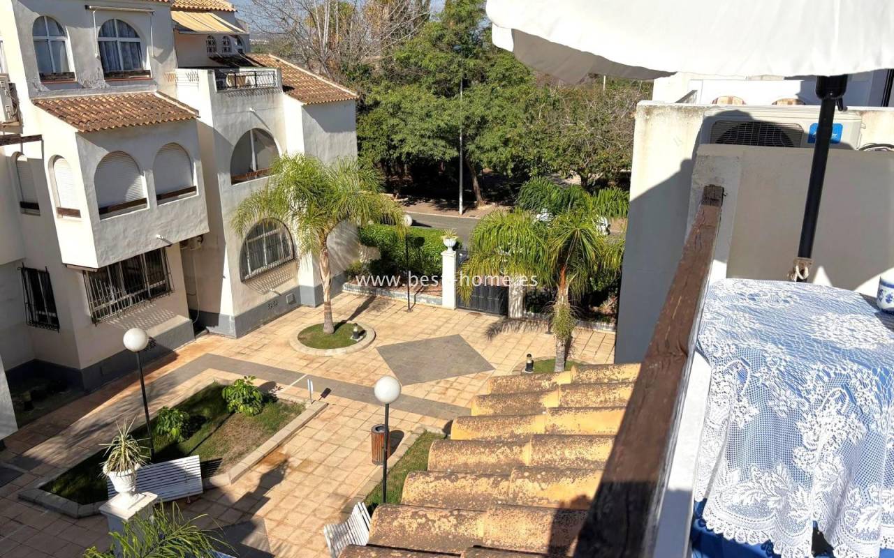 A sunny penthouse in a picturesque Mediterranean-style development with a community pool. It features a living room with access to a terrace overlooking the patio, palm trees, and park, an American-style kitchen equipped with appliances, one double bedroom, and a bathroom. The development also boasts a residents' swimming pool. Nearby, you'll find bars, restaurants, a Dialprix grocery store, a bakery, and a pharmacy.