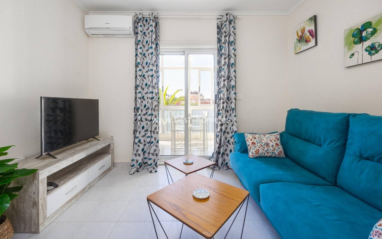 This apartment is located in a picturesque urbanization with a community pool. It features a living room with access to a covered sun terrace, an American-style kitchen equipped with appliances, one double bedroom with a built-in wardrobe, and a bathroom. The apartment is furnished and air-conditioned. Ideal for holiday or long-term rentals, the complex also features a swimming pool, a relaxation area, and a barbecue area. Nearby, you'll find a pharmacy, a Mercadona grocery store, a Rossmann drugstore, and numerous restaurants and cafes.