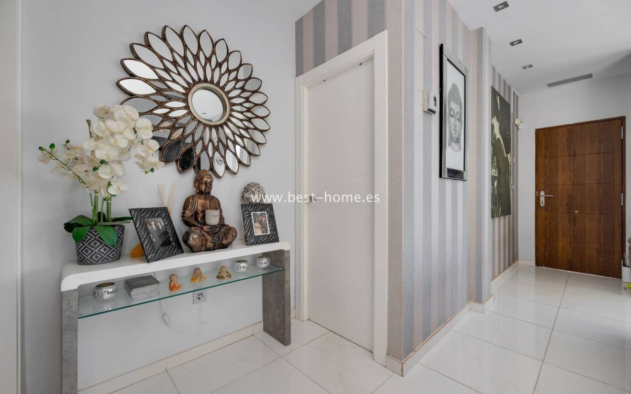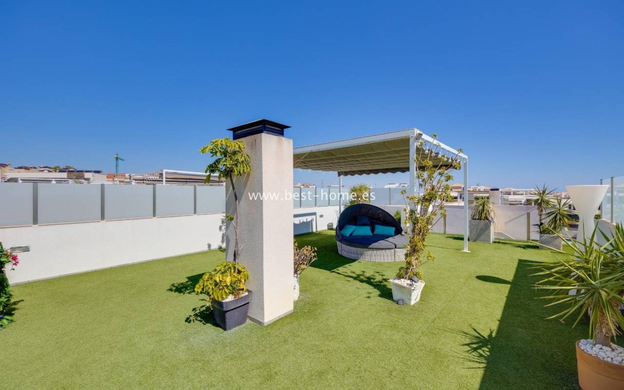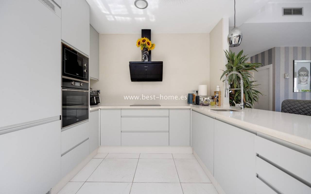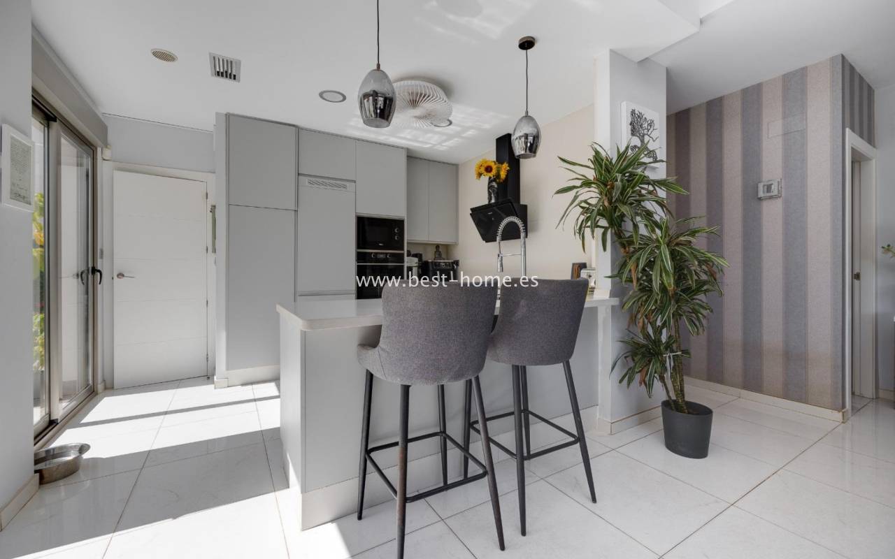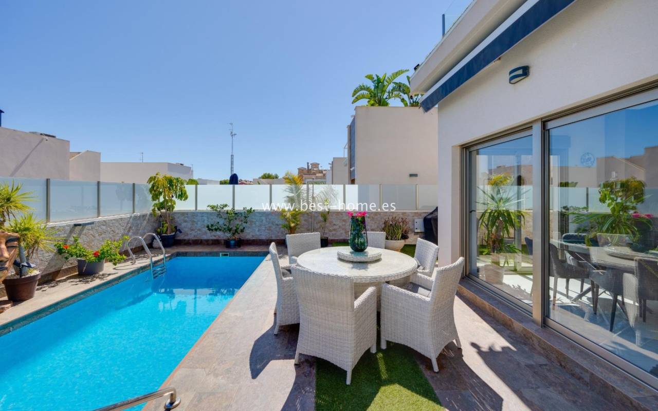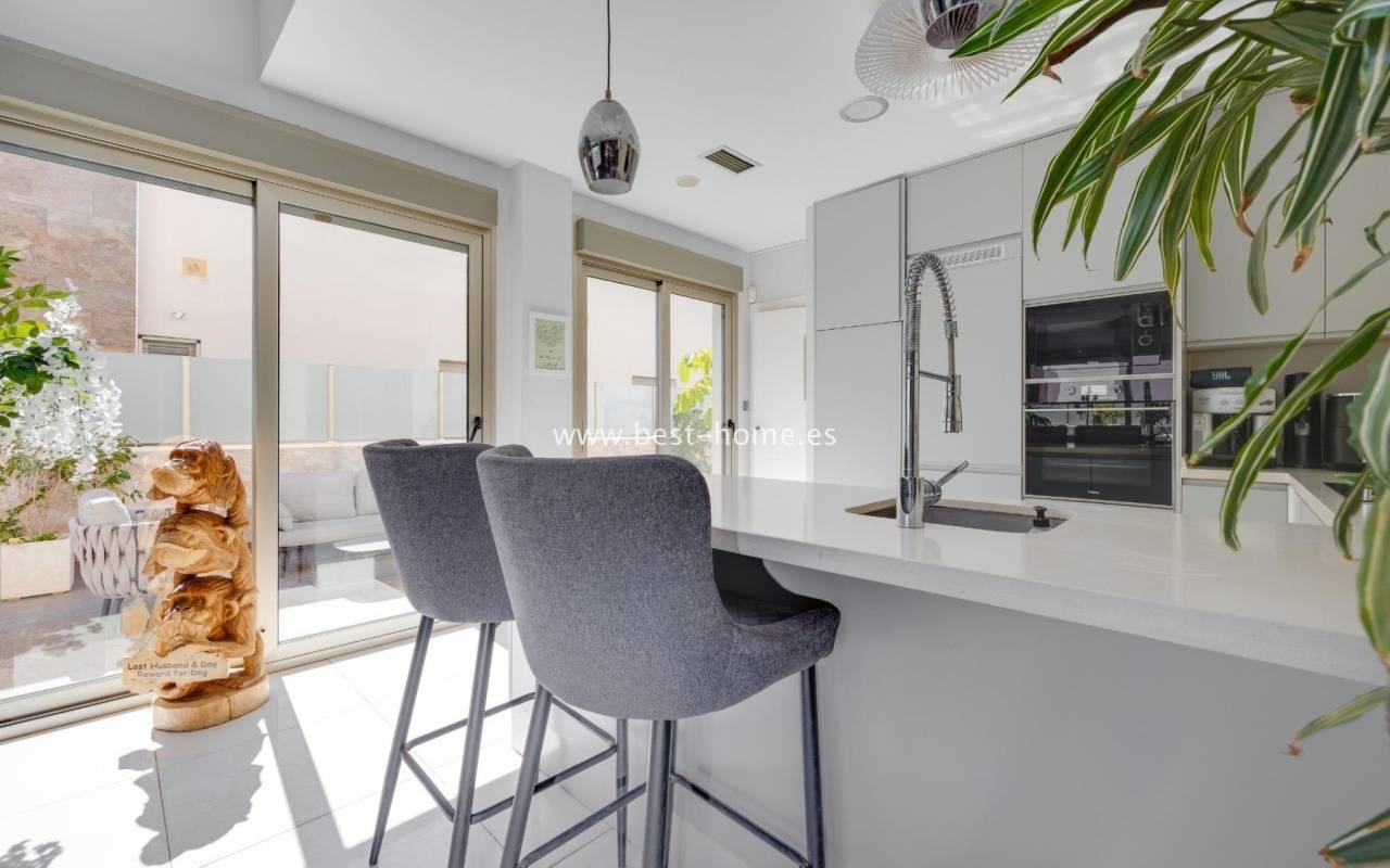 We present a unique single-level villa, built in 2017, meticulously maintained and in excellent condition. The property is situated on a 328 m² plot, with a built area of 124 m², featuring four spacious bedrooms and three modern bathrooms. The interior is filled with natural light, as the entire home faces outward. The villa includes a private swimming pool, electric awnings for comfort on sunny days, on-site parking, beautiful gardens, and a large solarium of approximately 100 m², perfect for entertaining friends and relaxing under the Spanish sun. The property is sold fully furnished and equipped. It is located in the Villamartin Hills area, close to various amenities – Zenia Boulevard is just a five-minute drive away, and Orihuela Costa beaches are around ten minutes by car.