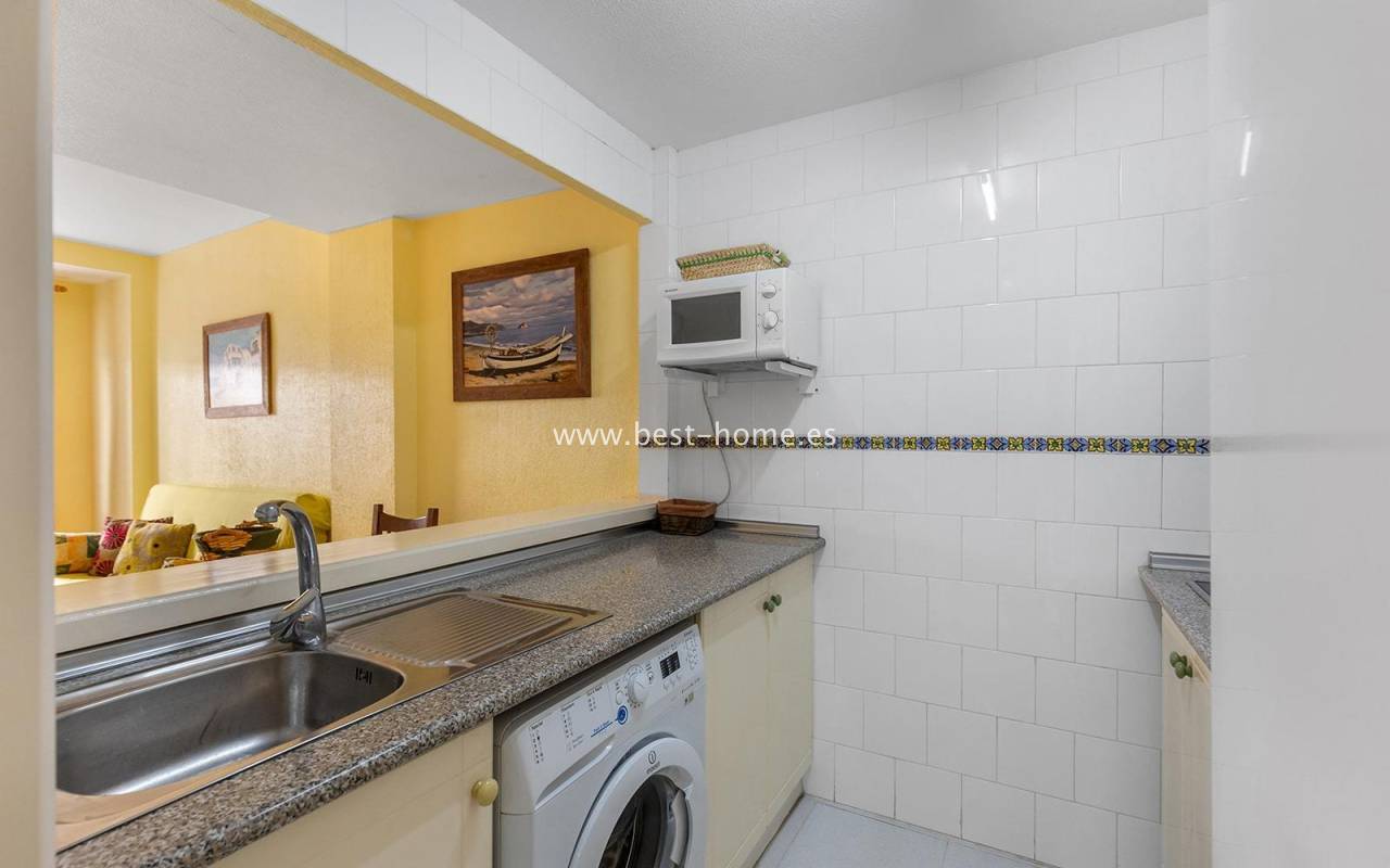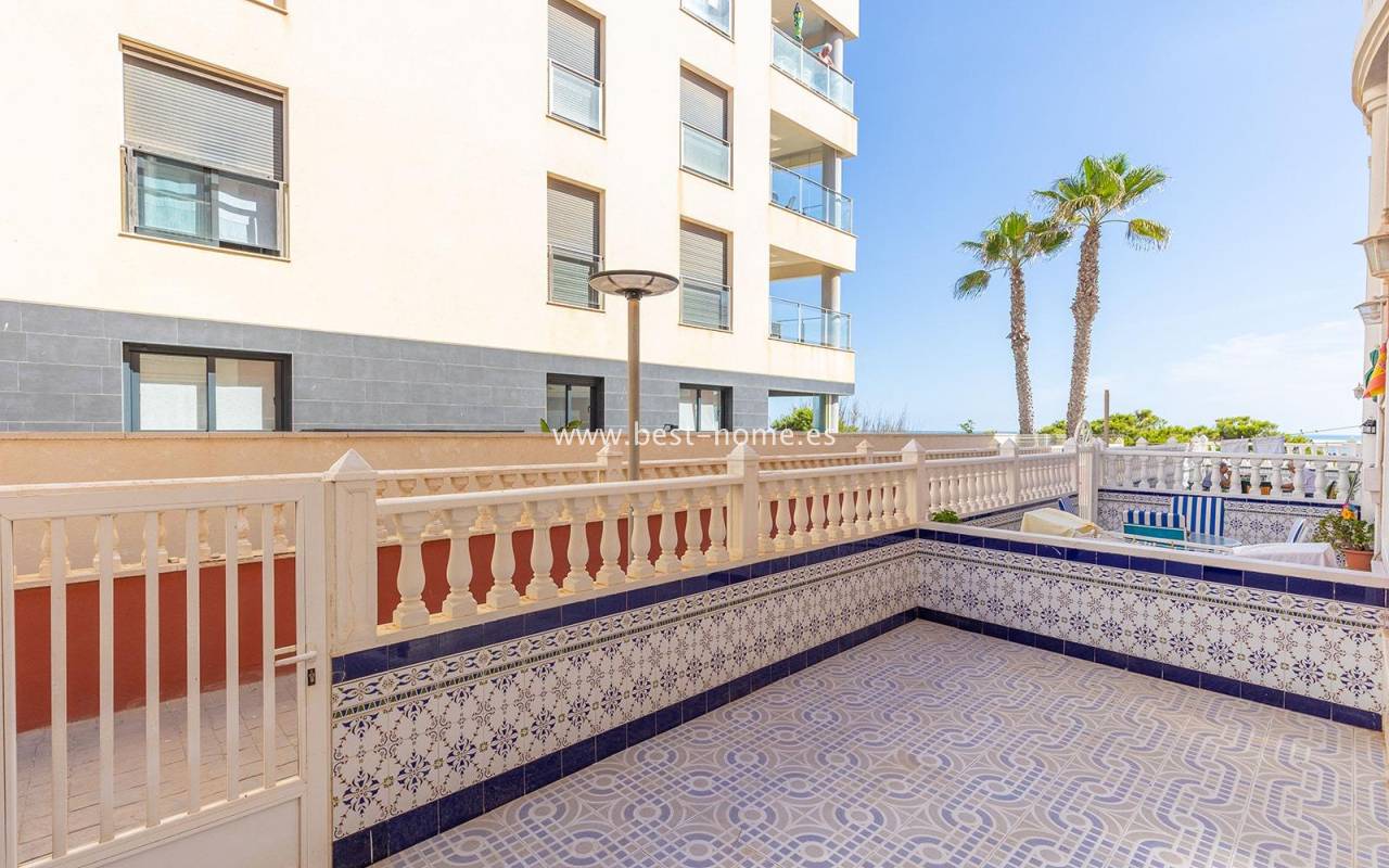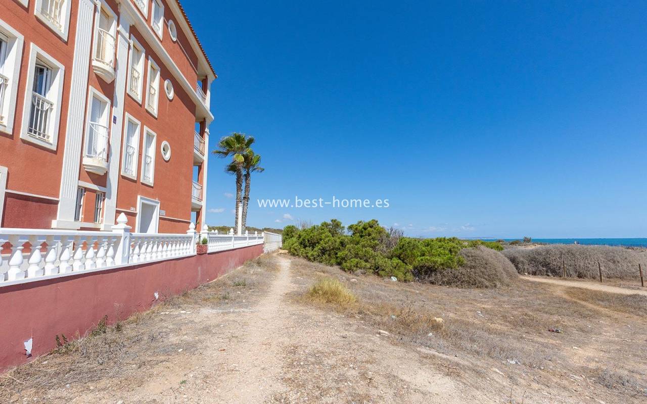The apartment is located on the first line of the coast, directly overlooking the dunes and La Mata beach. The ground-floor property features a front entrance terrace (approx. 15 m²), a living room with a dining area, a furnished kitchen, a bathroom with a shower, a bedroom with a built-in wardrobe, and an additional bedroom with access to the patio. The price includes furniture, appliances, and a parking space. This is a great location for a vacation or holiday rental.