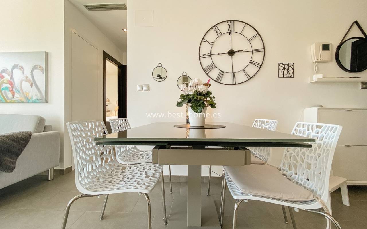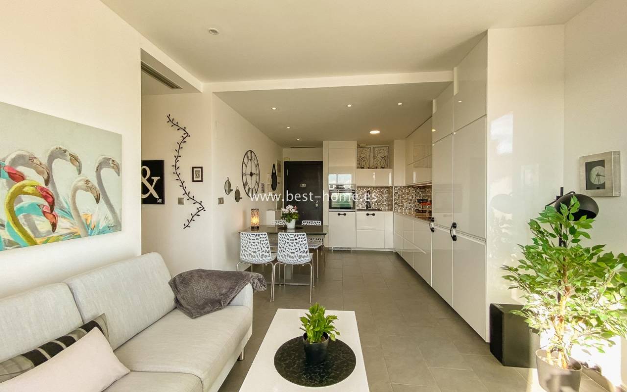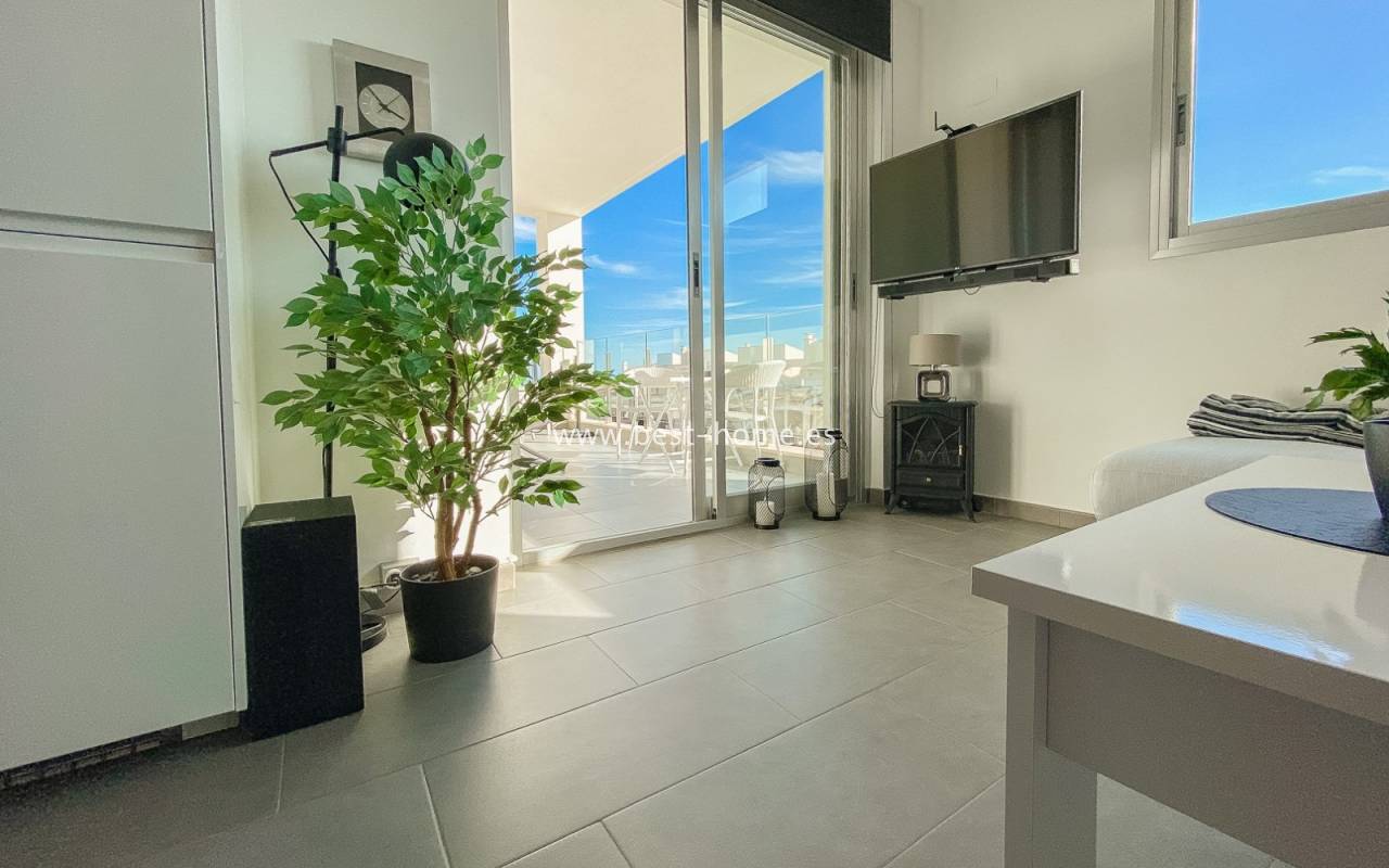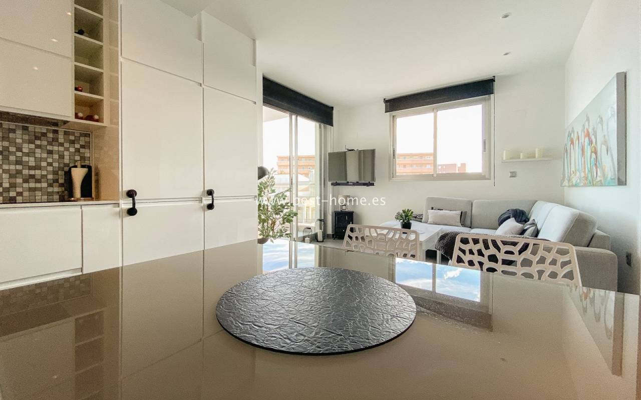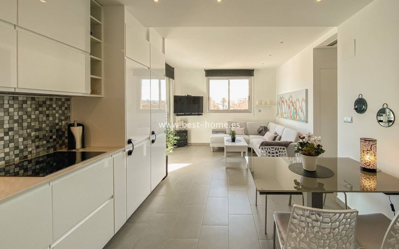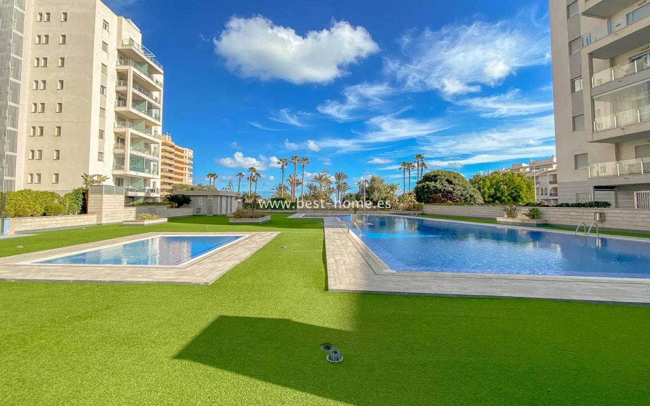 This fantastic apartment is situated in a prime location on La Mata Beach. The property is on the third floor and comprises two bedrooms with fitted wardrobes, two bathrooms, and a furnished kitchen with a dining area and living room. The living room opens onto a sunny terrace with stunning views of the sea, park, and surrounding area. Appliances, central air conditioning, and a parking space are included in the price. The development boasts a stunning swimming pool. A wide selection of restaurants, bars, and cafes are also nearby.