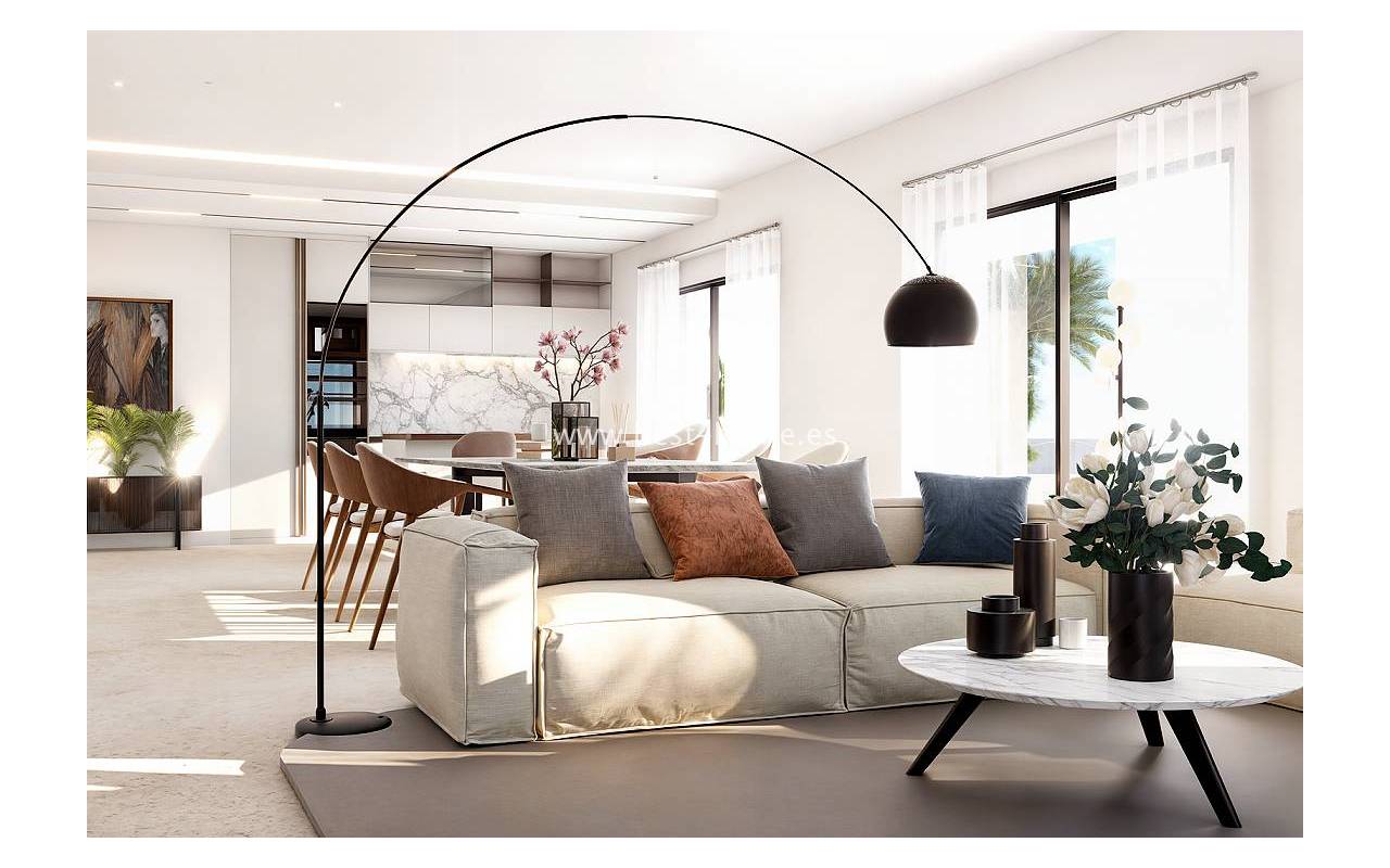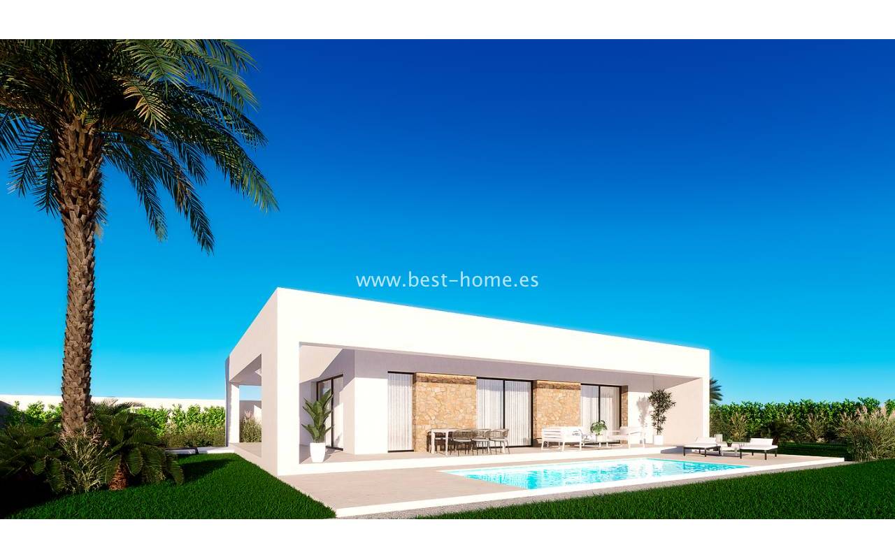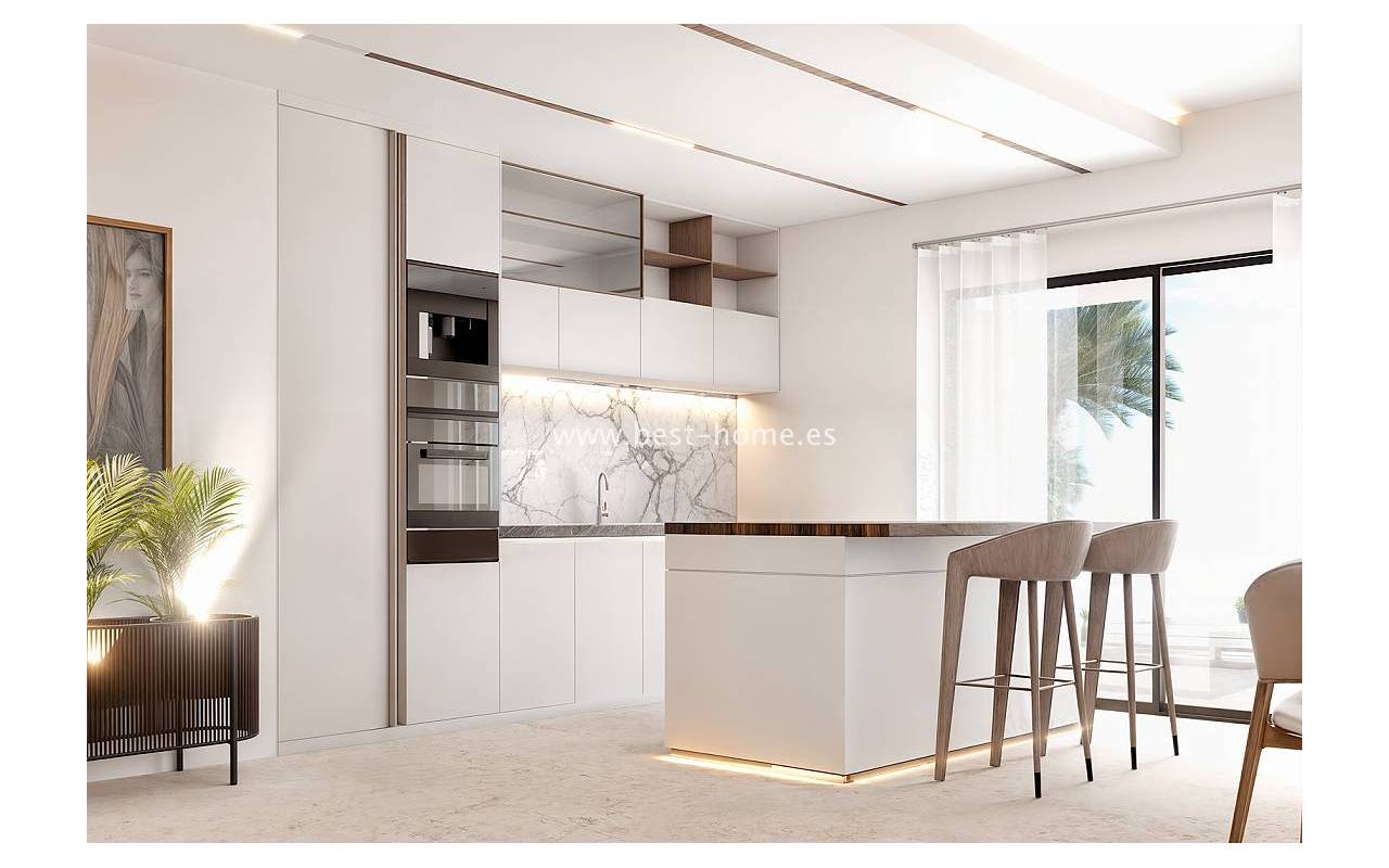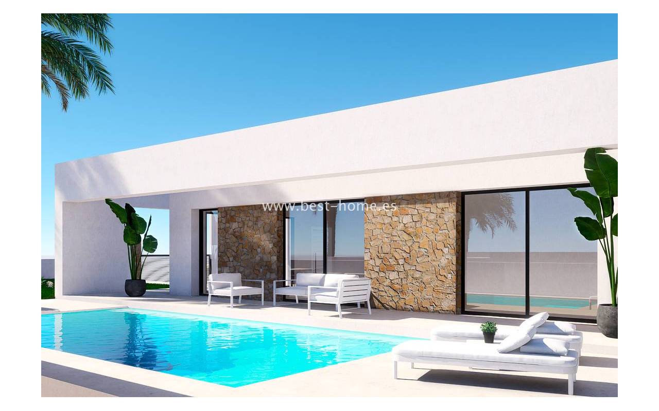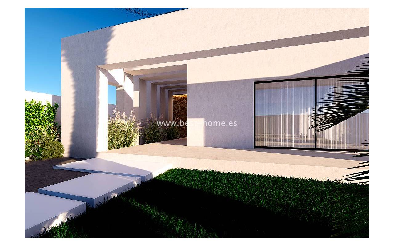 A new single-story villa is being built on the outskirts of Finestrat. The 144 m² house will consist of a spacious and bright living room with a dining area, a fitted kitchen with an island, a master bedroom with an en-suite bathroom, two further bedrooms with fitted wardrobes, a bathroom, and a toilet. The living room will have access to a terrace, garden, and a private swimming pool (36 m²). The developer is offering the option of a basement (108 m² - stairs from the living room) where a fourth bedroom, a bathroom, and an additional living room could be created. The price includes a fitted kitchen, pre-installation of central air conditioning, finished bathrooms, a private swimming pool, and electric blinds in the bedrooms. The terrace and garden will offer views of the sea and the towers of Benidorm.